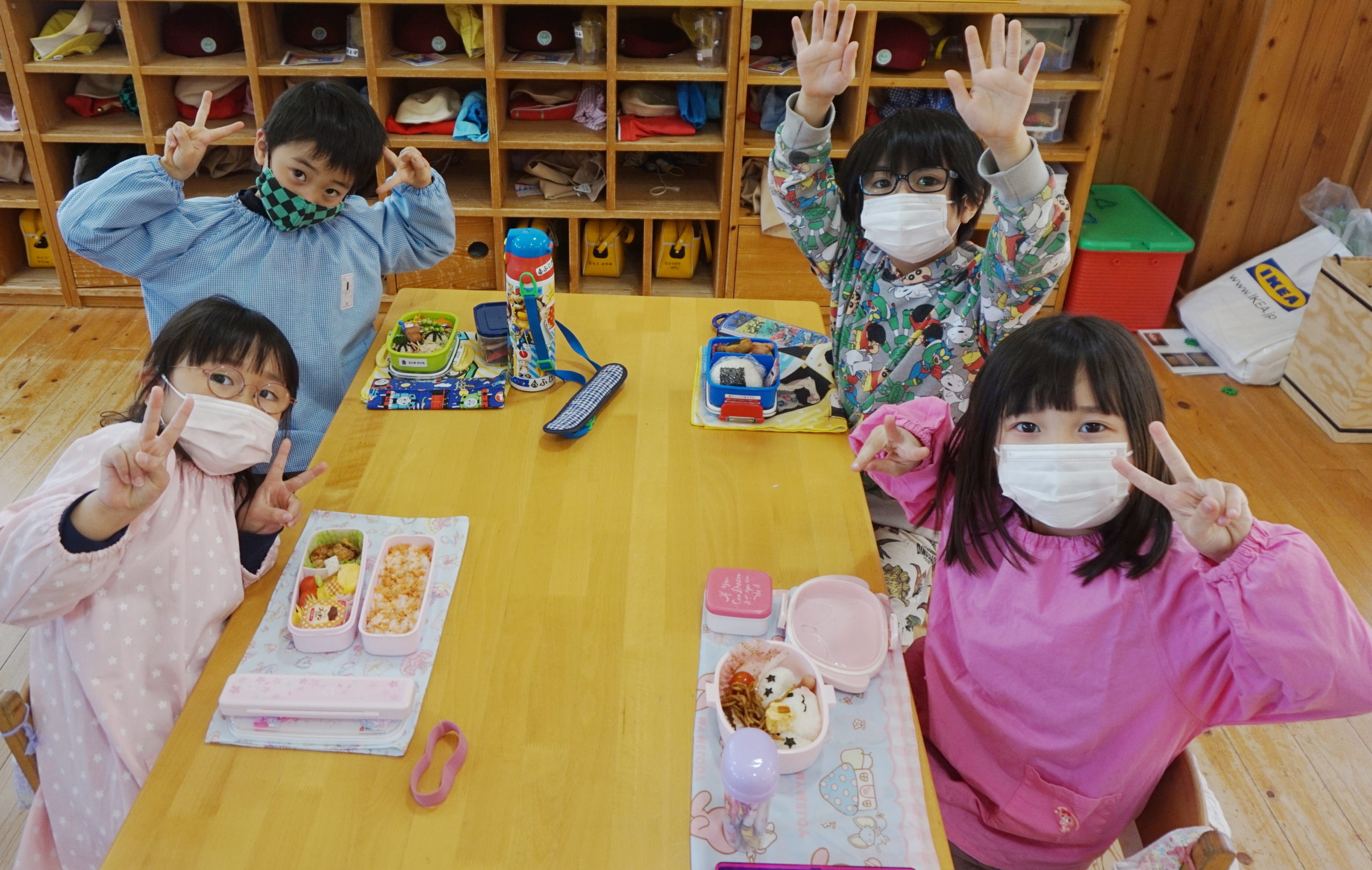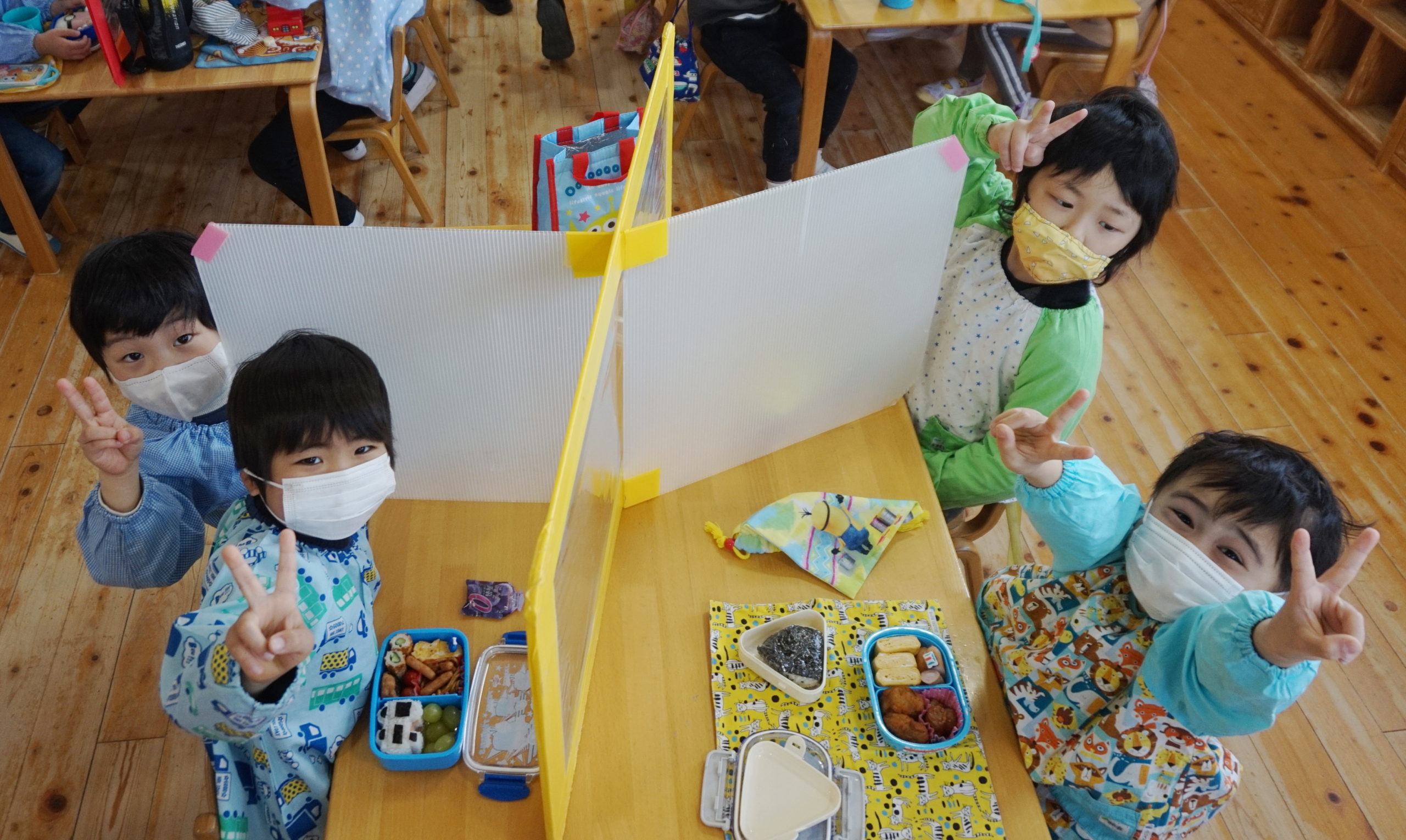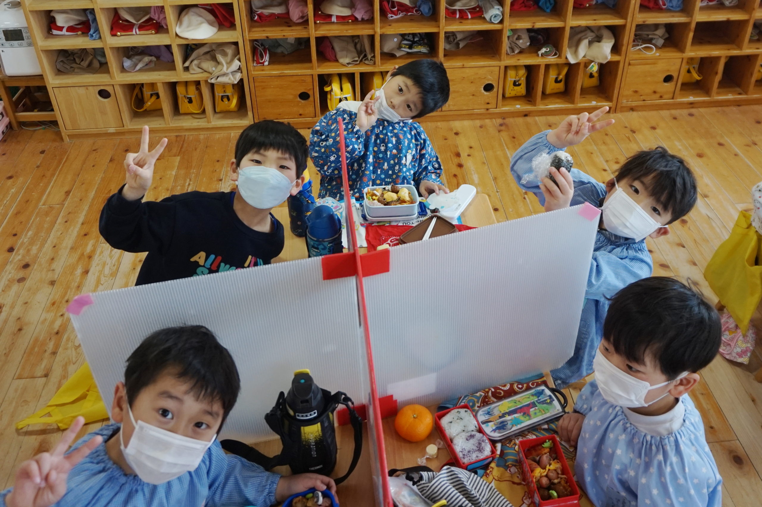 お楽しみのお弁当は幼稚園へ帰ってからパーテーションをしていただきます。