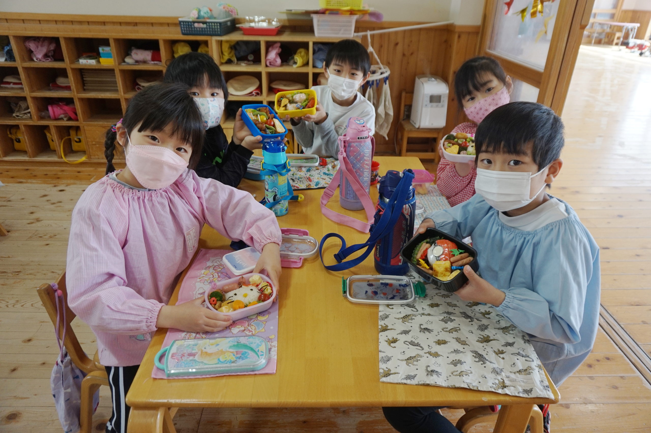 先日の年長さんの「お別れ遠足」には、目的地に向かうバスの中で「はやくたべたいなぁ!」「なんだかおなかすいちゃった!」・・・・・お弁当が楽しみすぎて待ちきれない様子でした。