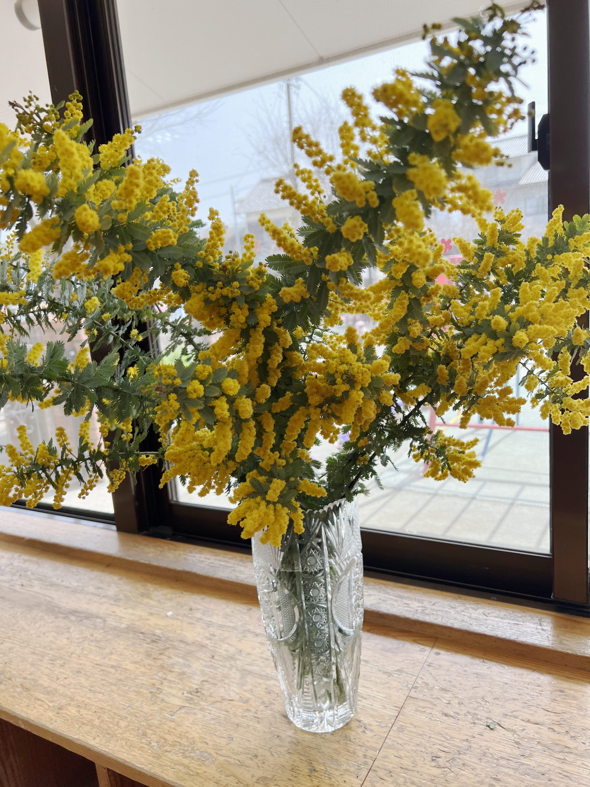 黄金色のお花をたわわにつけたミモザをいただきました。