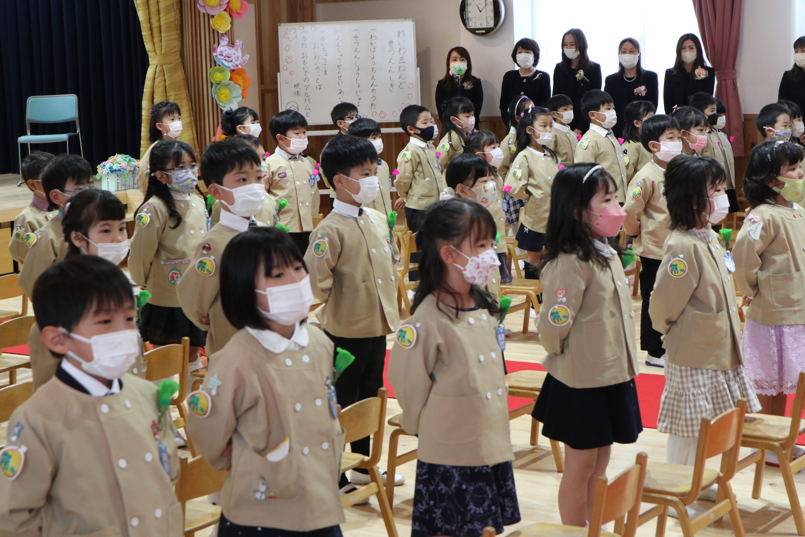 お辞儀もきちんとできたね。堂々とした立派な姿に先生たちも、みんな本当に心も身体も大きく成長し胸がいっぱいになりました。ご家族の方もそれはそれは嬉しかったと思います。