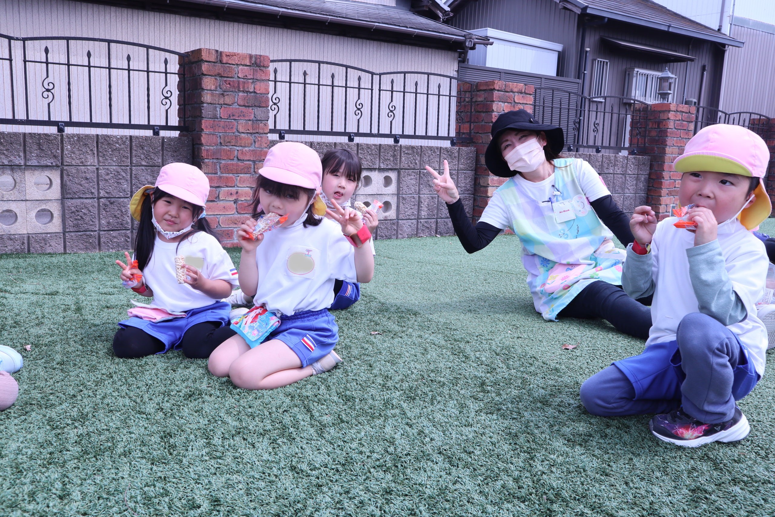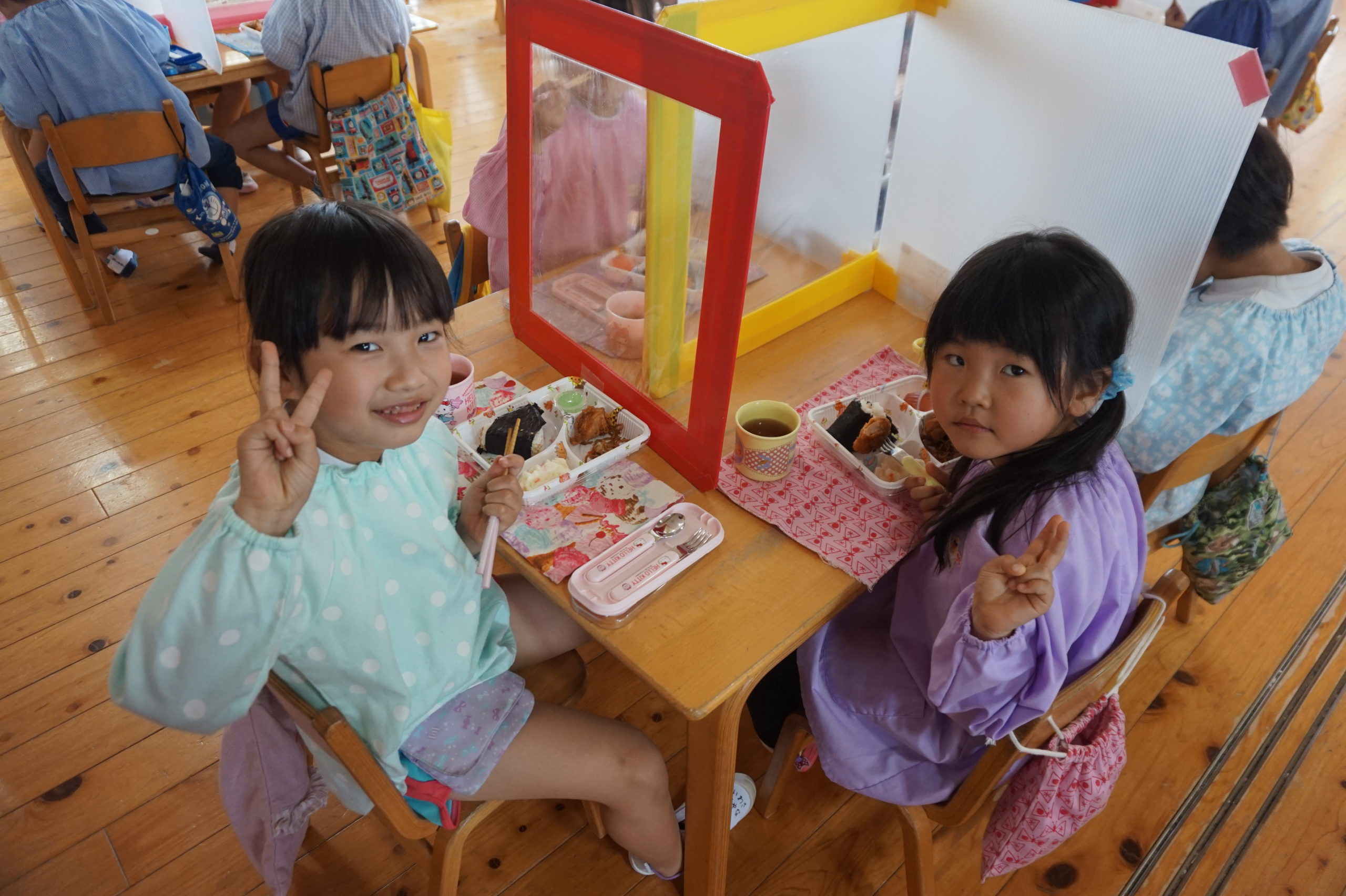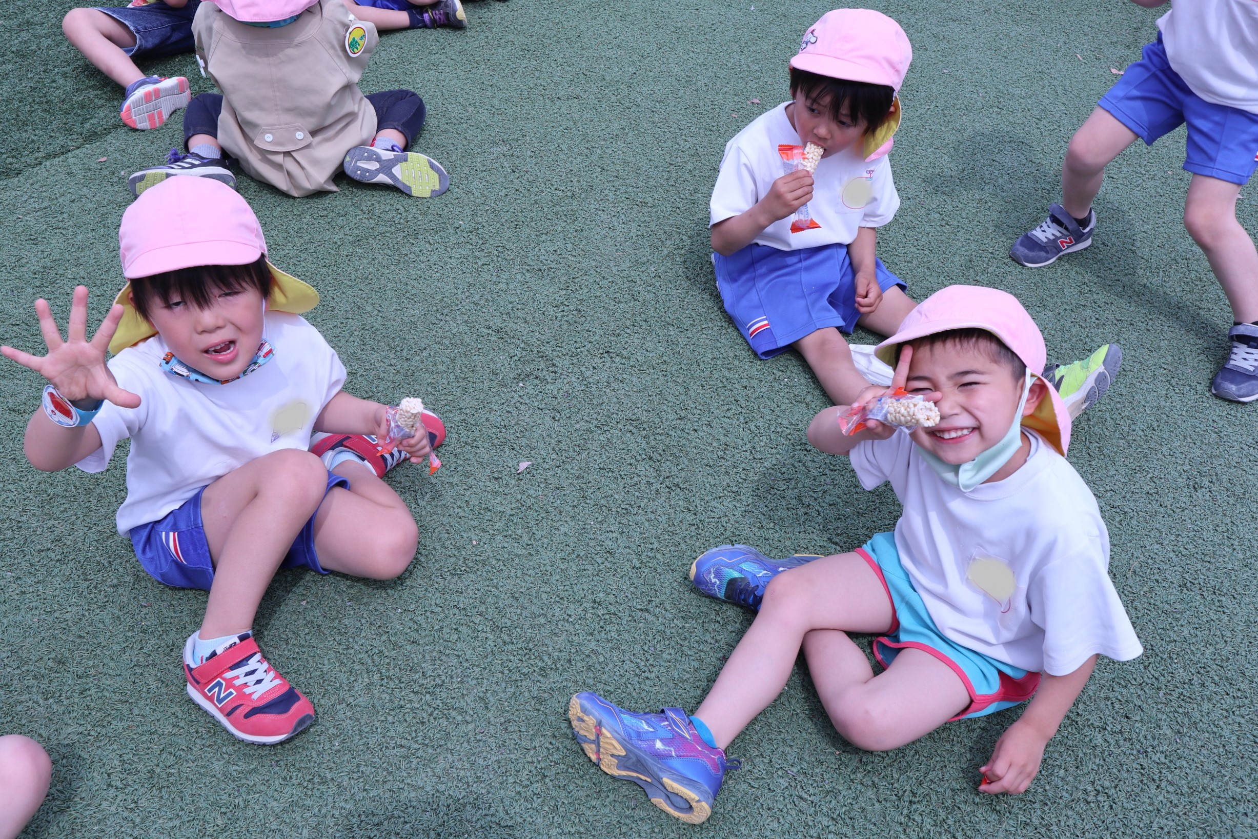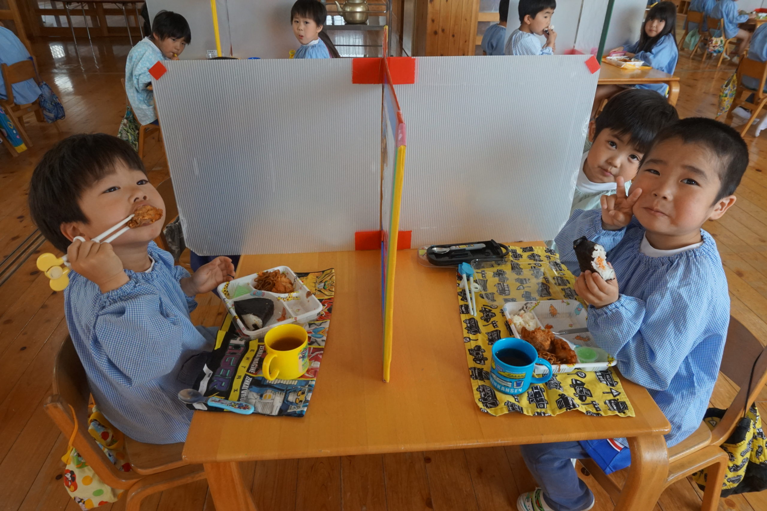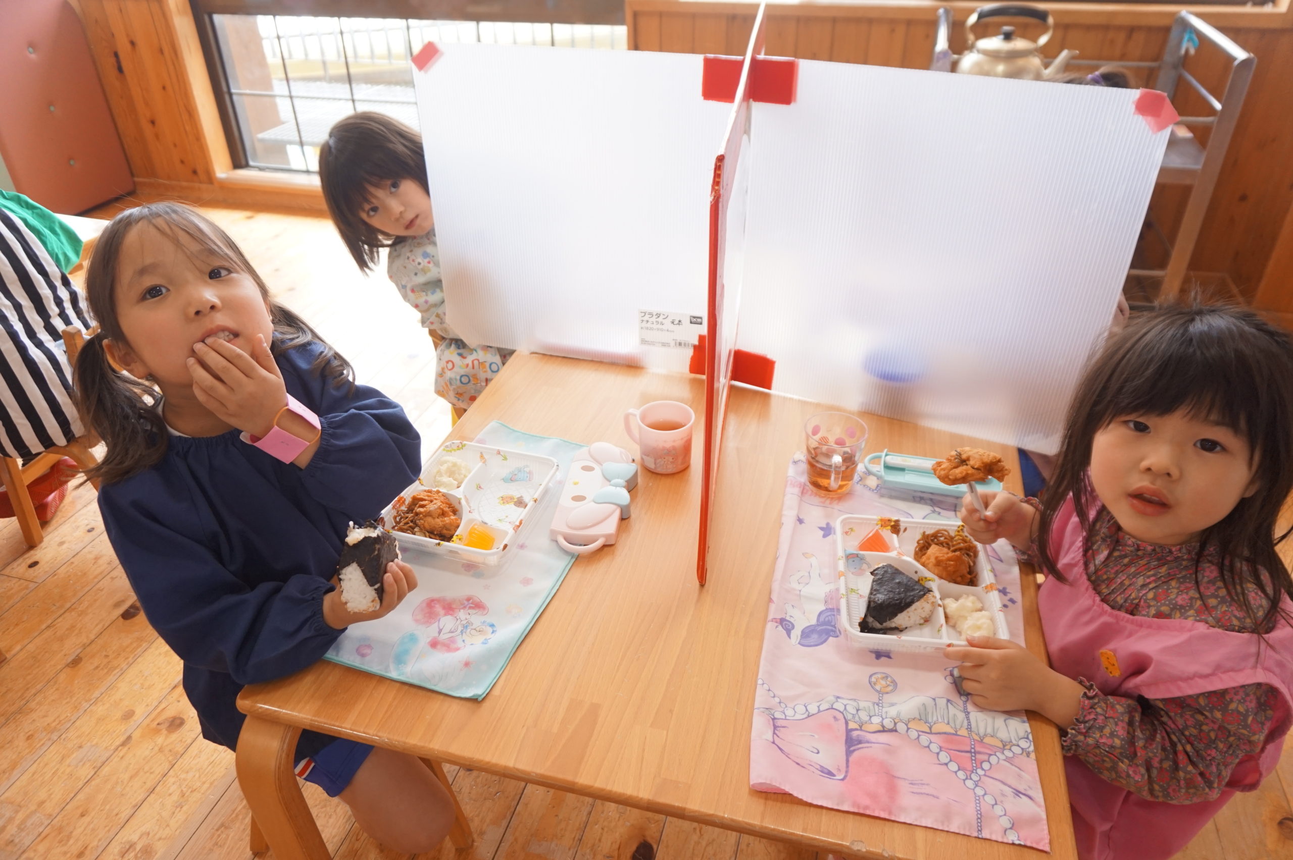 うれしいおともだちと、いいなと羨望の眼差しのおともだち、ちょっぴりくやしいおともだち。いろいろなドラマがあった年長さんのこいのぼりフェスティバルでした。たくさん頑張った後は、おにぎりランチボックスのお楽しみ。おにぎりやからあげを頬張るかわいいお顔がいっぱいだね。たくさん召し上がれ!
