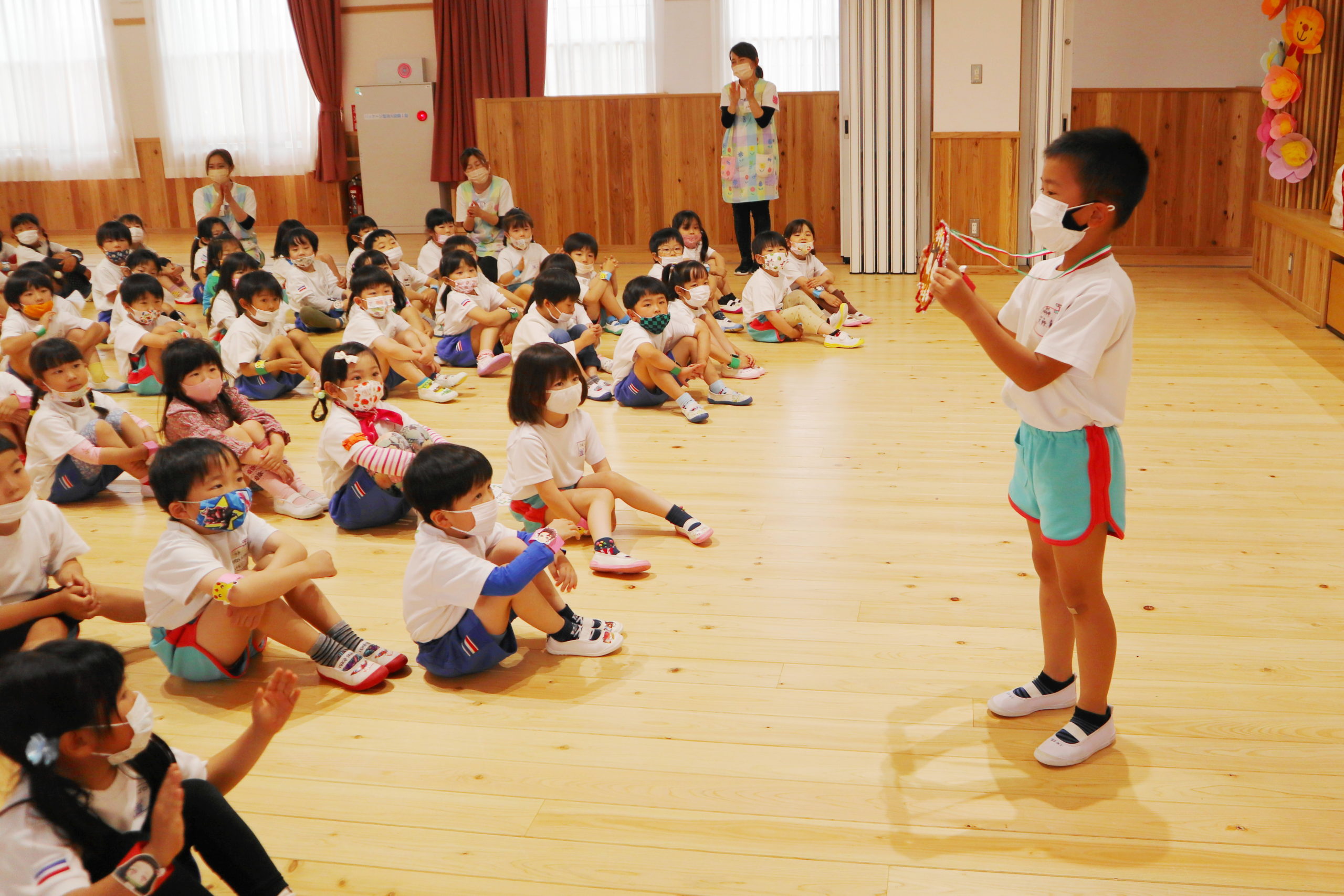 年長さんになってまだ1ヶ月ですが、新しいクラスの友達や先生と元気いっぱい取り組む姿、最後まで一生懸命頑張る姿がたくさん見られてとてもうれしかったです。みんなが目をきらきら輝かせて楽しむ姿が印象的でした。