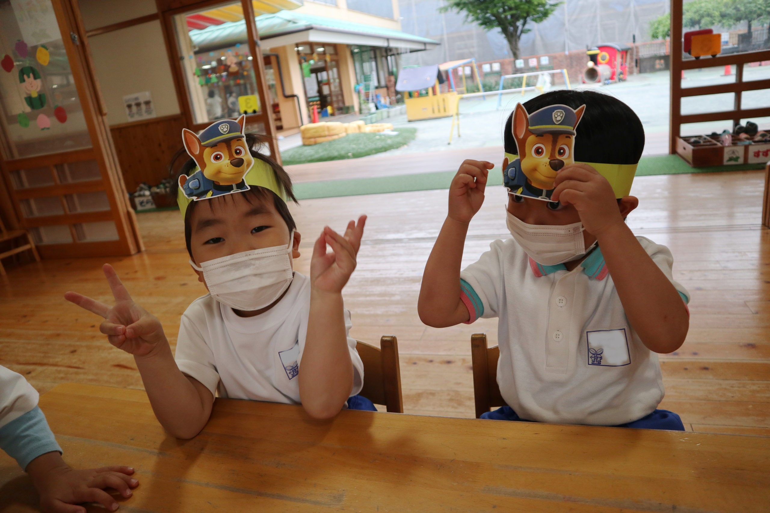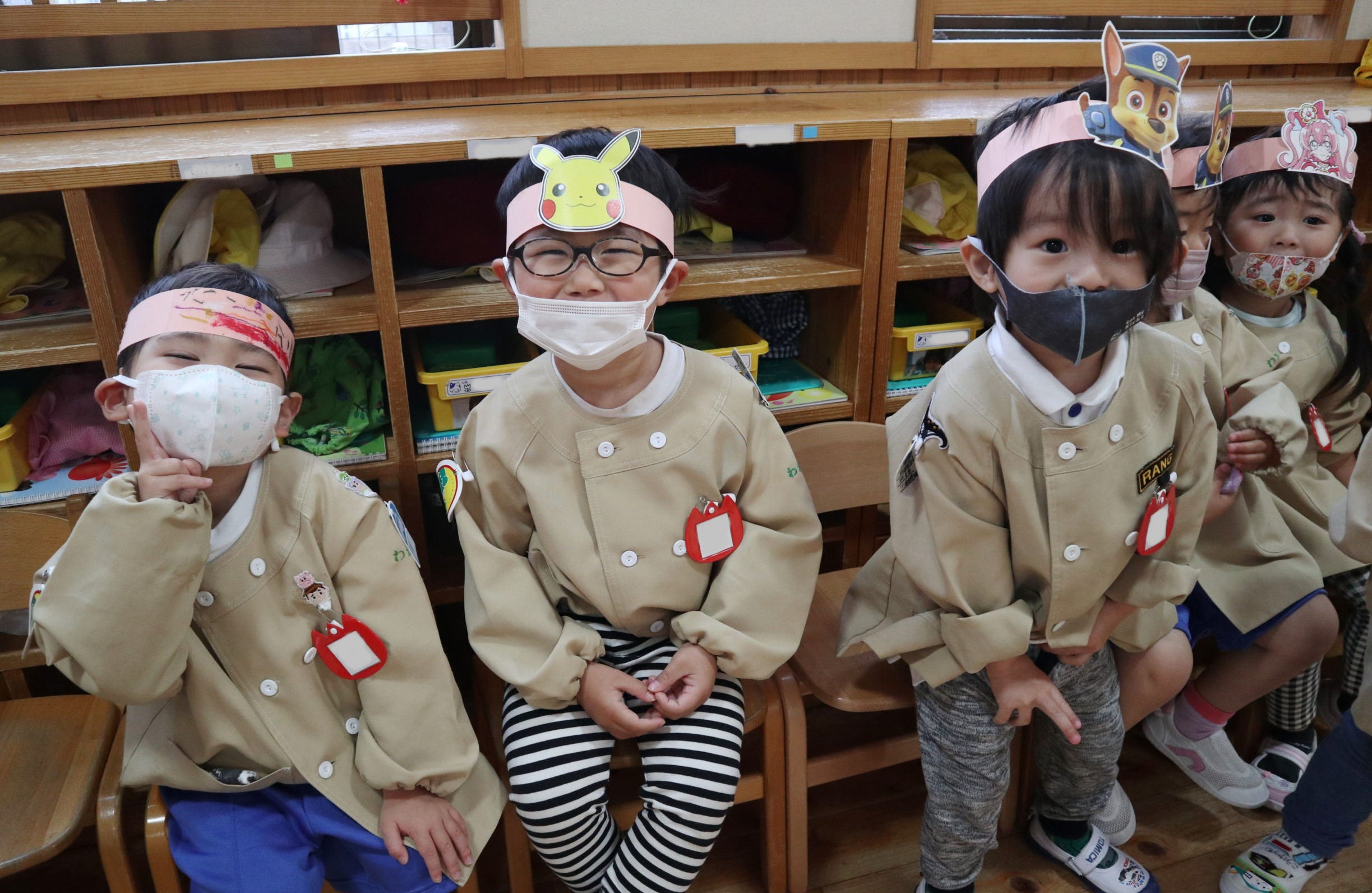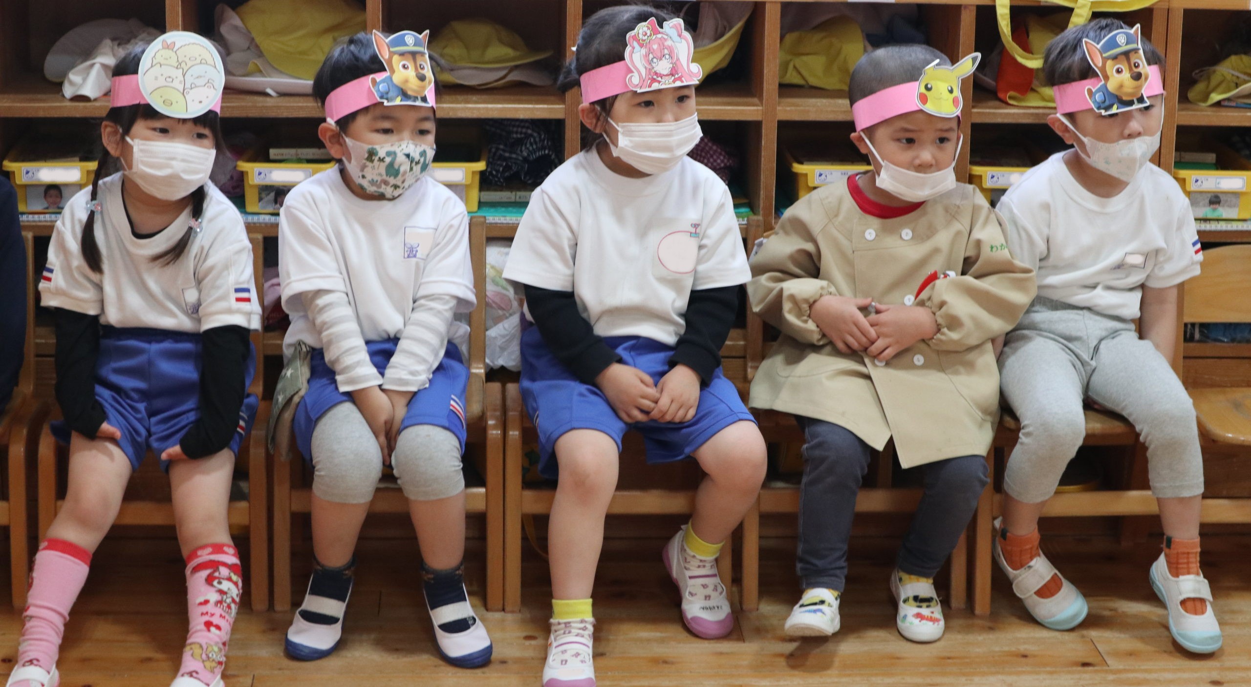 5月9日(月)年少組のおともだちがまほうのちからのお面をつけて登園しました。お休み明けで元気に来てくれるかなと先生たち待っていたよ。