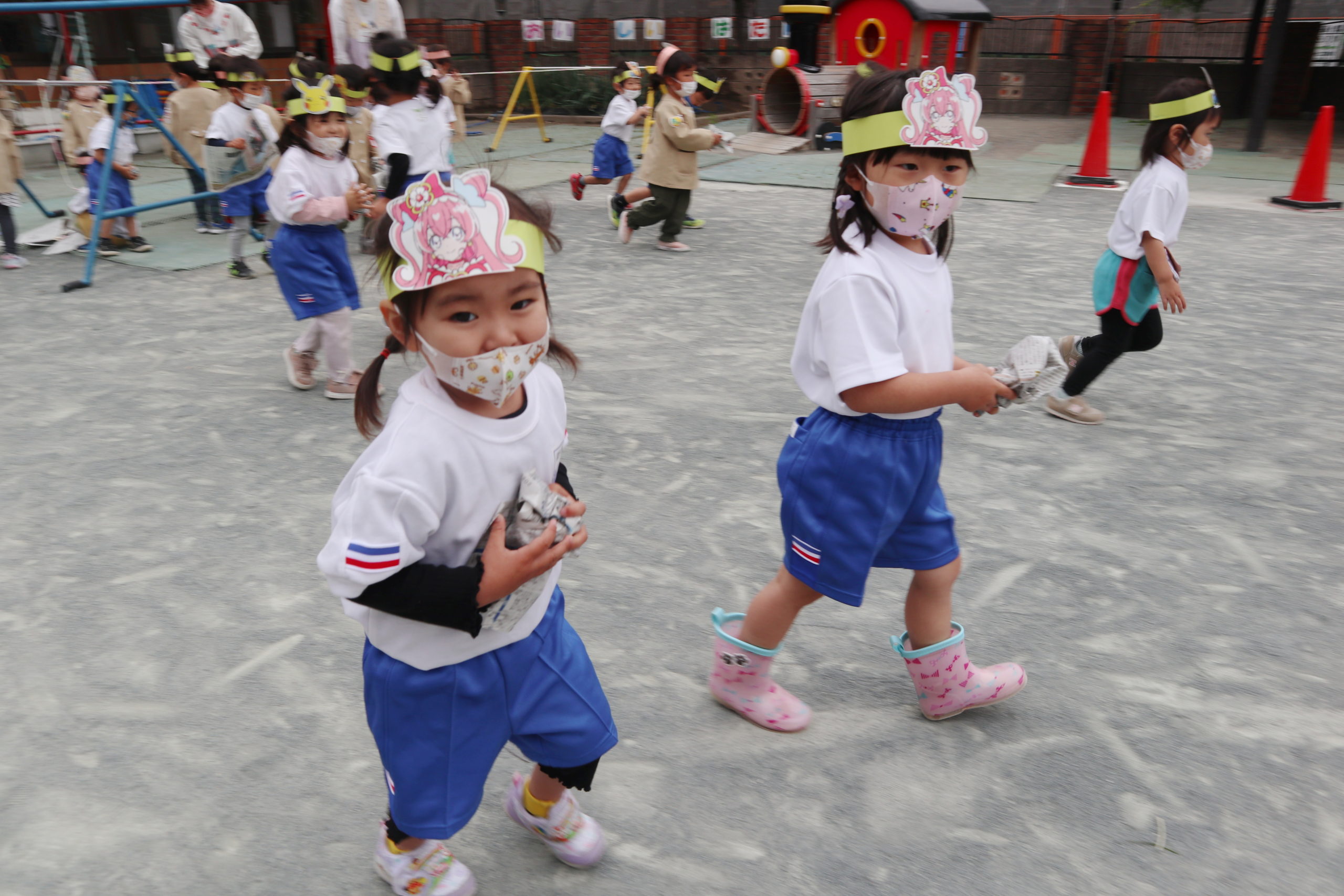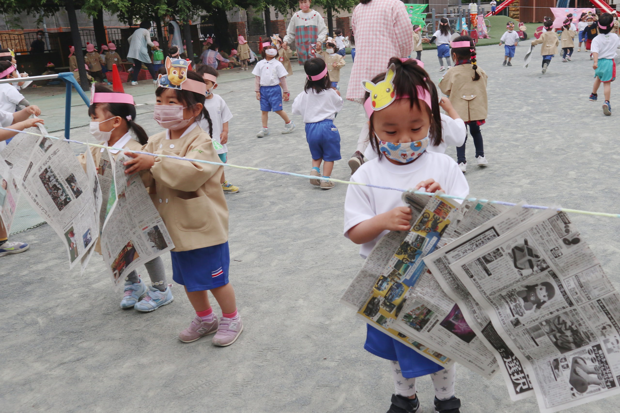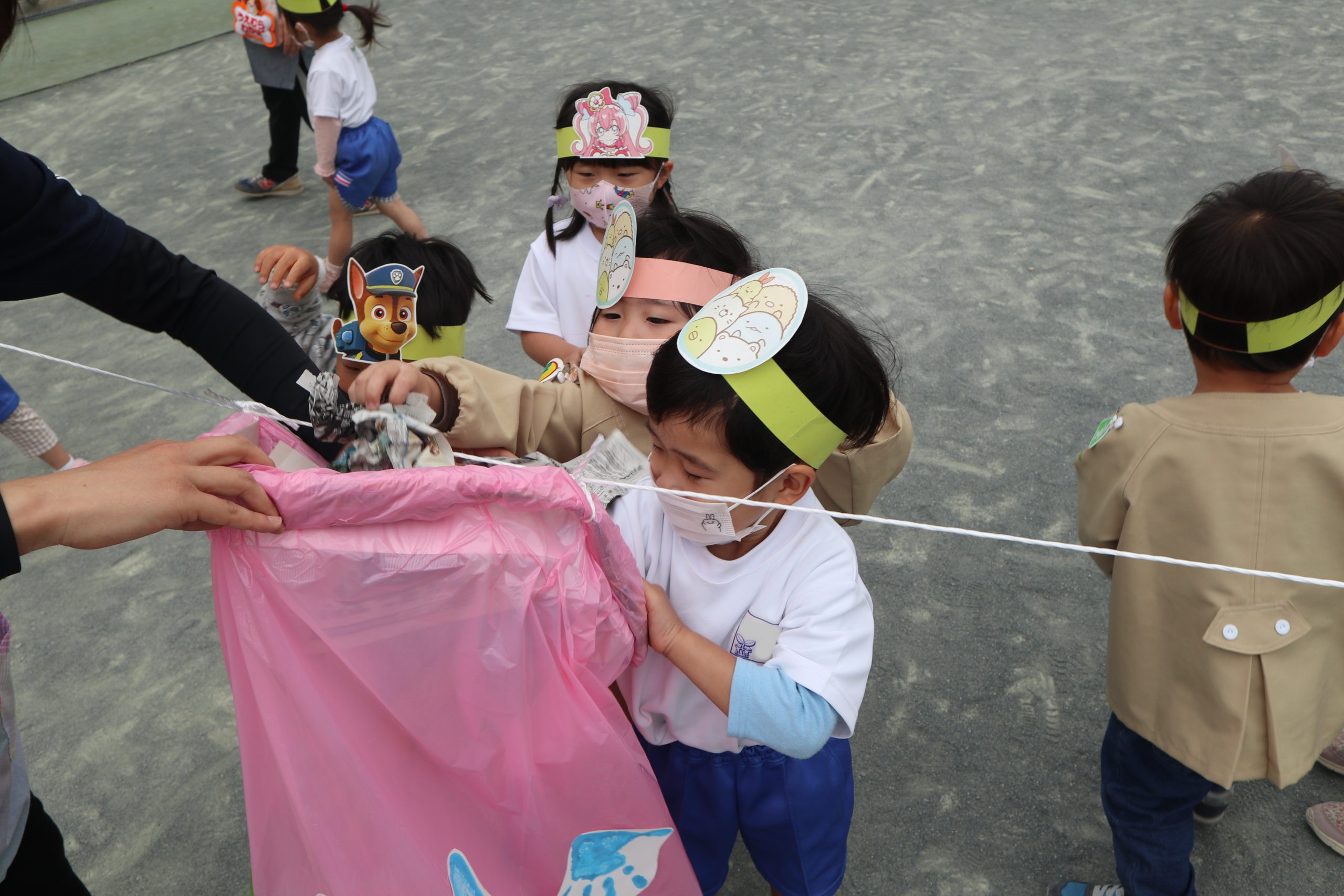 5月9日(月)年少組のおともだちがまほうのちからのお面をつけて登園しました。お休み明けで元気に来てくれるかなと先生たち待っていたよ。