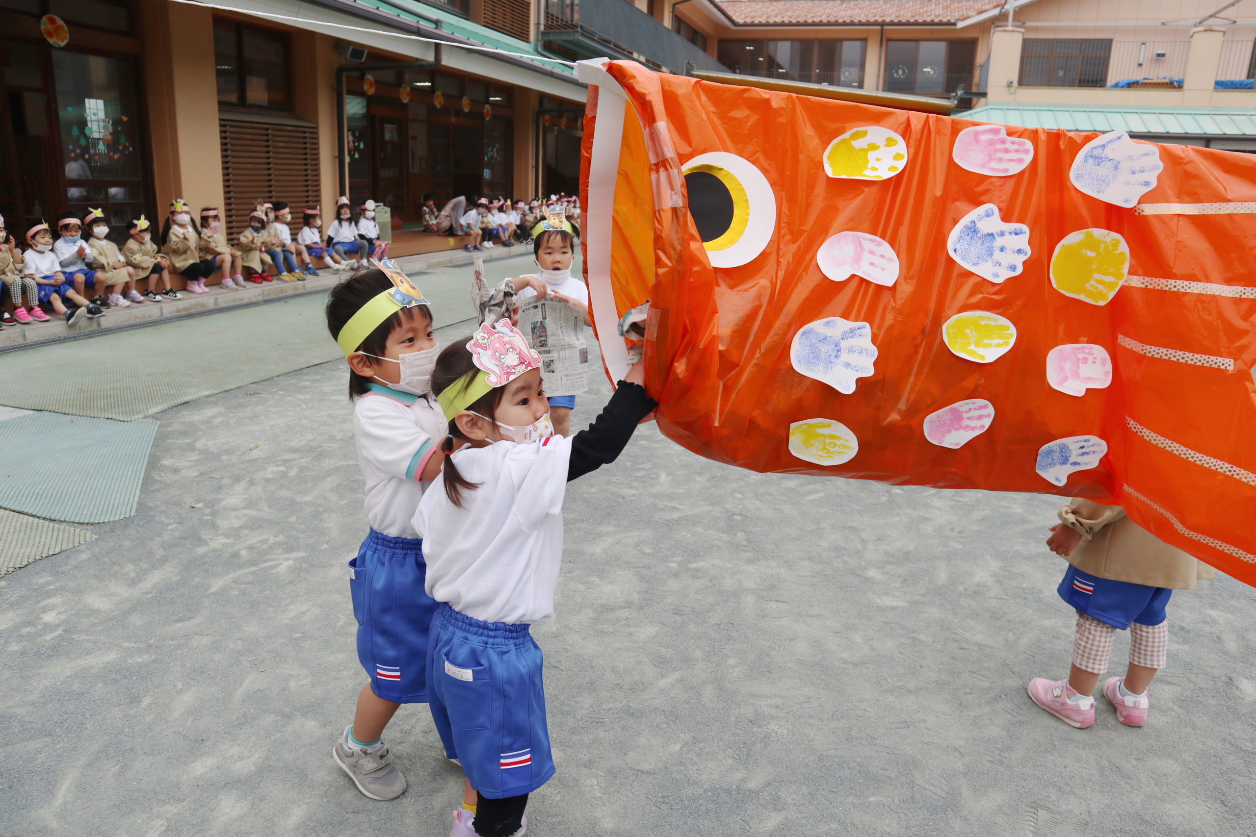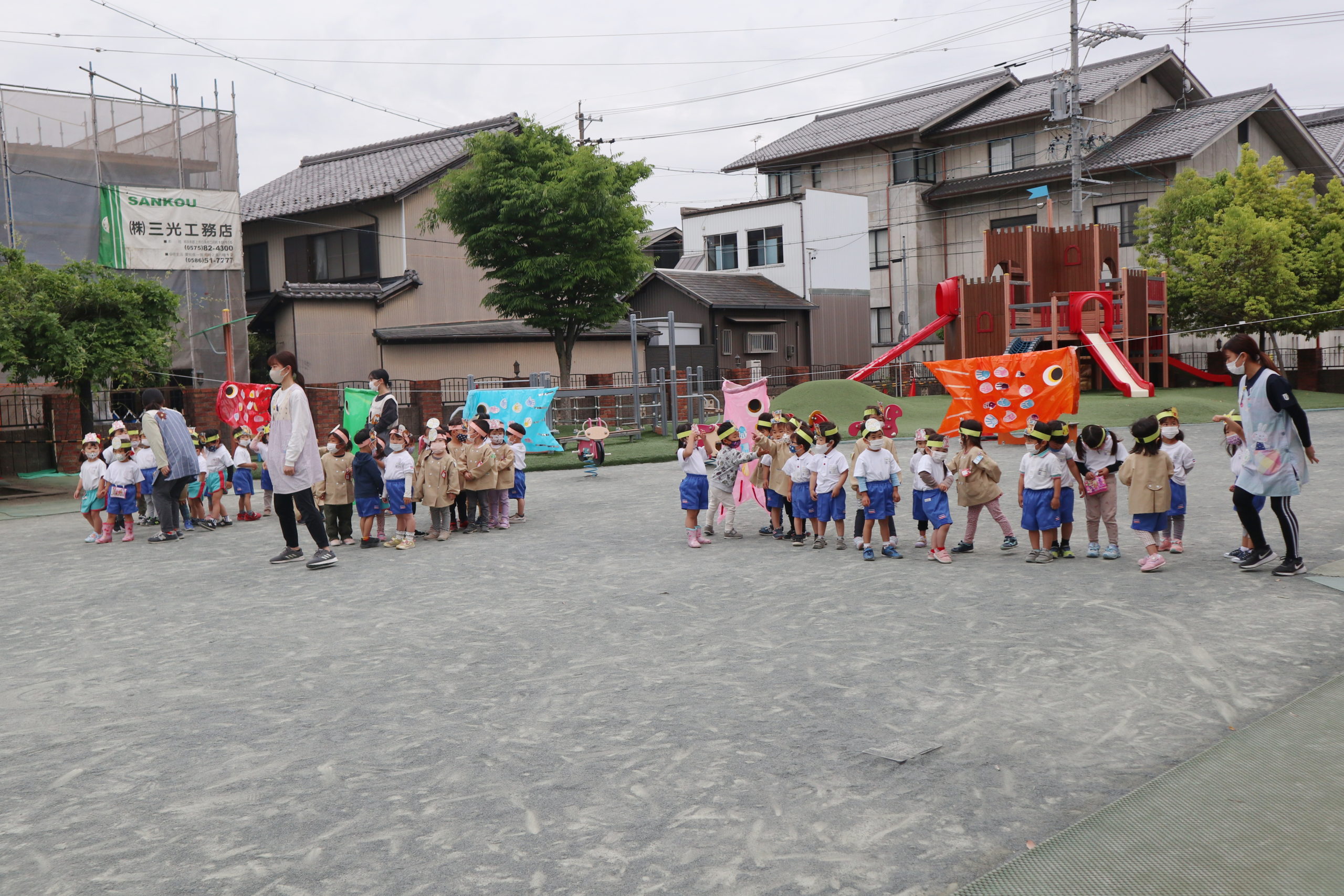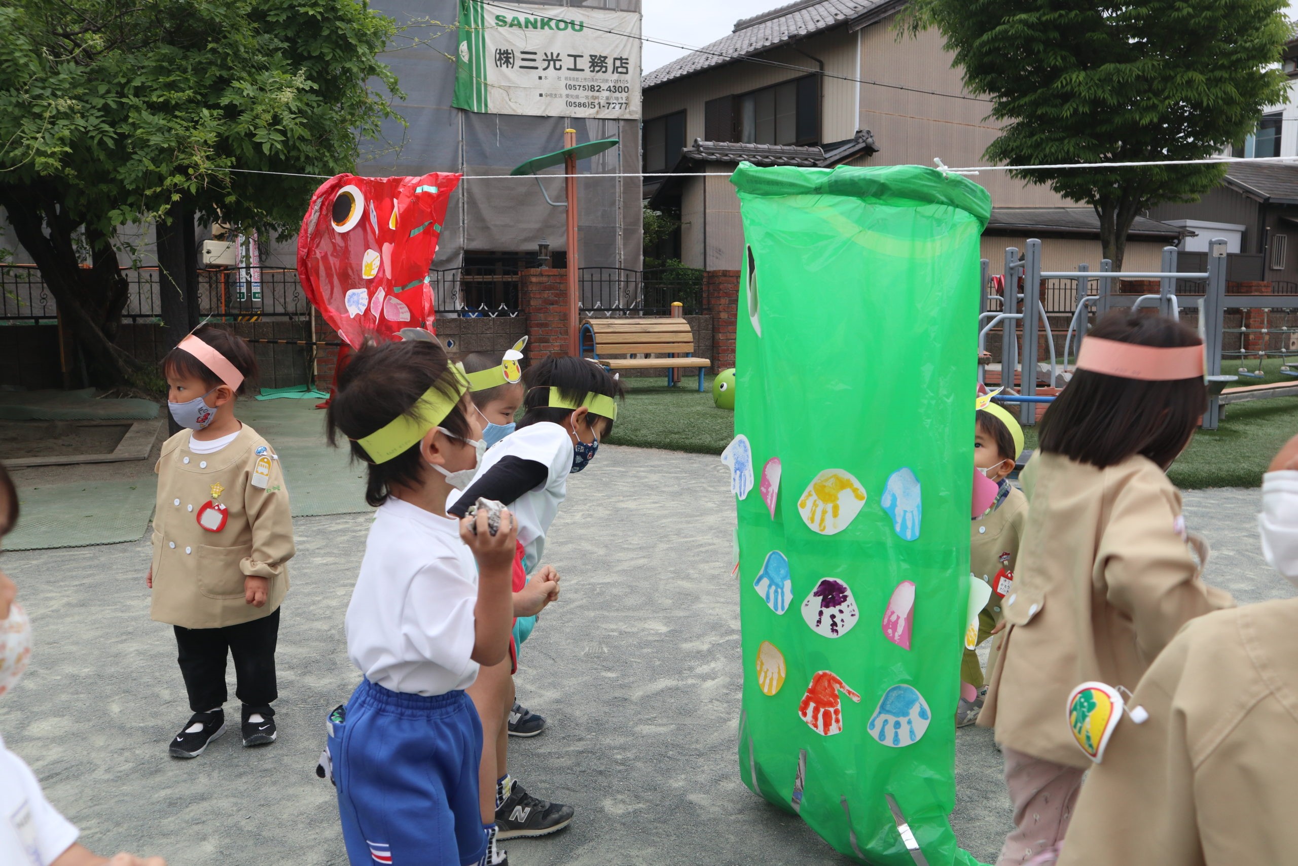 しっぽにするよりこっちの方がこいのぼりさんよく泳ぐよってようこ先生もこどもたちもとっても楽しそう!