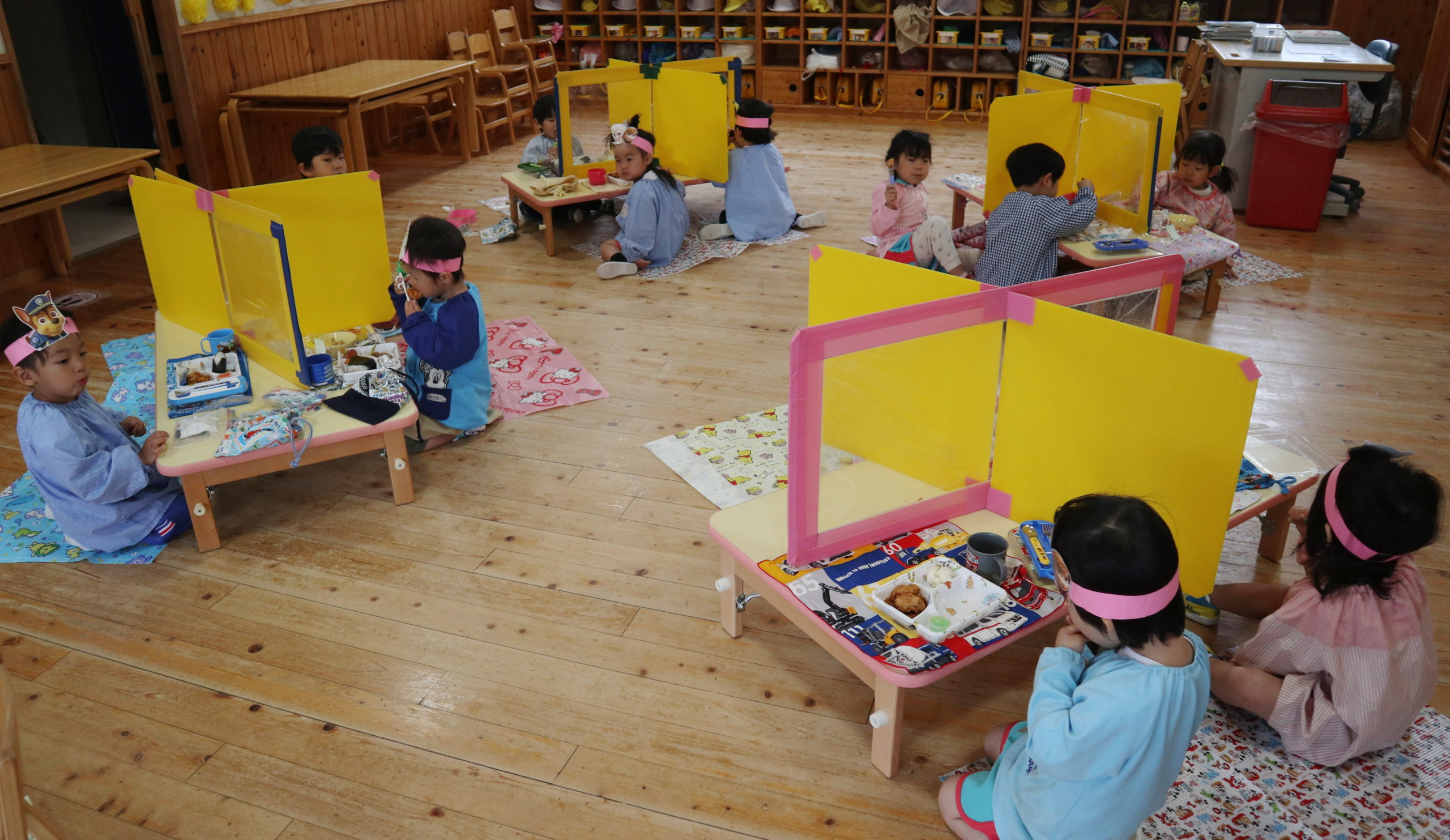 お部屋でシートを敷いていただいたよ。いつも使っているお部屋だけど、なんだか違って見えるね。