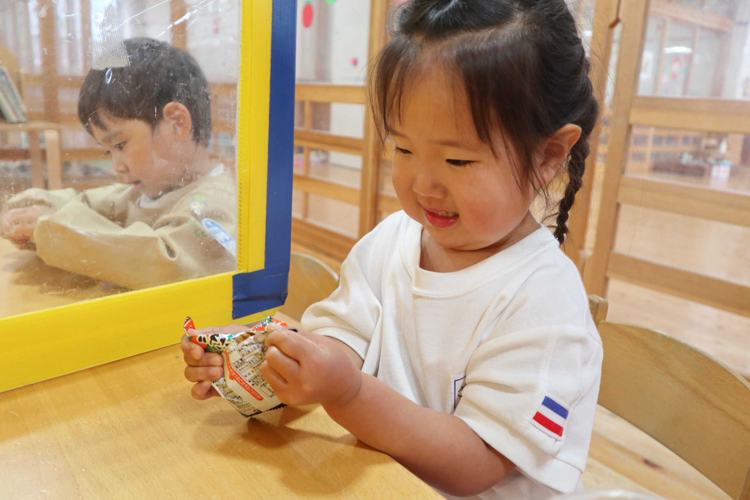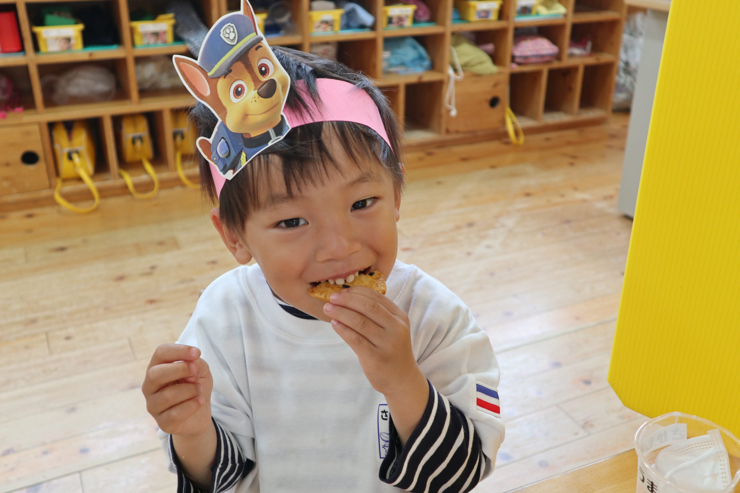 最後のおたのしみはこいのぼりクイズを当ててもらえたおやつ。みんなよくがんばったね。