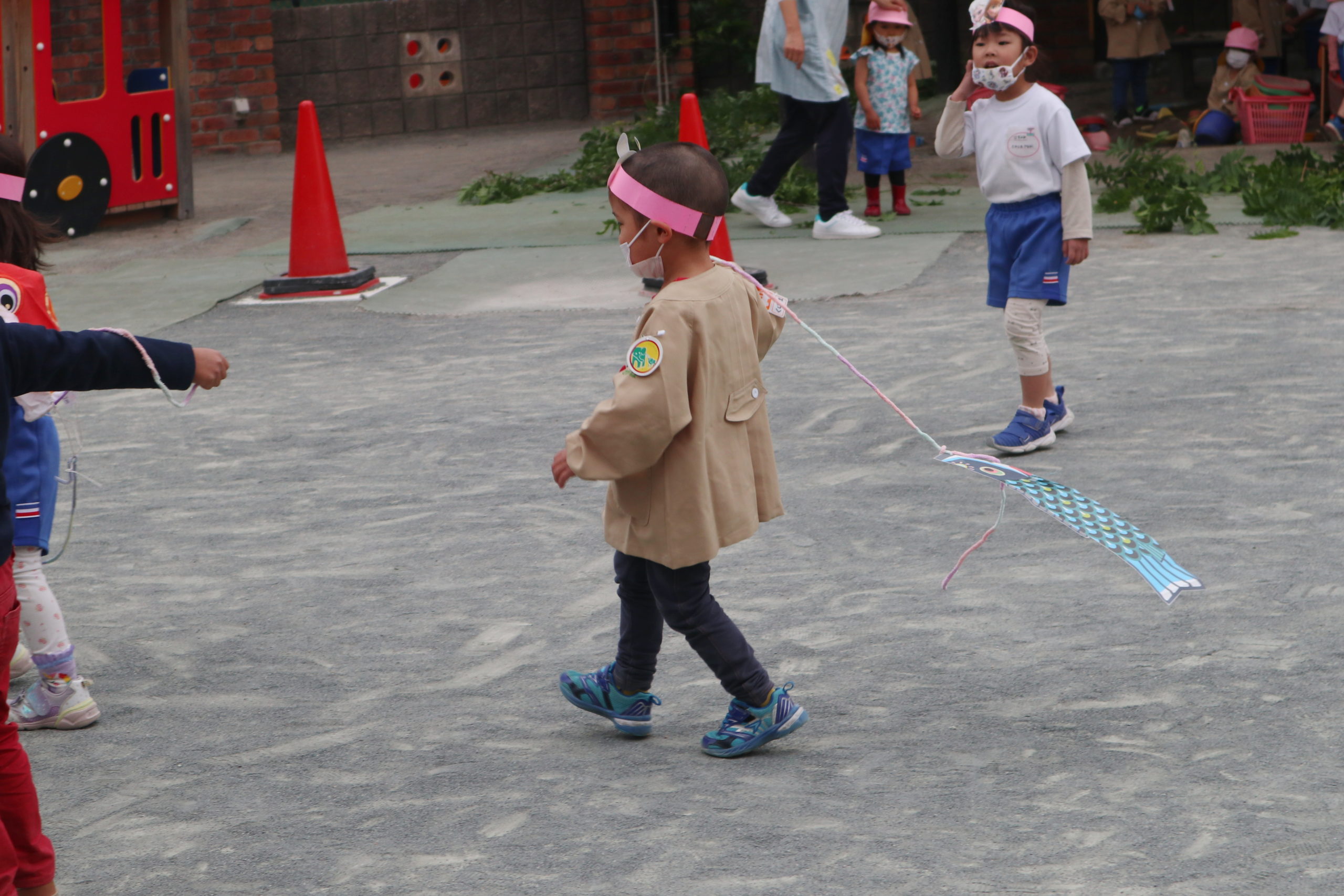 こいのぼりにごはんを運んであげたり、夢中で先生やおともだちと駆け回ったり、とてもかわいらしい中にたくましさが感じられました。