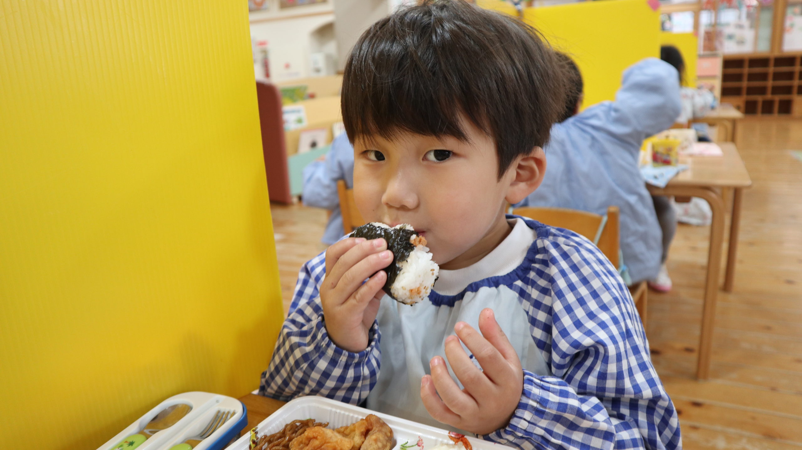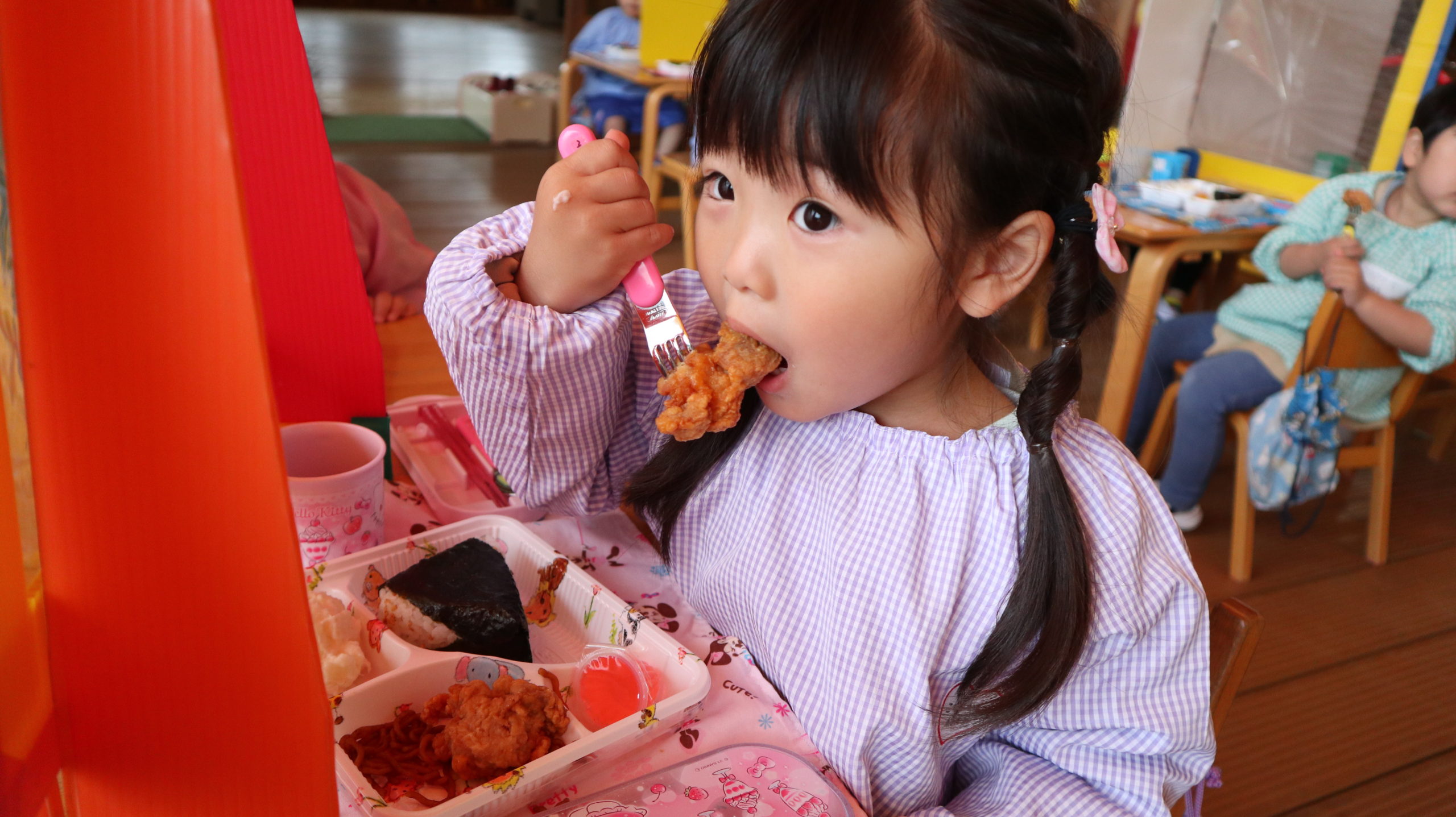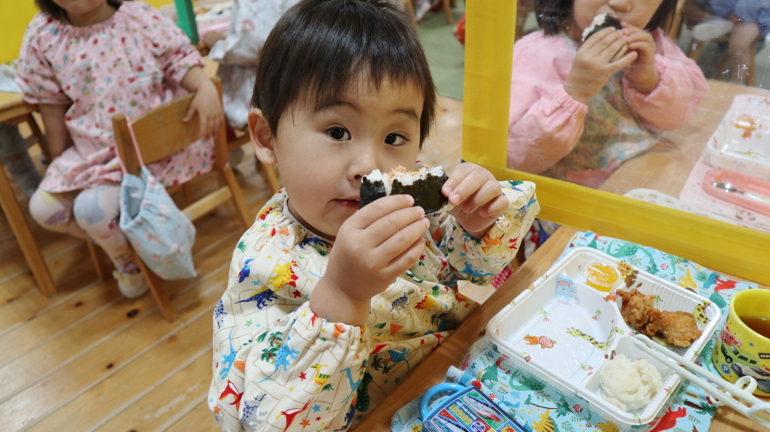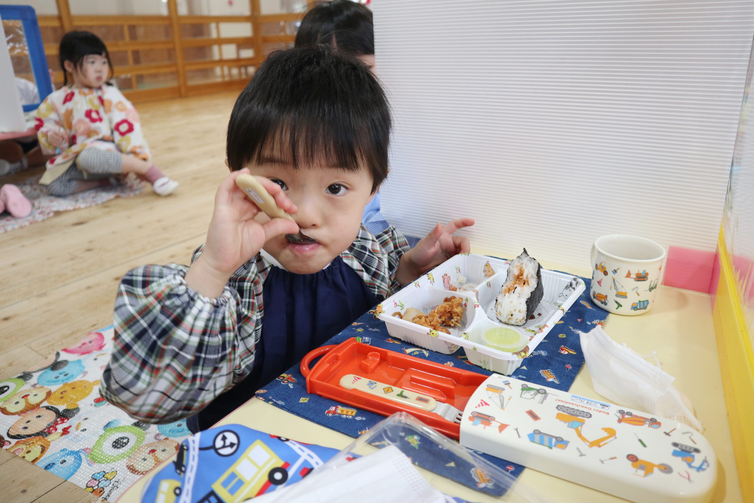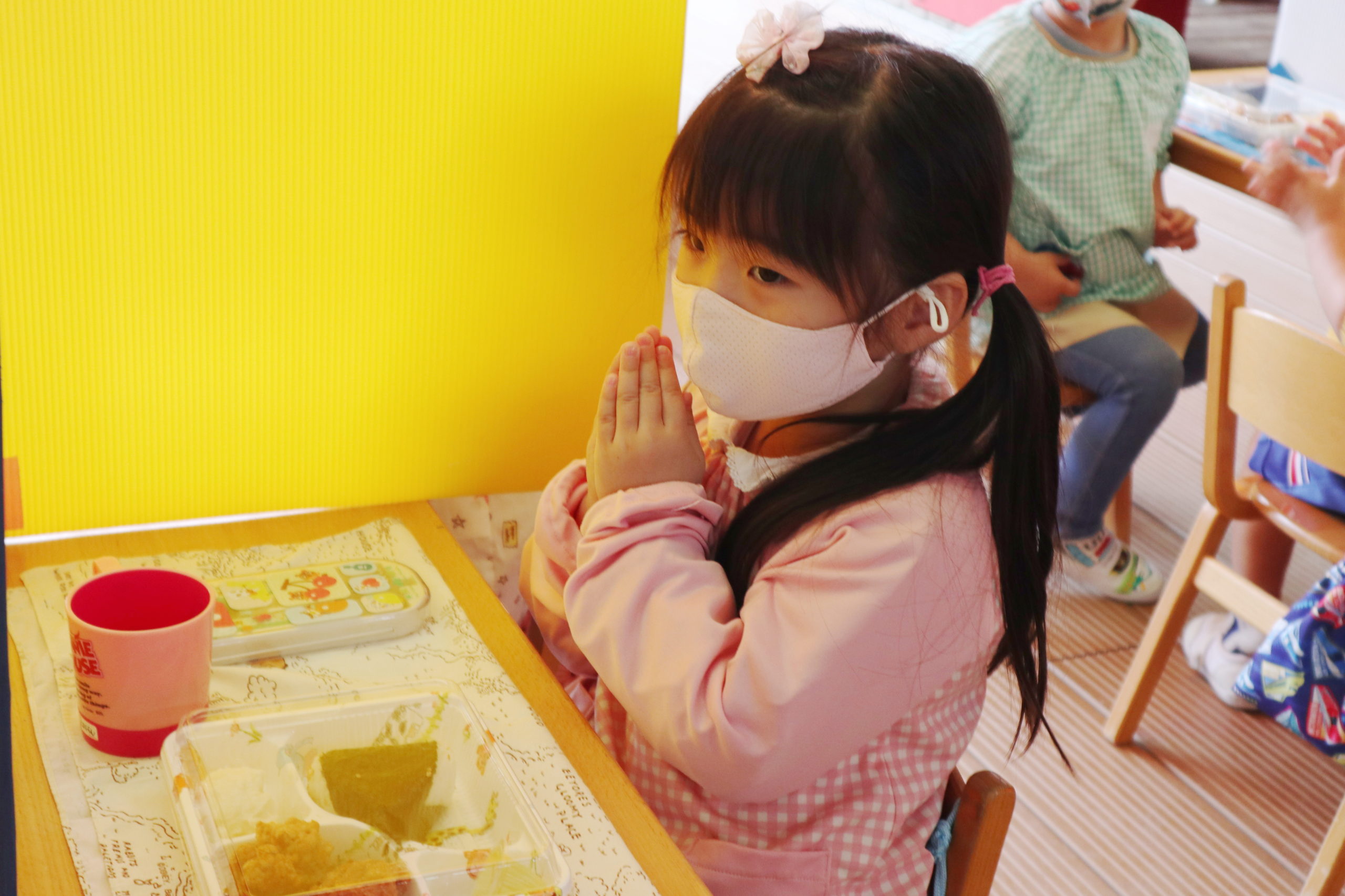 たくさん体を使って遊んだ後は、もう一つのお楽しみ!ランチタイム🍴食前のことばも覚えて言えるようになったね。