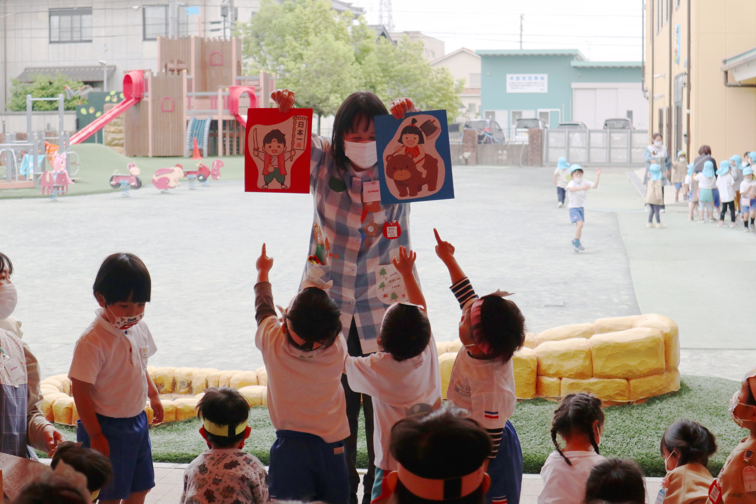 こいのぼりフェスティバルということでこどもの日に因んだクイズを楽しみました。クラスのおともだちと一緒に考えて答えていましたよ。