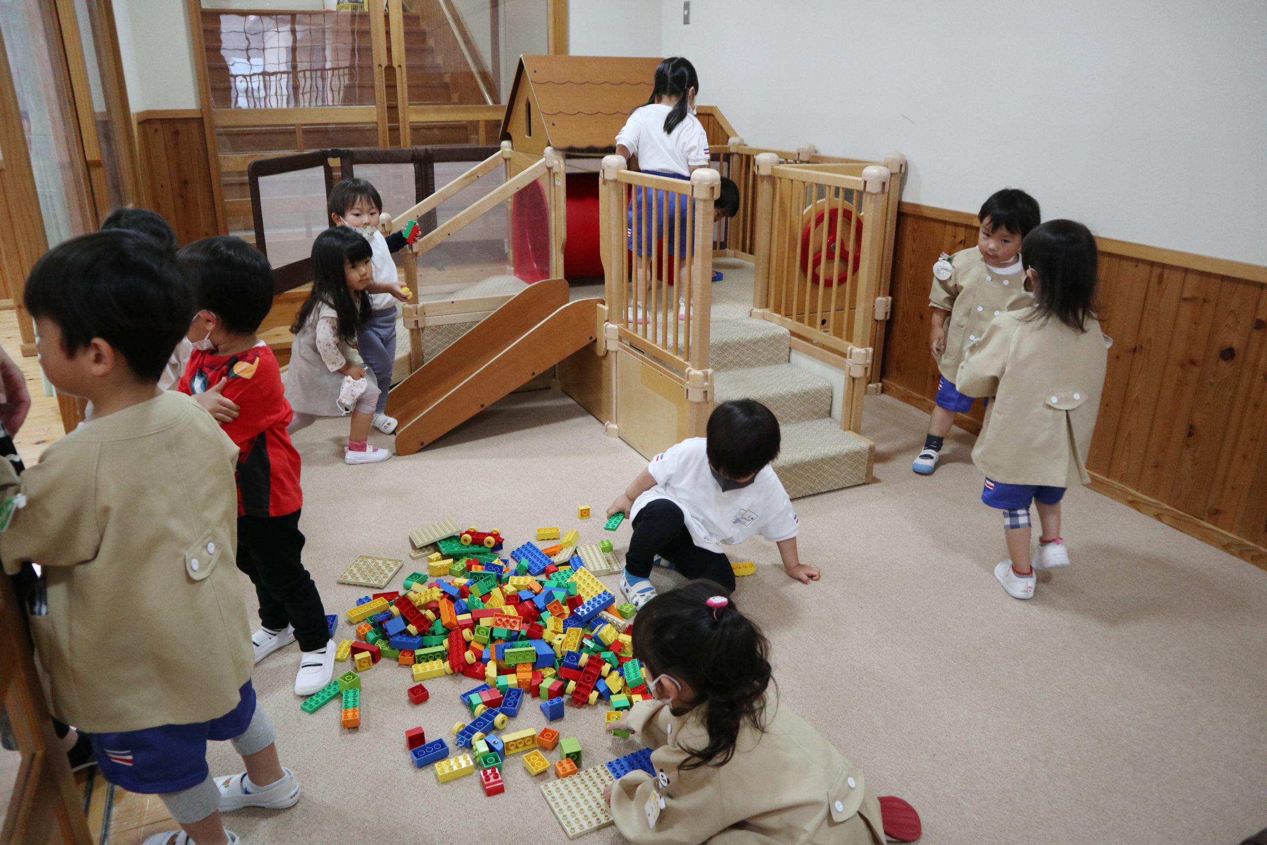 お昼から昼寝の子は部屋で休み、お昼寝しない子は遊びのコーナーで遊びます。
