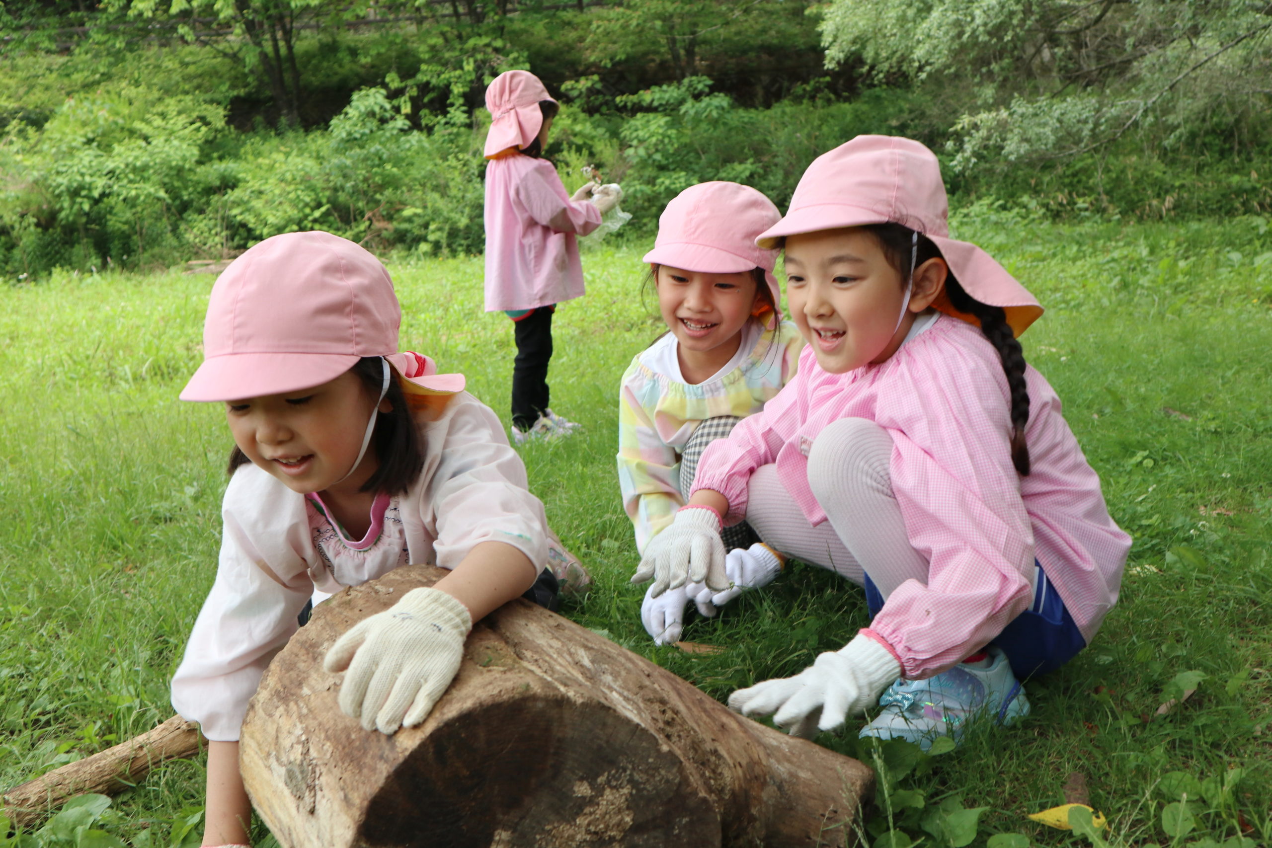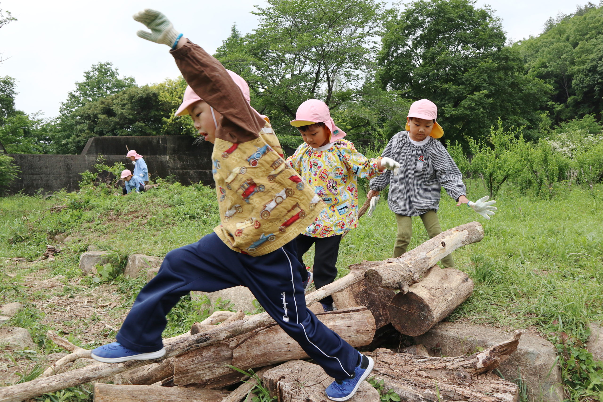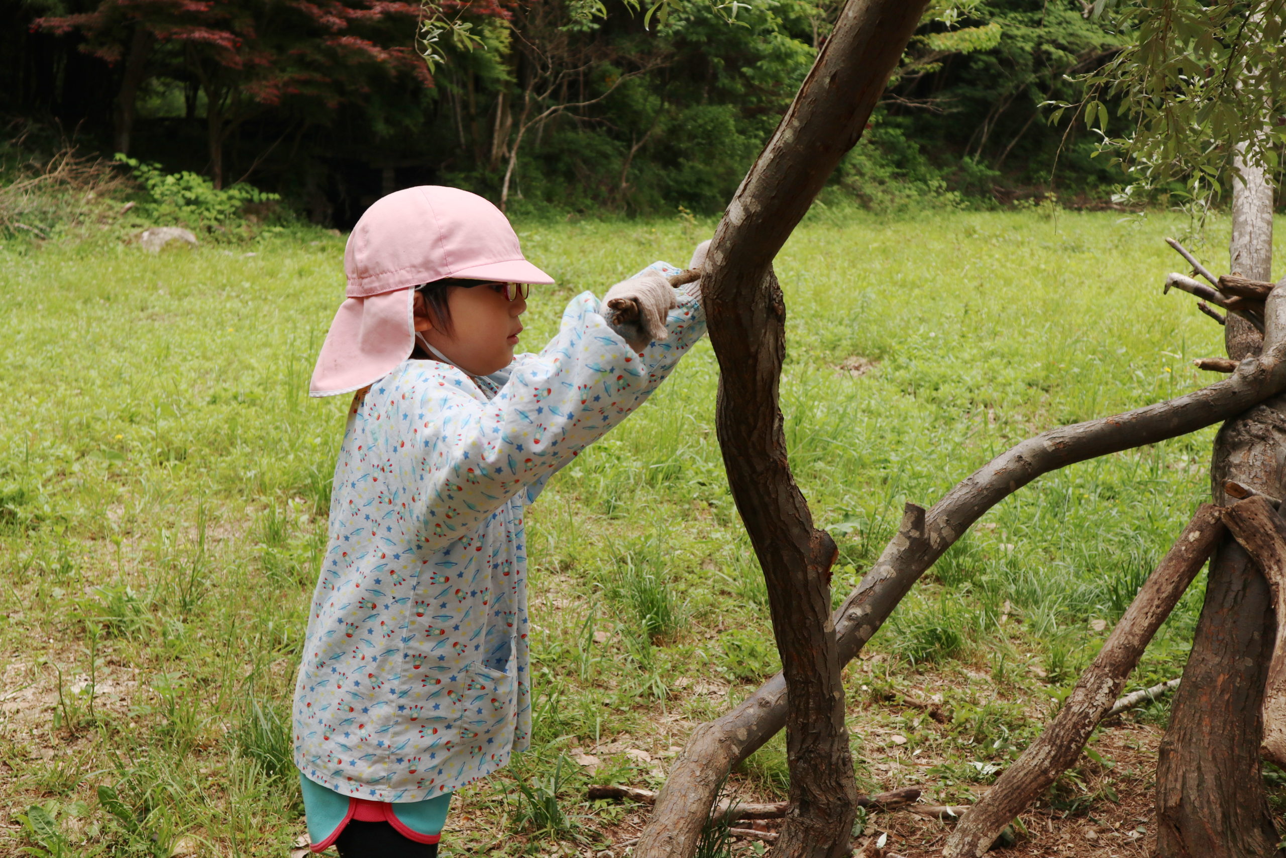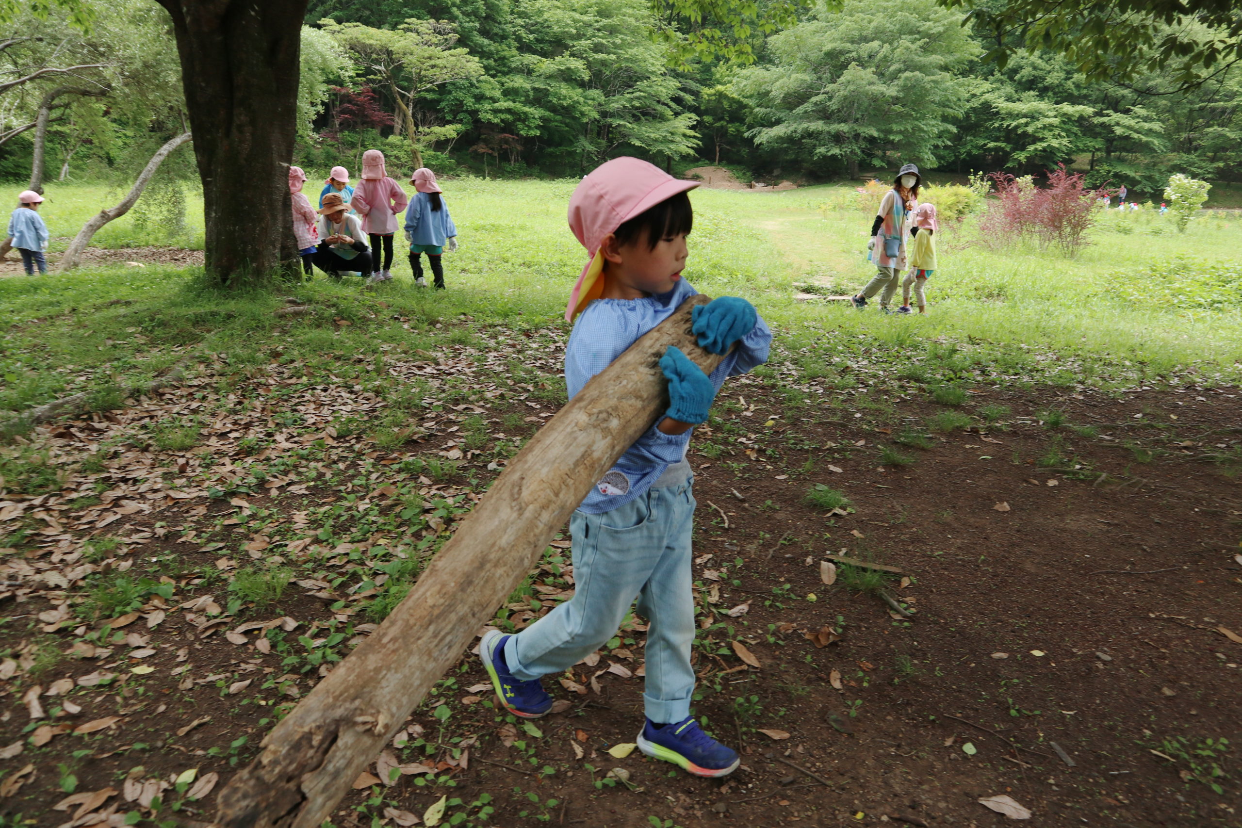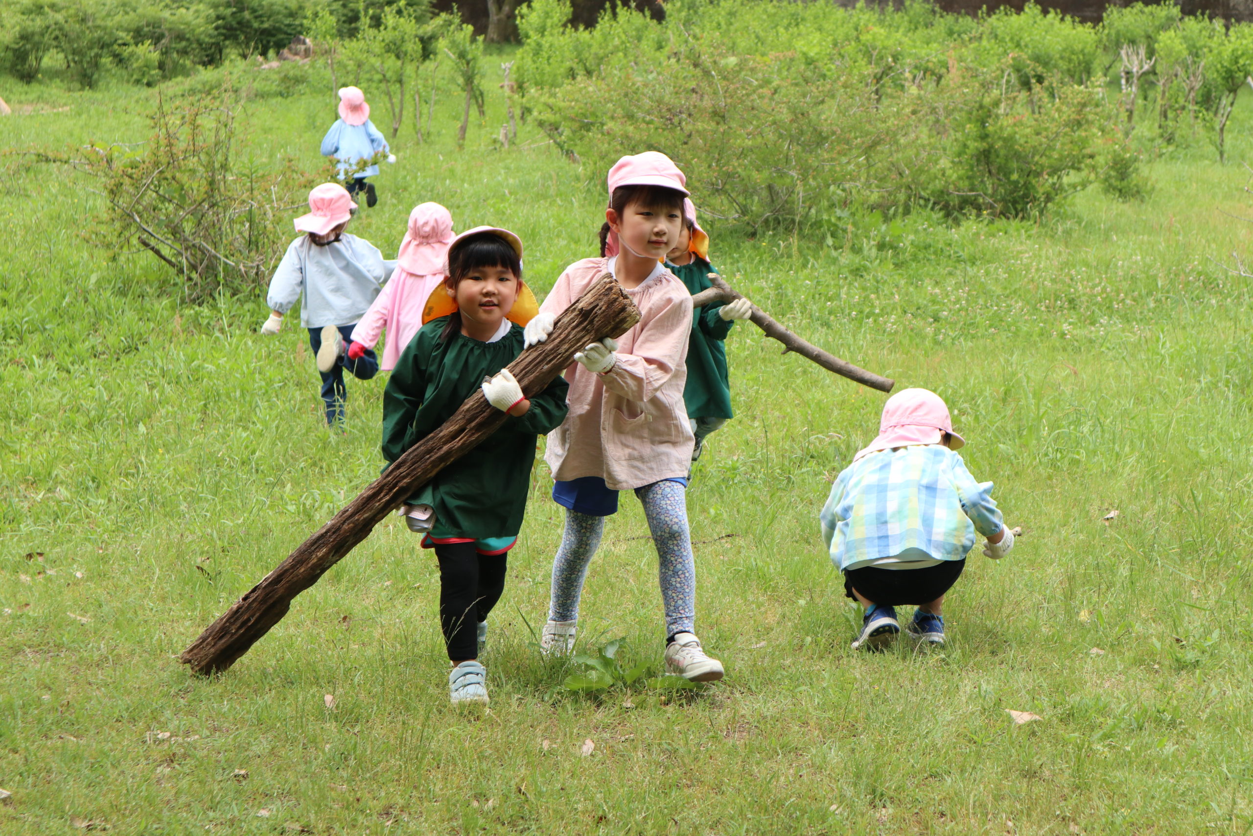 遊具のないところで何をしていいのか?戸惑い苦手な子もいますが、おともだちや先生に誘われて少しずつ活動できるようになってきています。誰だって苦手なことがありますが、自然の中で遊ぶ楽しさを伝えていきたいと思っています。