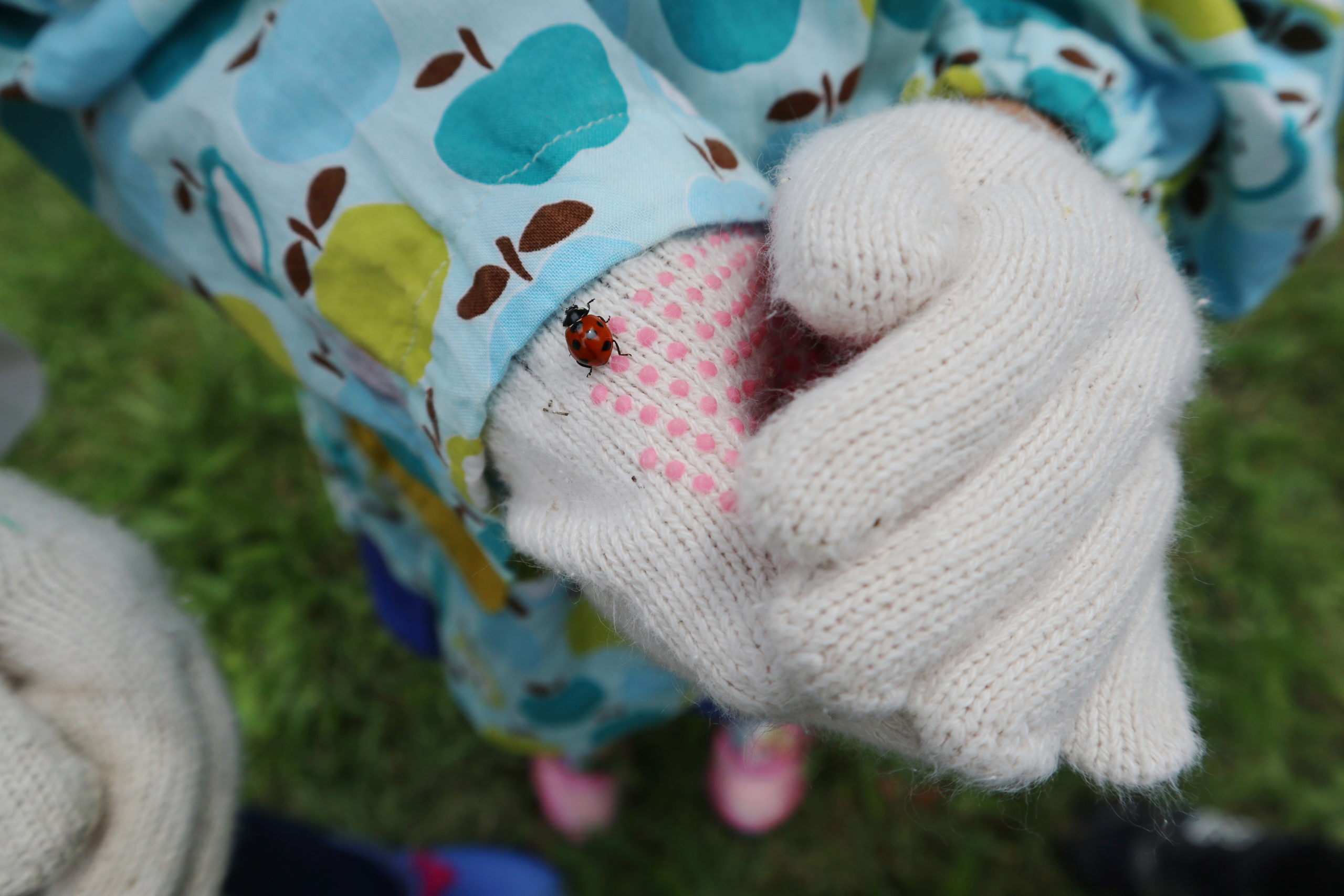 「てんとう虫見つけたよ!てくてく歩いているよ。かわいいー。」