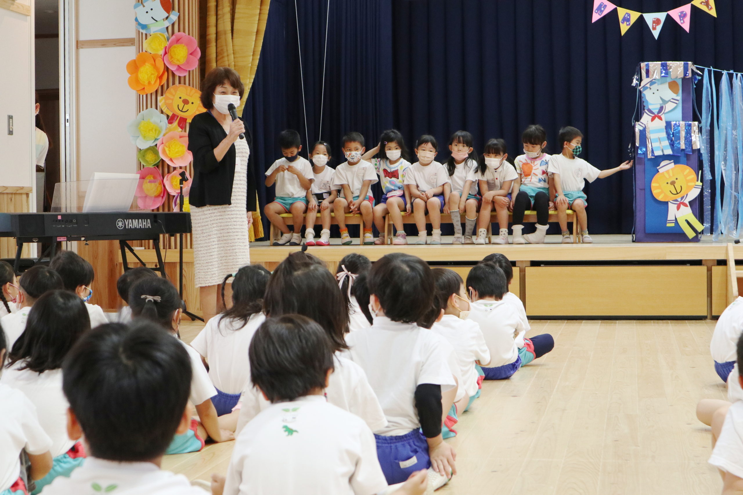 園長先生からお誕生日を迎えたお友達にお祝いの言葉のプレゼントがありました。