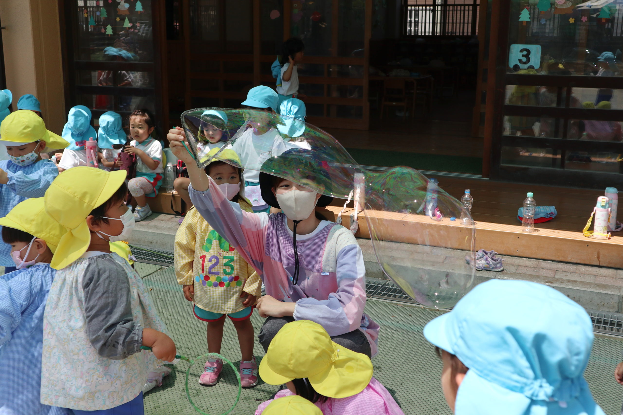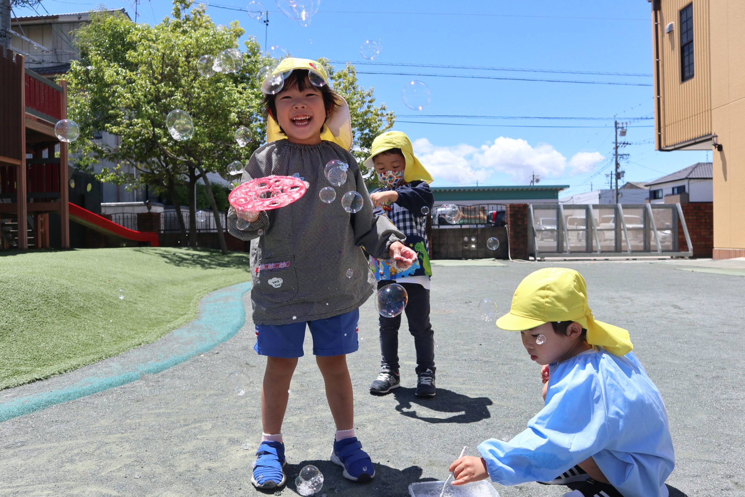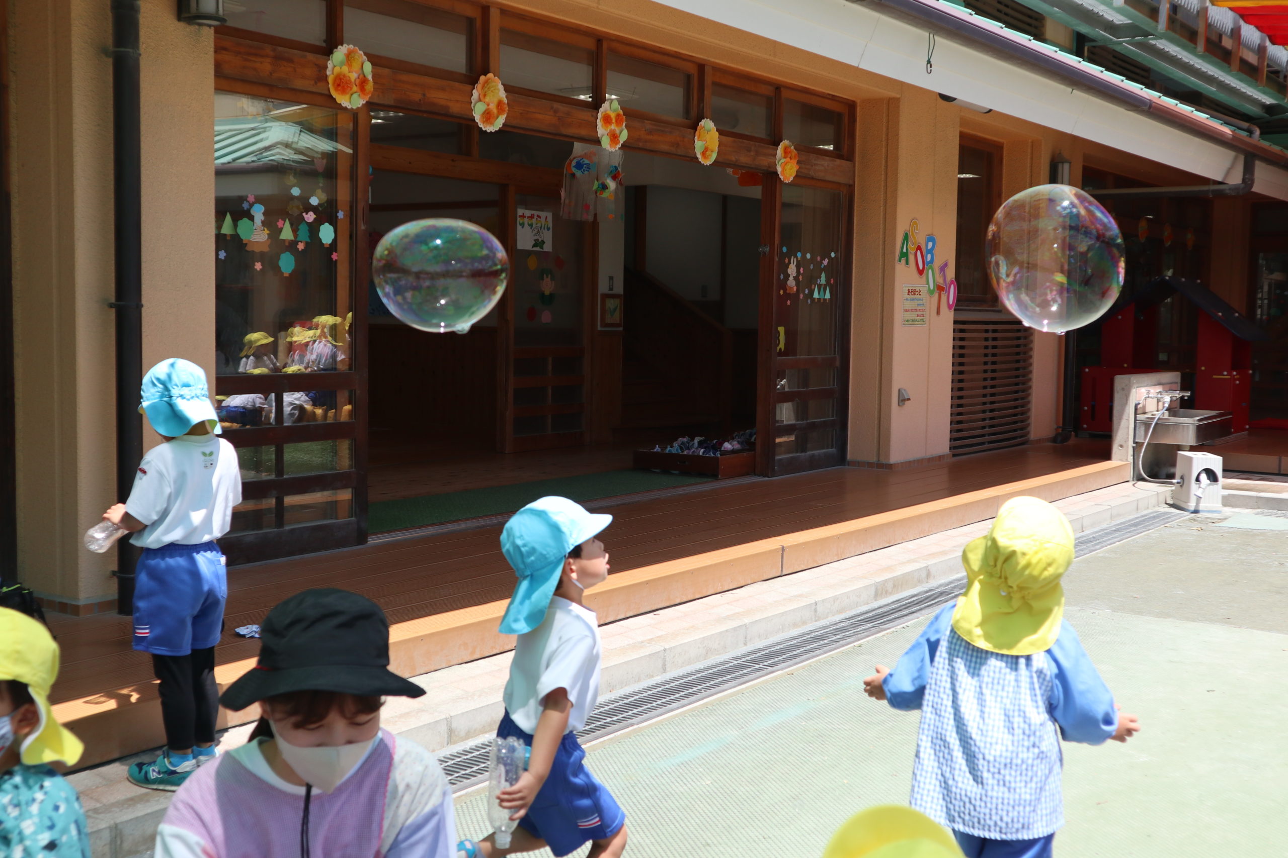 年少組のこどもたちはしゃぼんだまあそびをしました。