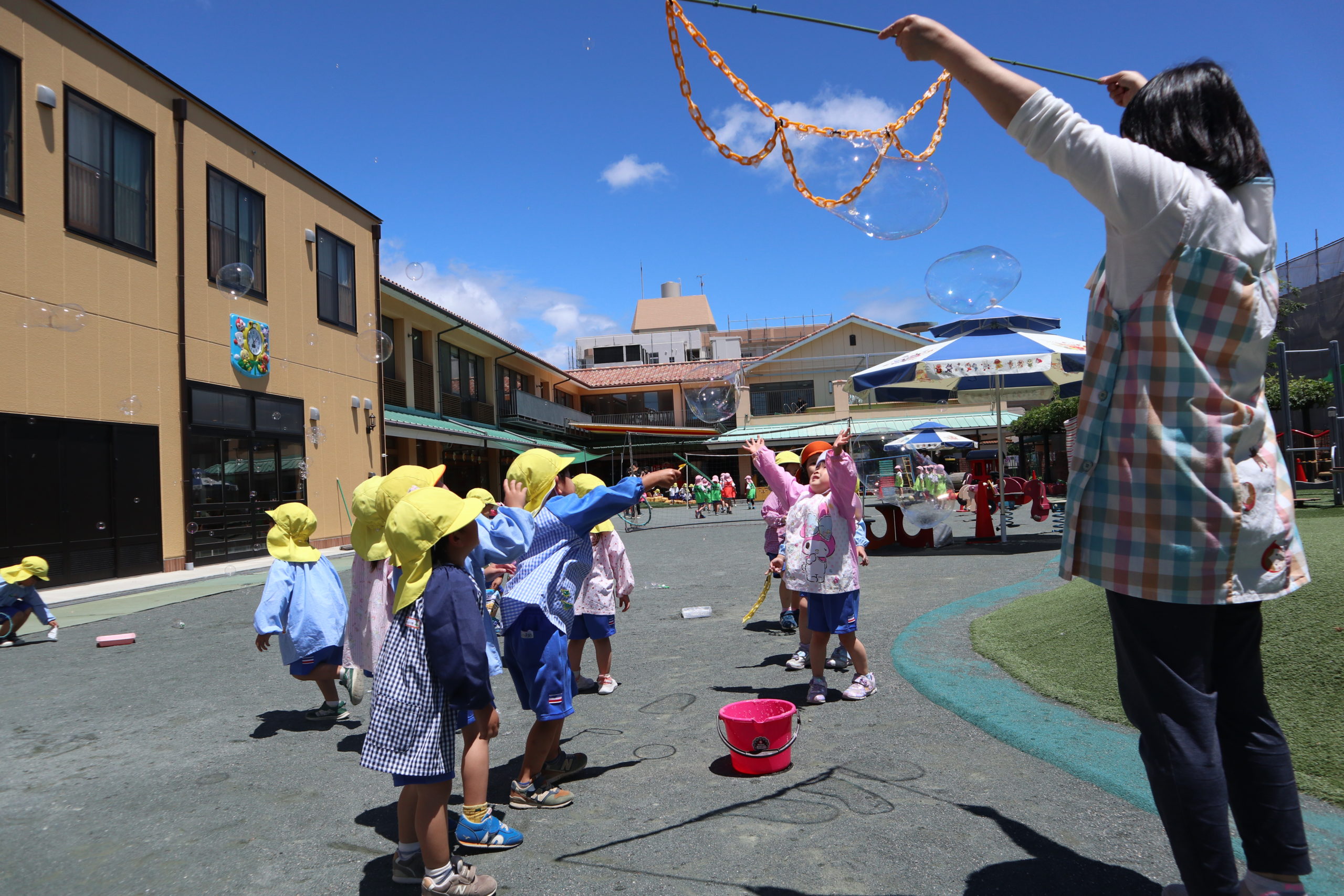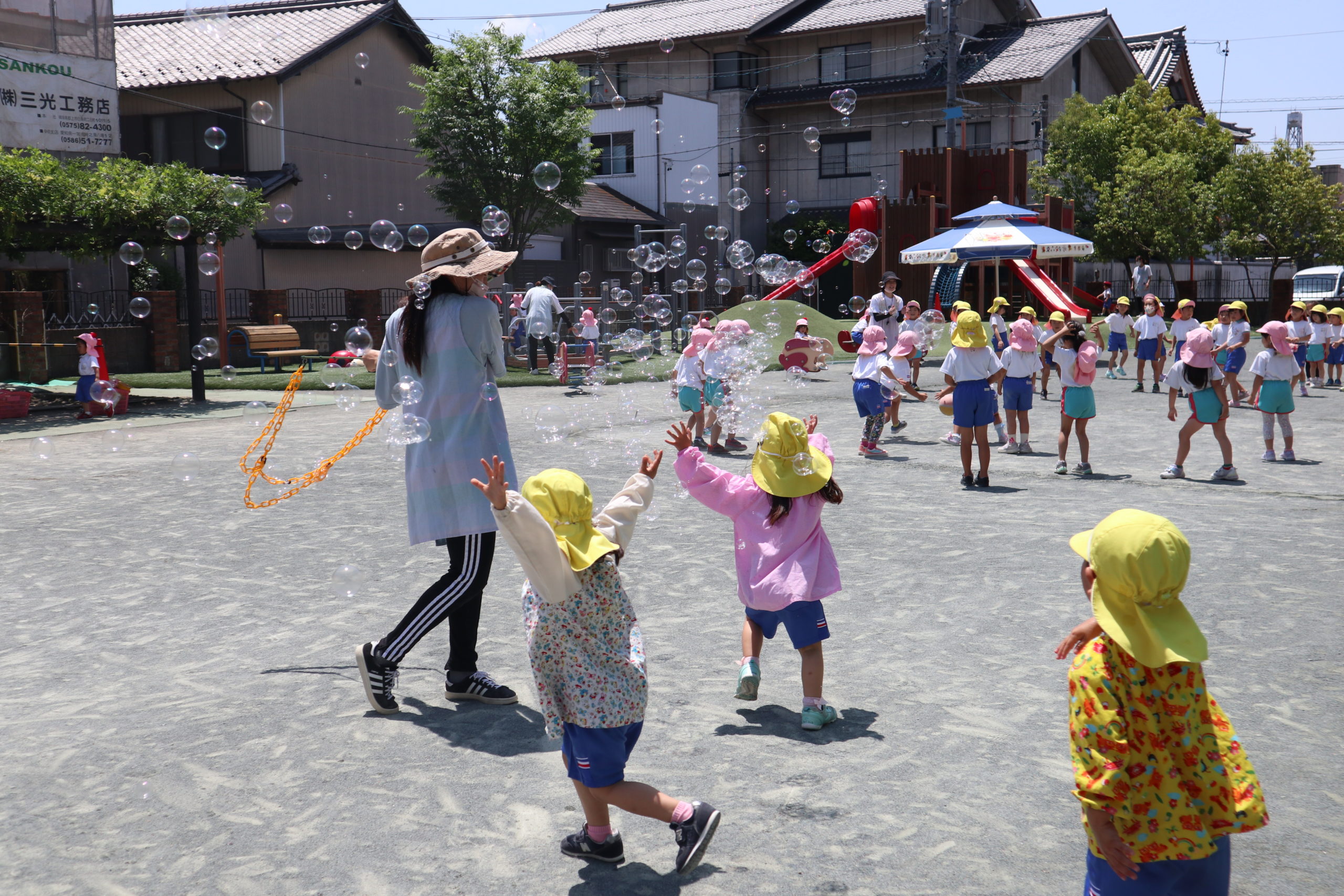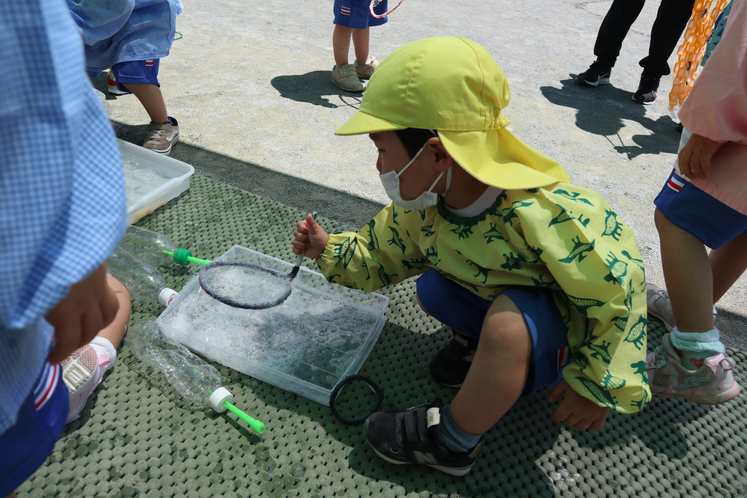 年少組のこどもたちはしゃぼんだまあそびをしました。