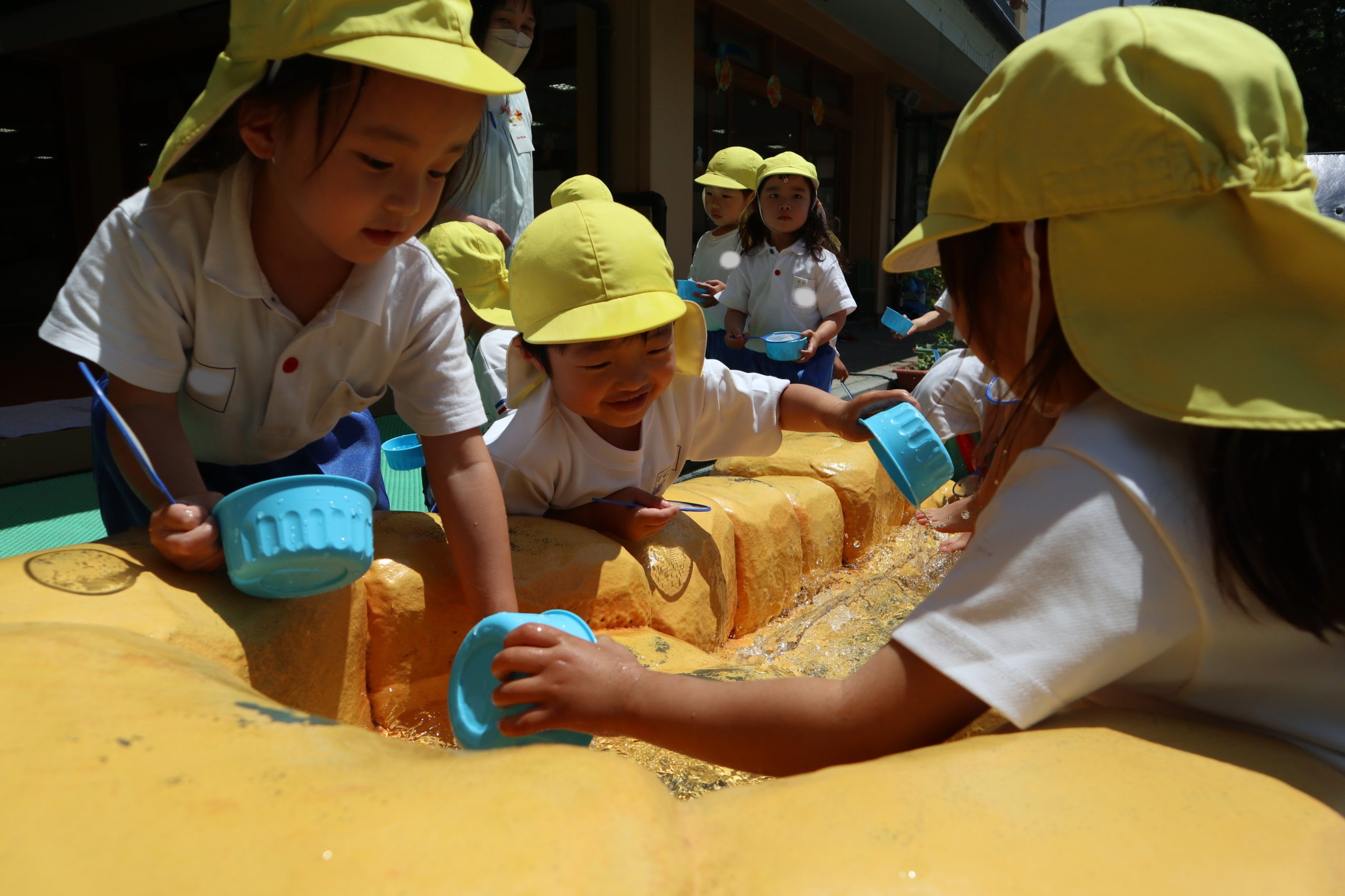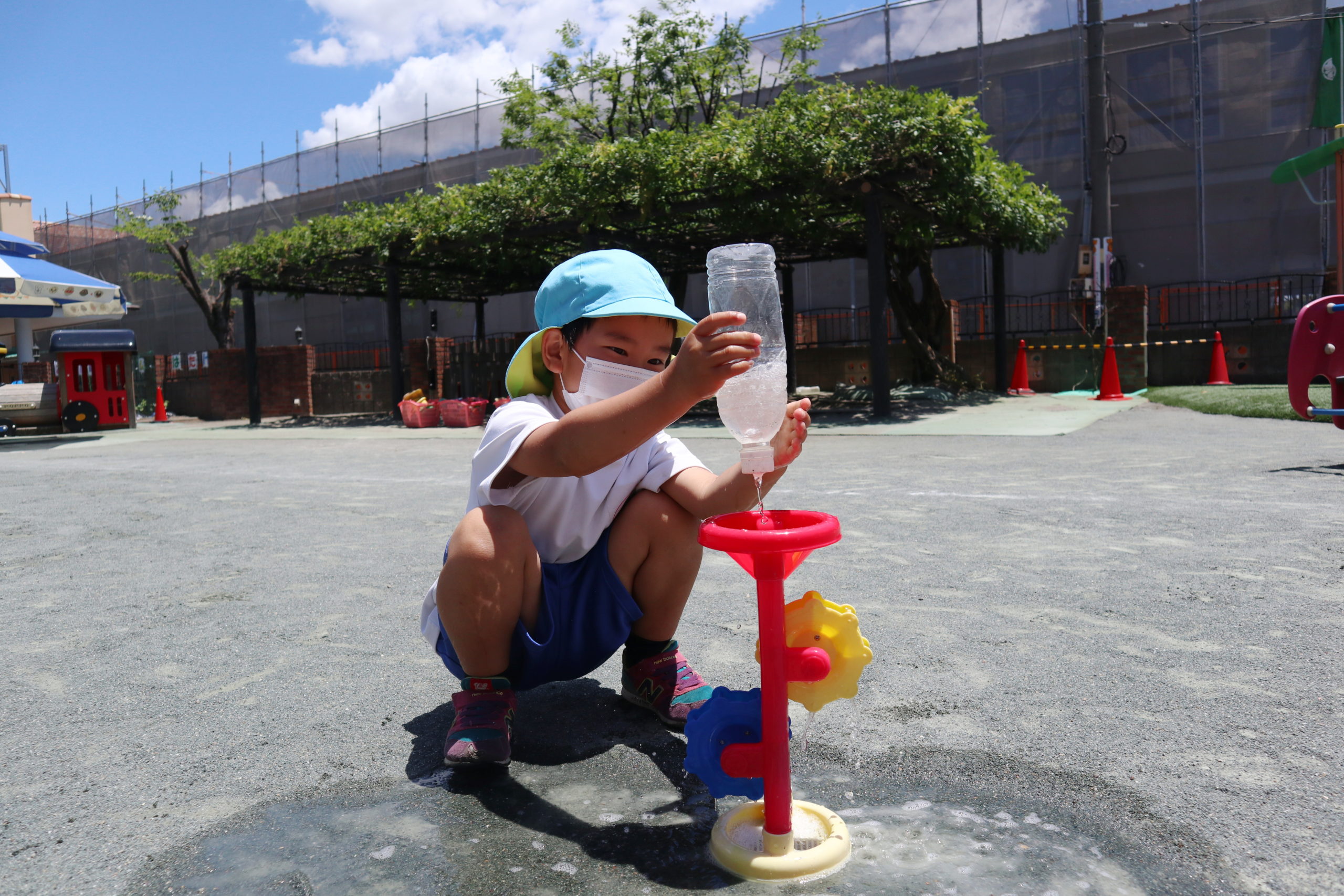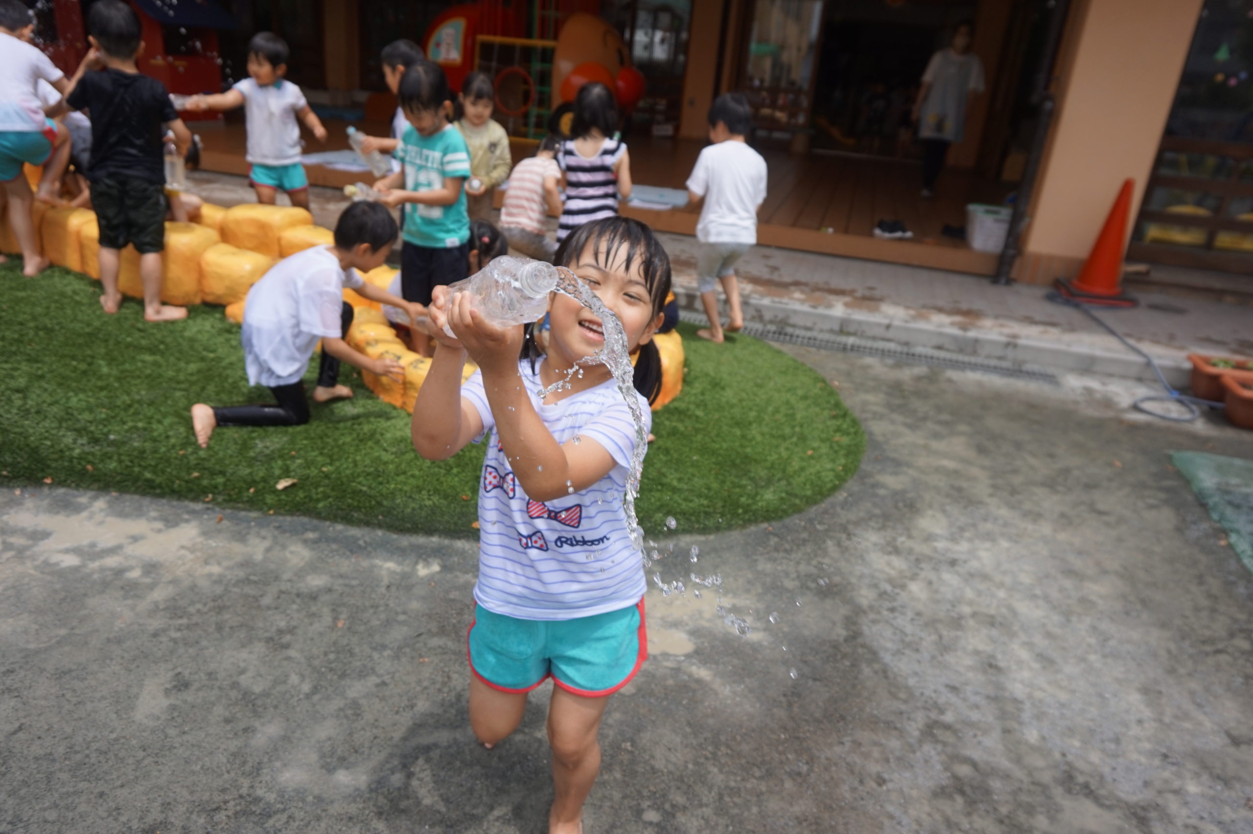 暑い日には水あそびに限りますね。お天気がいい日のASOBOTTOでは、こどもたちの楽しそうな歓声があがっています。