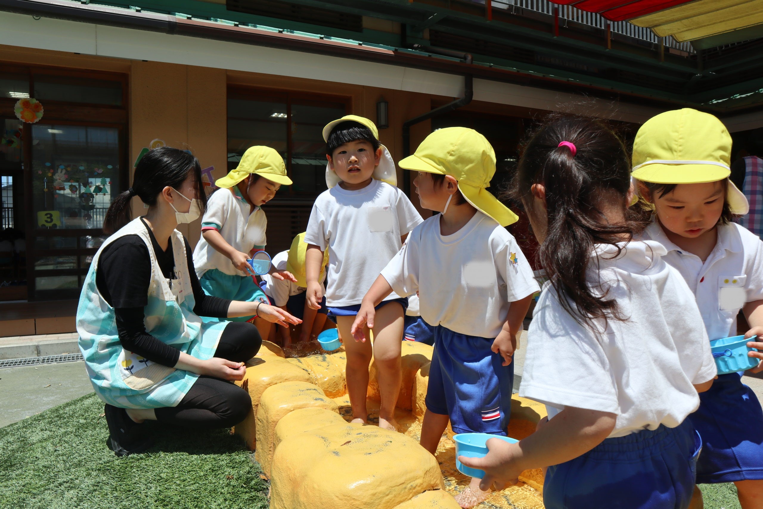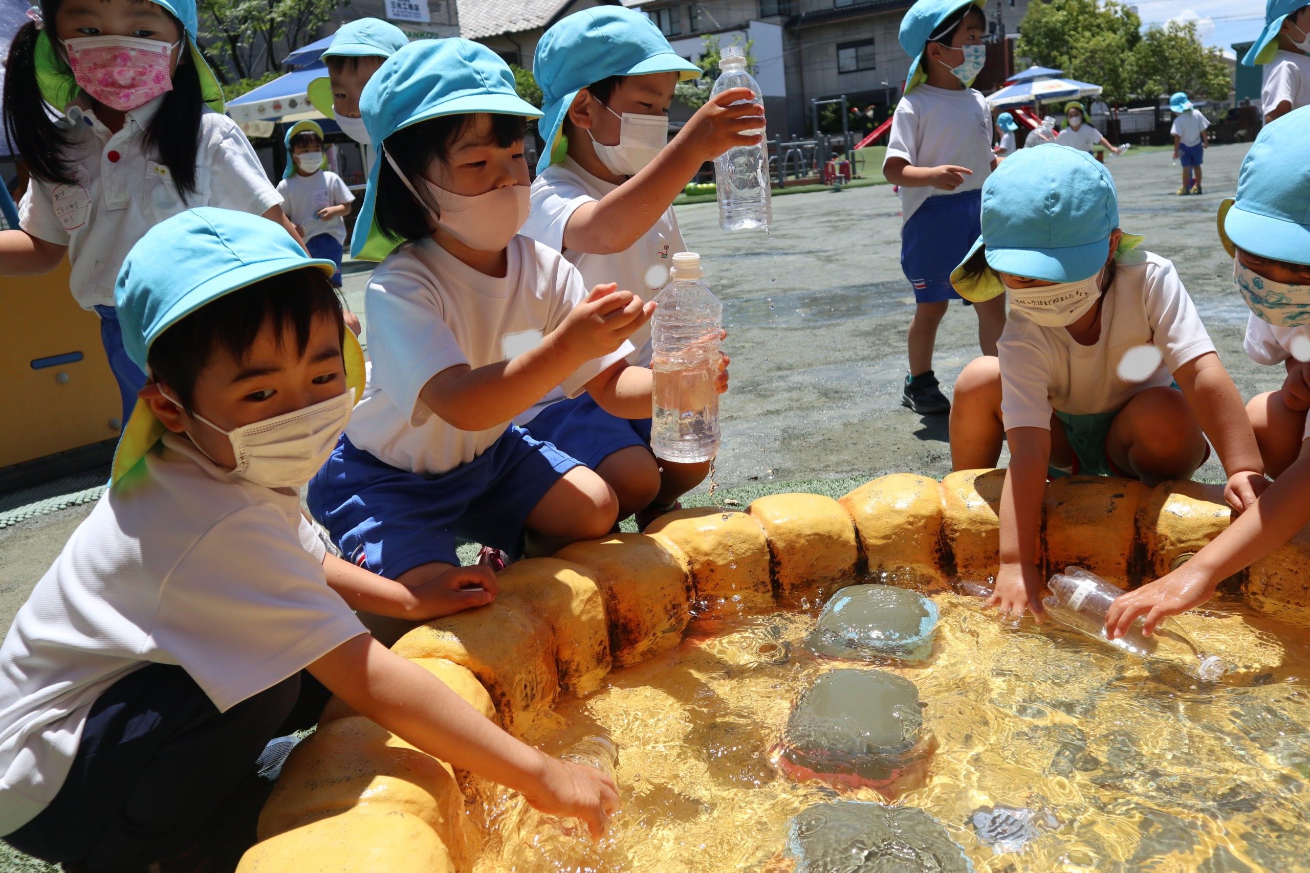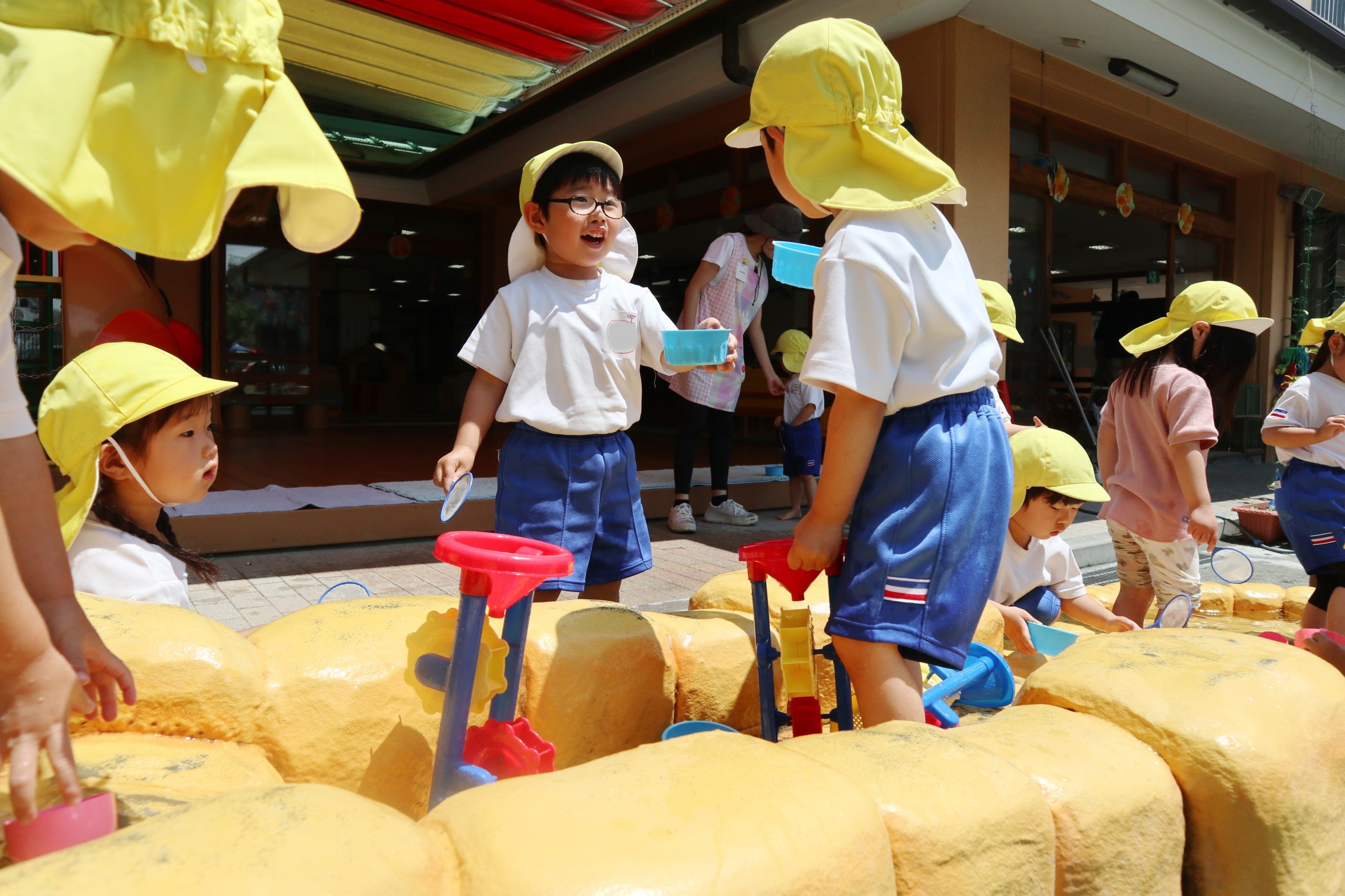 暑い日には水あそびに限りますね。お天気がいい日のASOBOTTOでは、こどもたちの楽しそうな歓声があがっています。