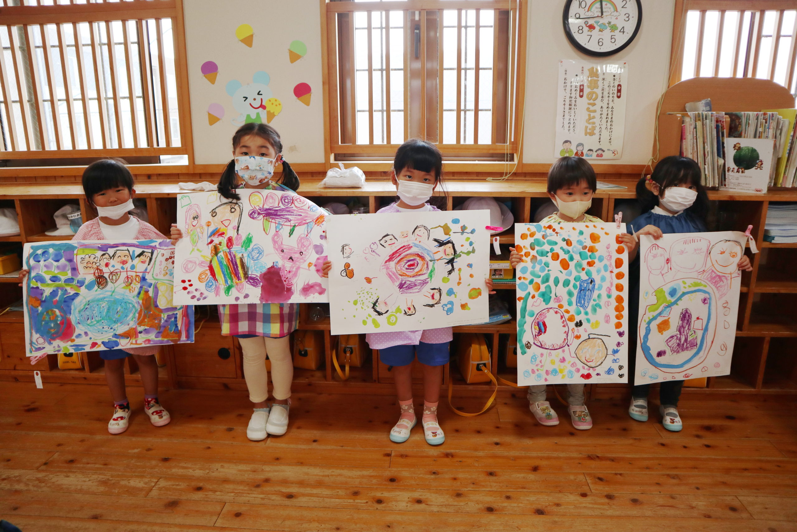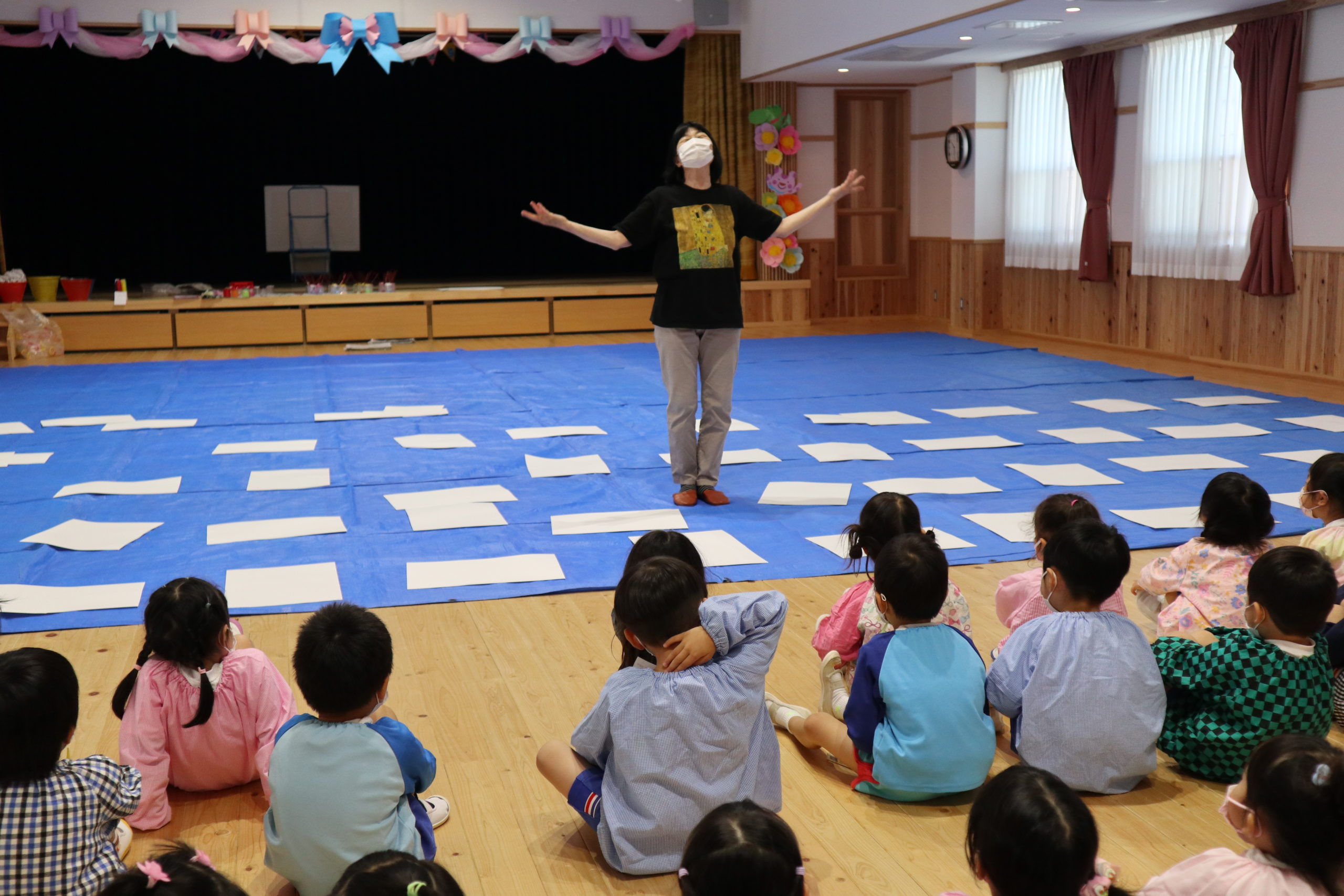 ふしぎなたいこをみんなでたたくよ!とっても楽しい作品ができあがりました!