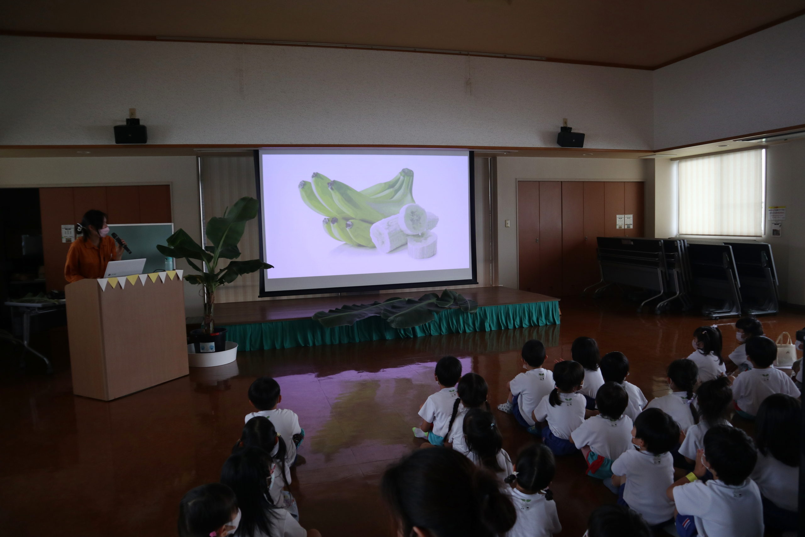 「みんなバナナ好き?今日はこのバナナについてみんなに知ってもらいたいです。」とおねえさん。