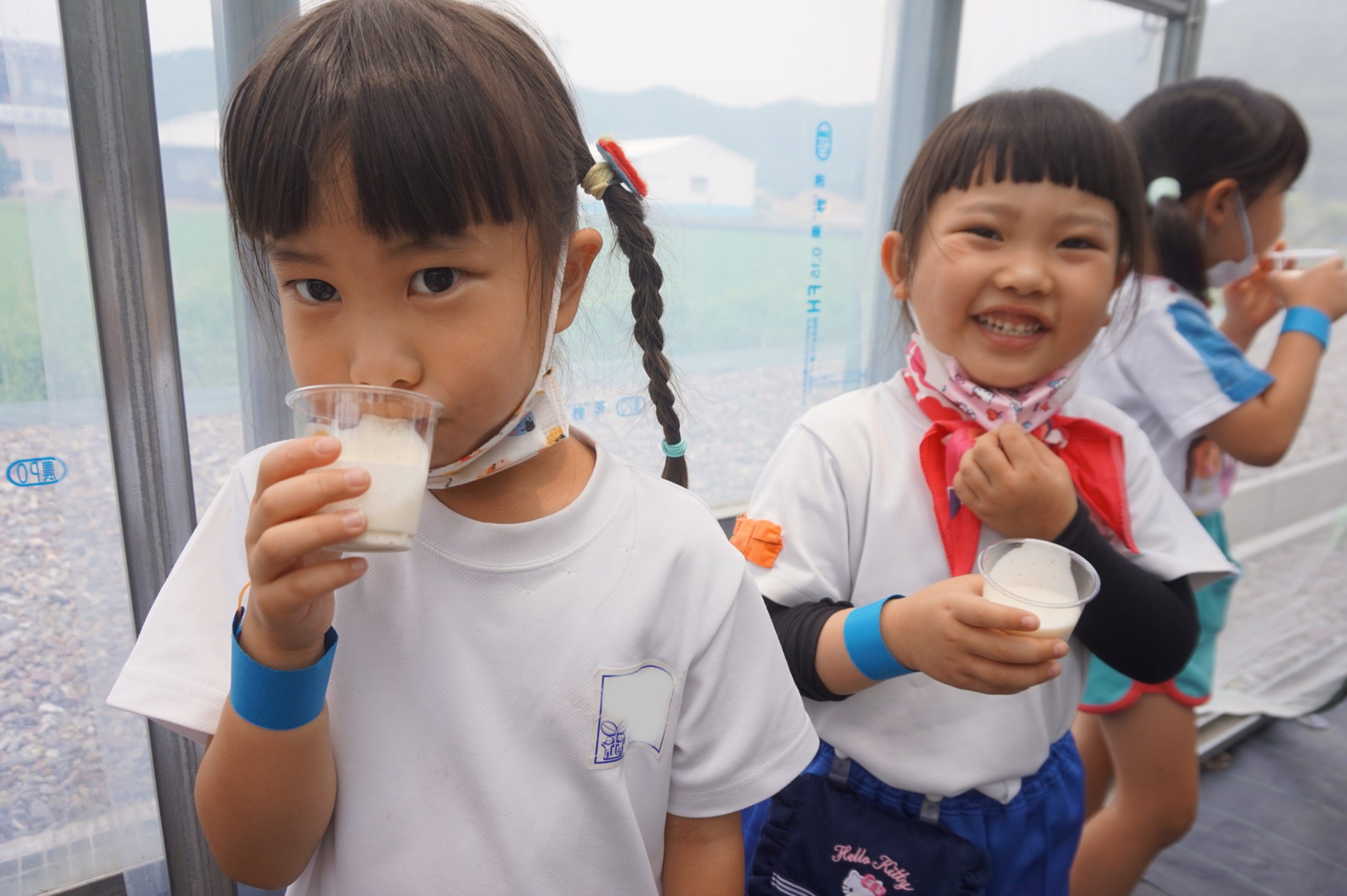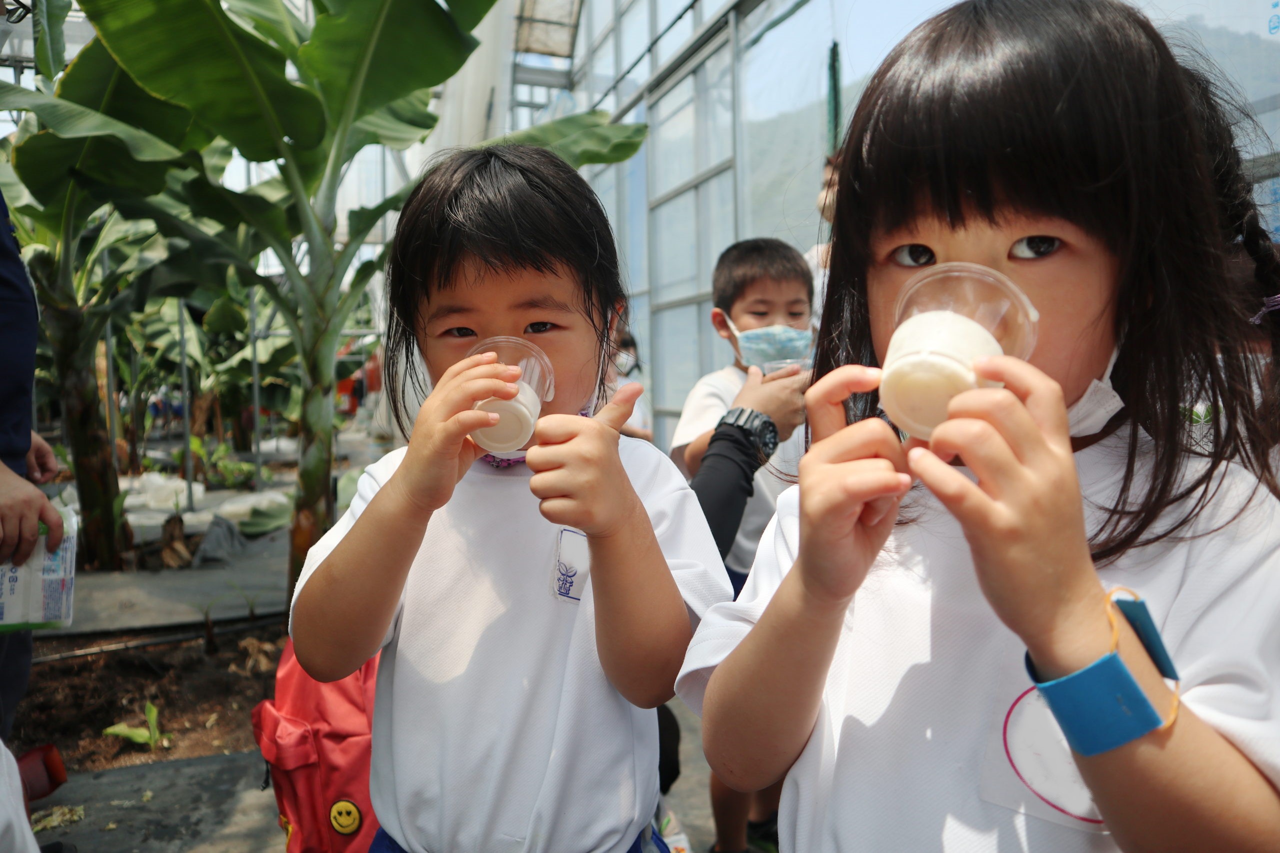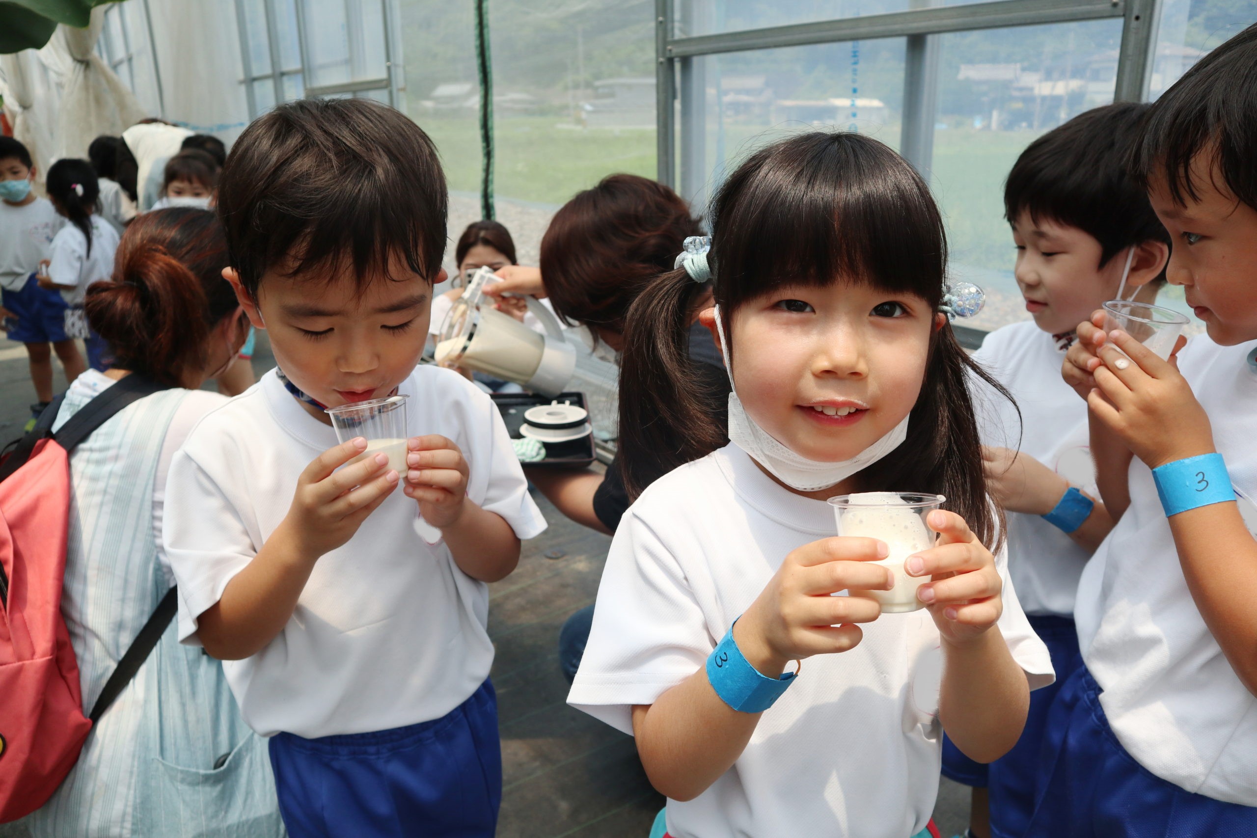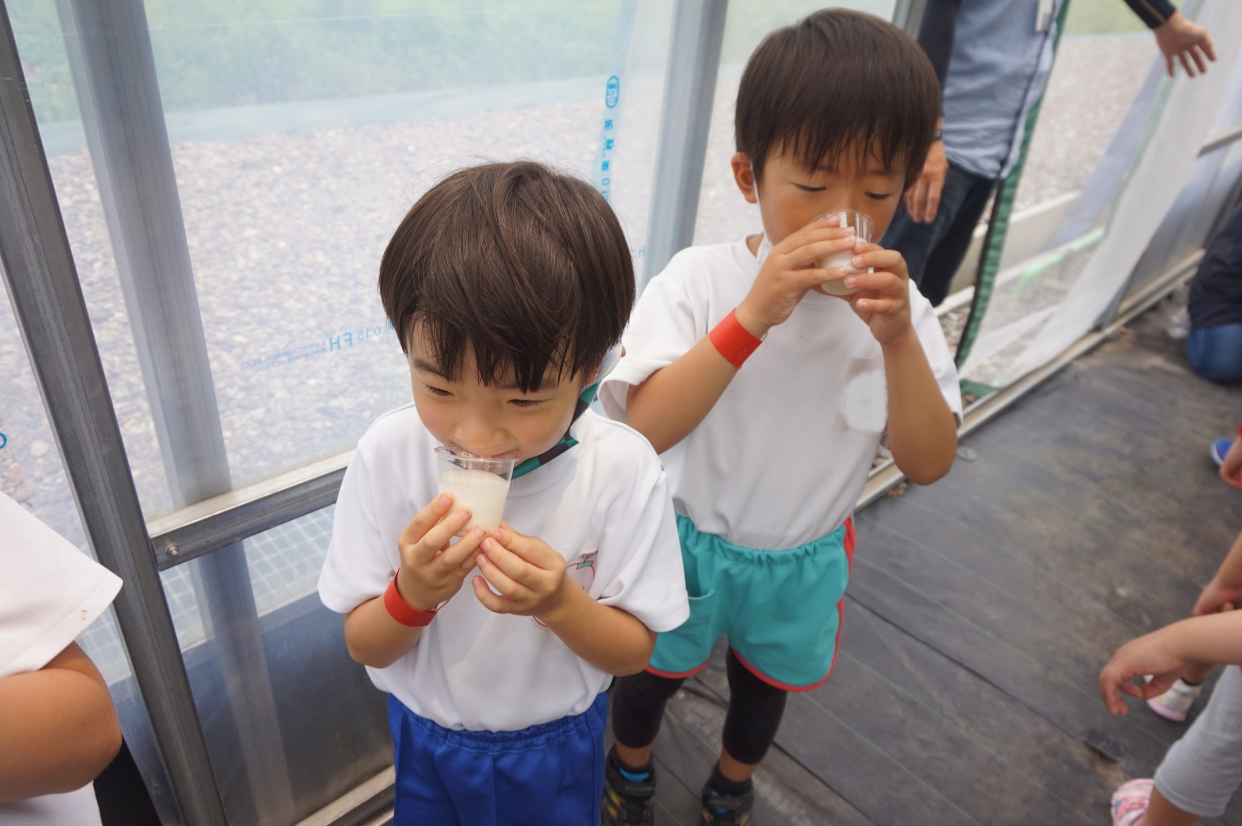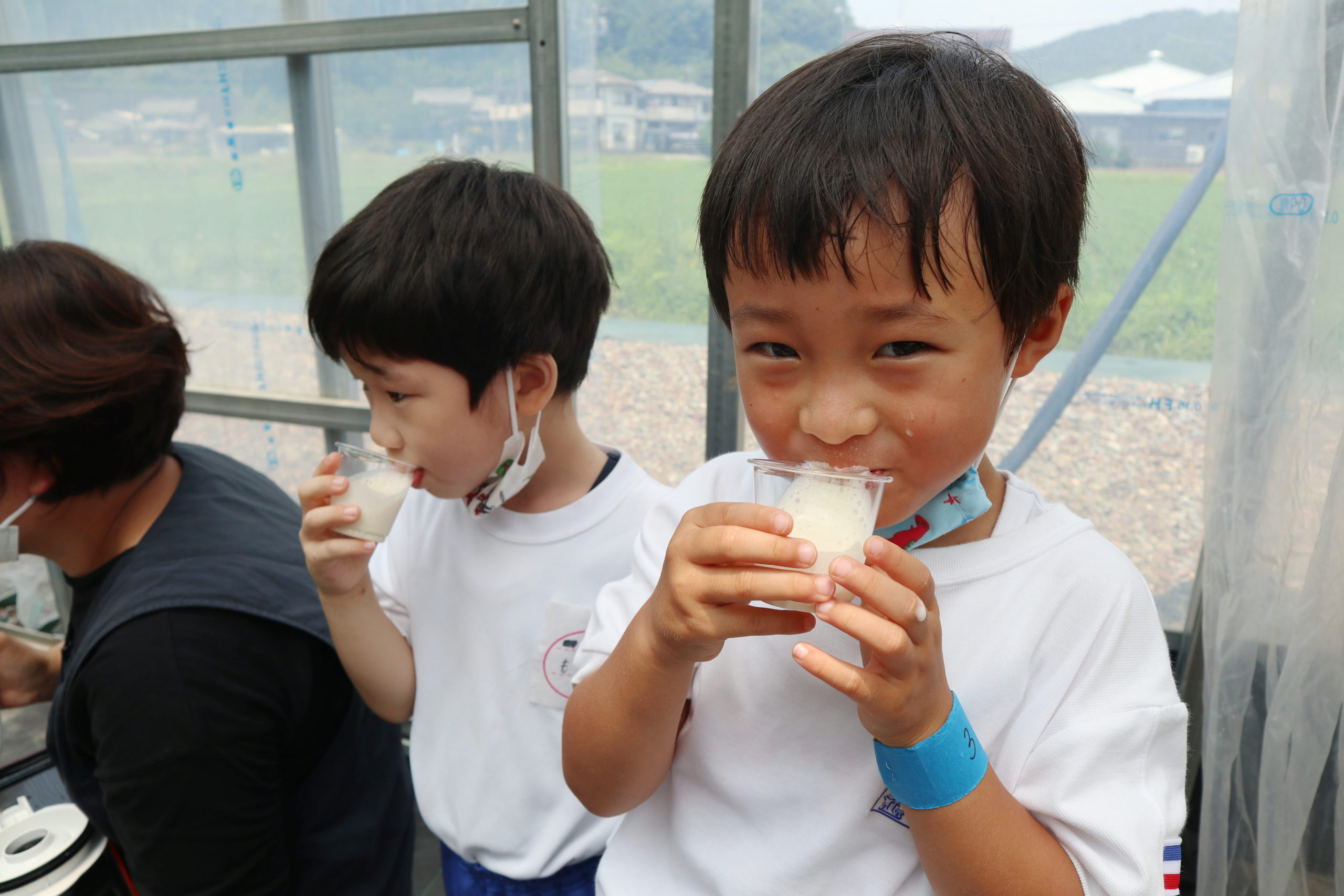 お口に付いたバナナジュースをペロリ!Yummy!「ももみたいな味がするよ!」毎日バナナジュースを飲んでいるよというおともだちも「このジュースお家で飲むのよりおいしい!味が違う!!」と大絶賛でした。「クリームみたい!あまくておいしい!」バナナミルクのおひげが似合ってるね。「おいしかった!もっと飲みたいな」となかなか空のコップを手放せないでいる子もいました。