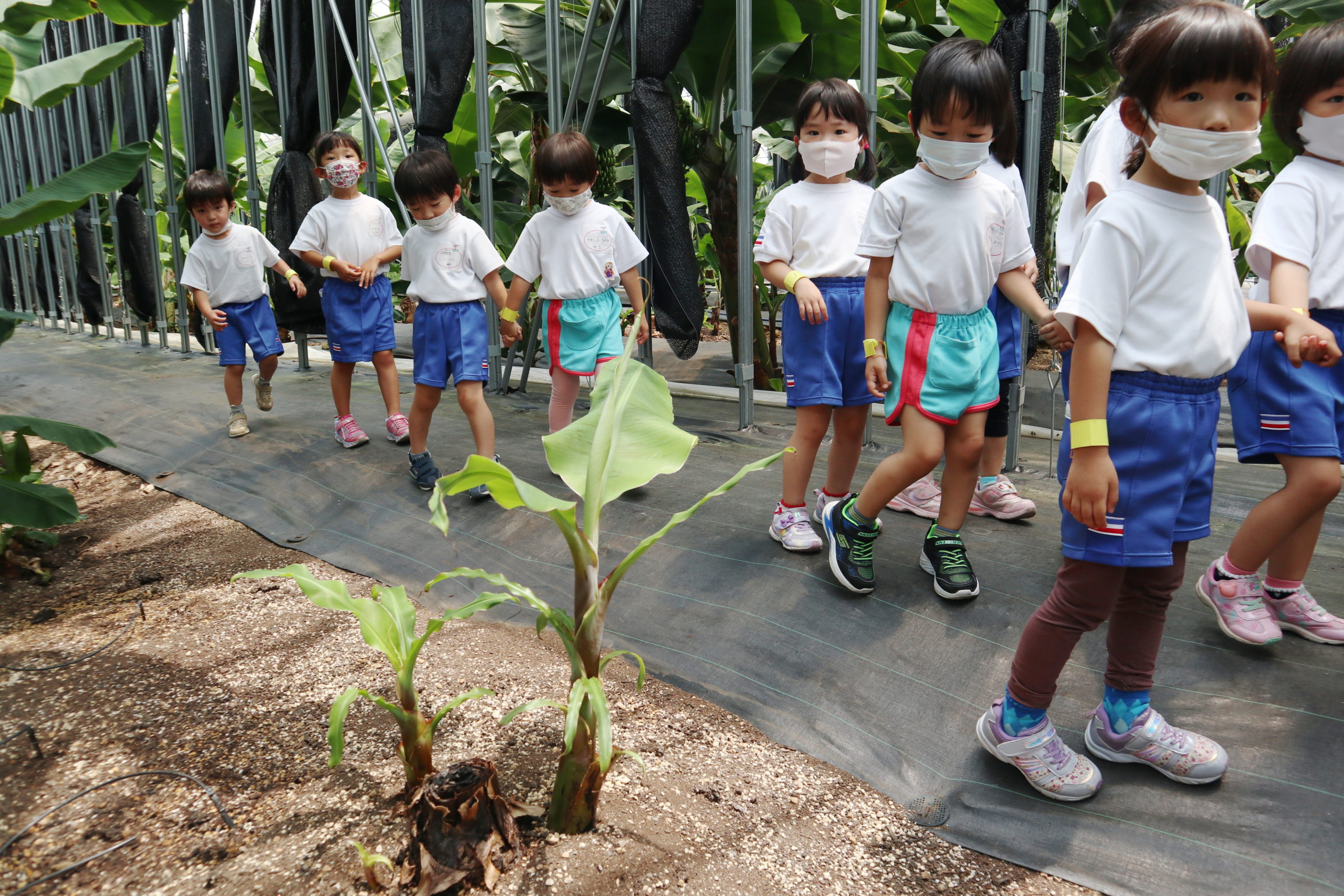 おねえさんに改めて「ありがとうございました。」とご挨拶して、今度は実際にバナナがどのようにしてなっているのか見に行ってみよう!!