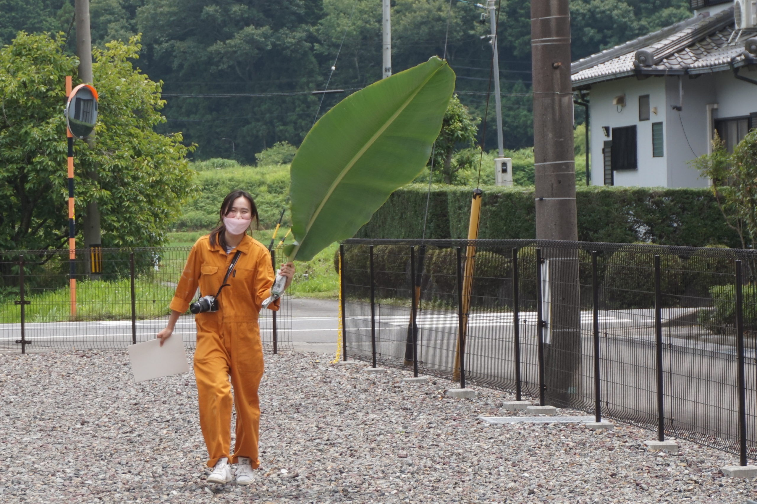 👆あやか先生が嬉しそうにポーズを決めて持っているのはお土産にいただいたバナナの葉っぱです👇