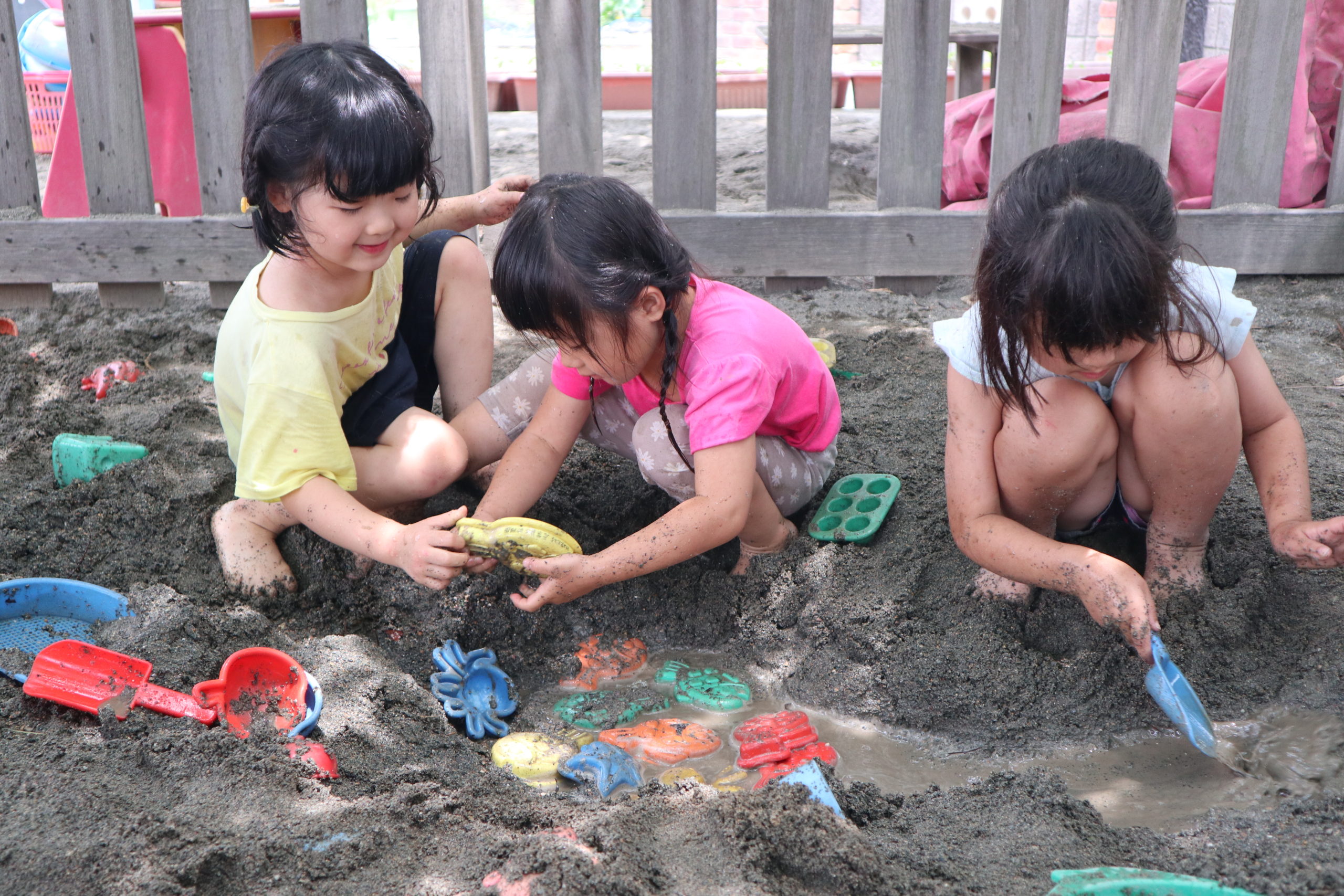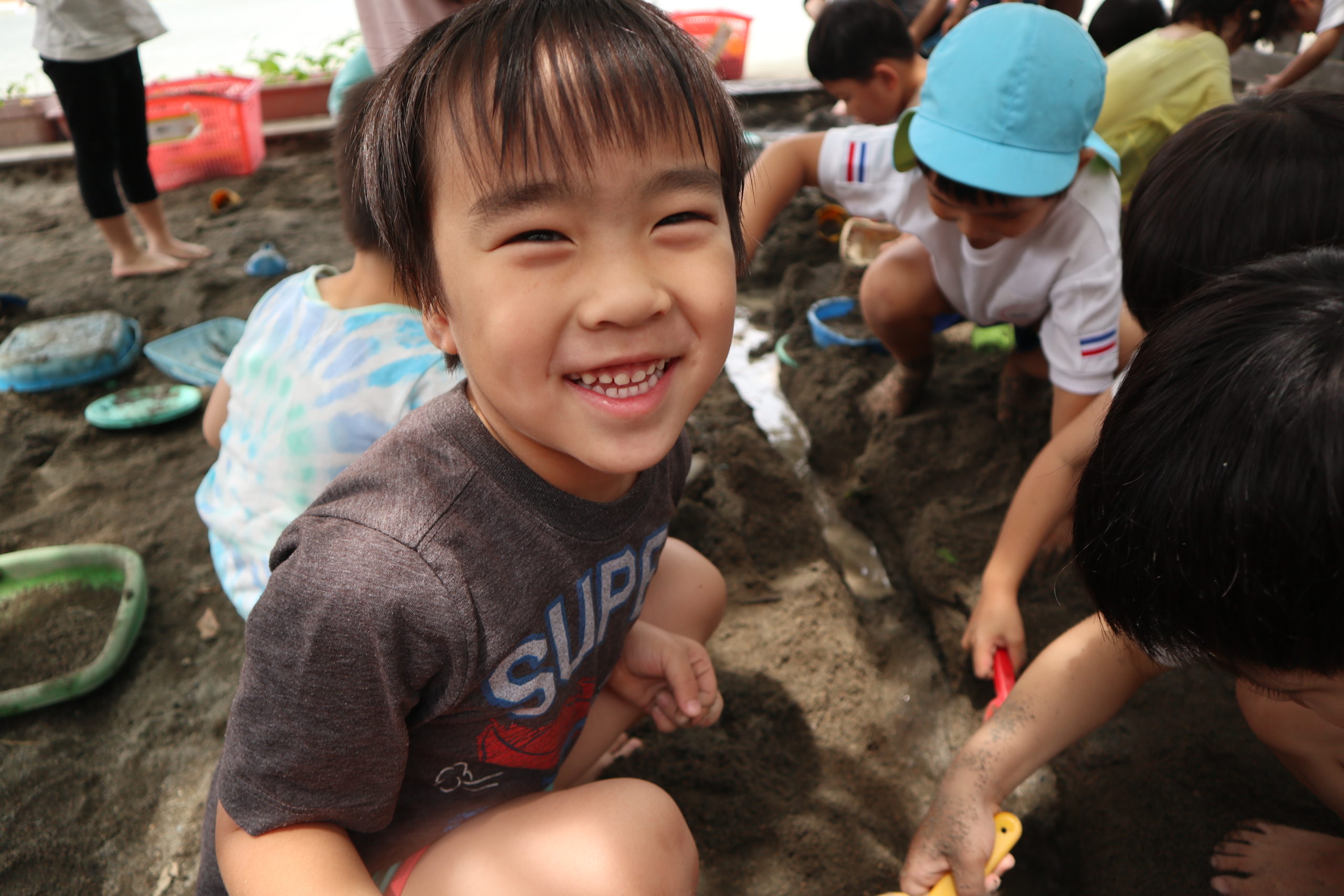 掘った砂は型に入れたり、お山にしたり。みんな夢中で遊んでいたね。