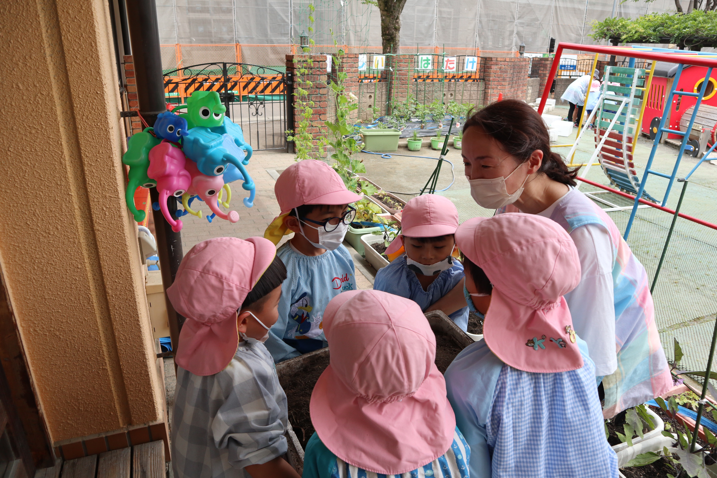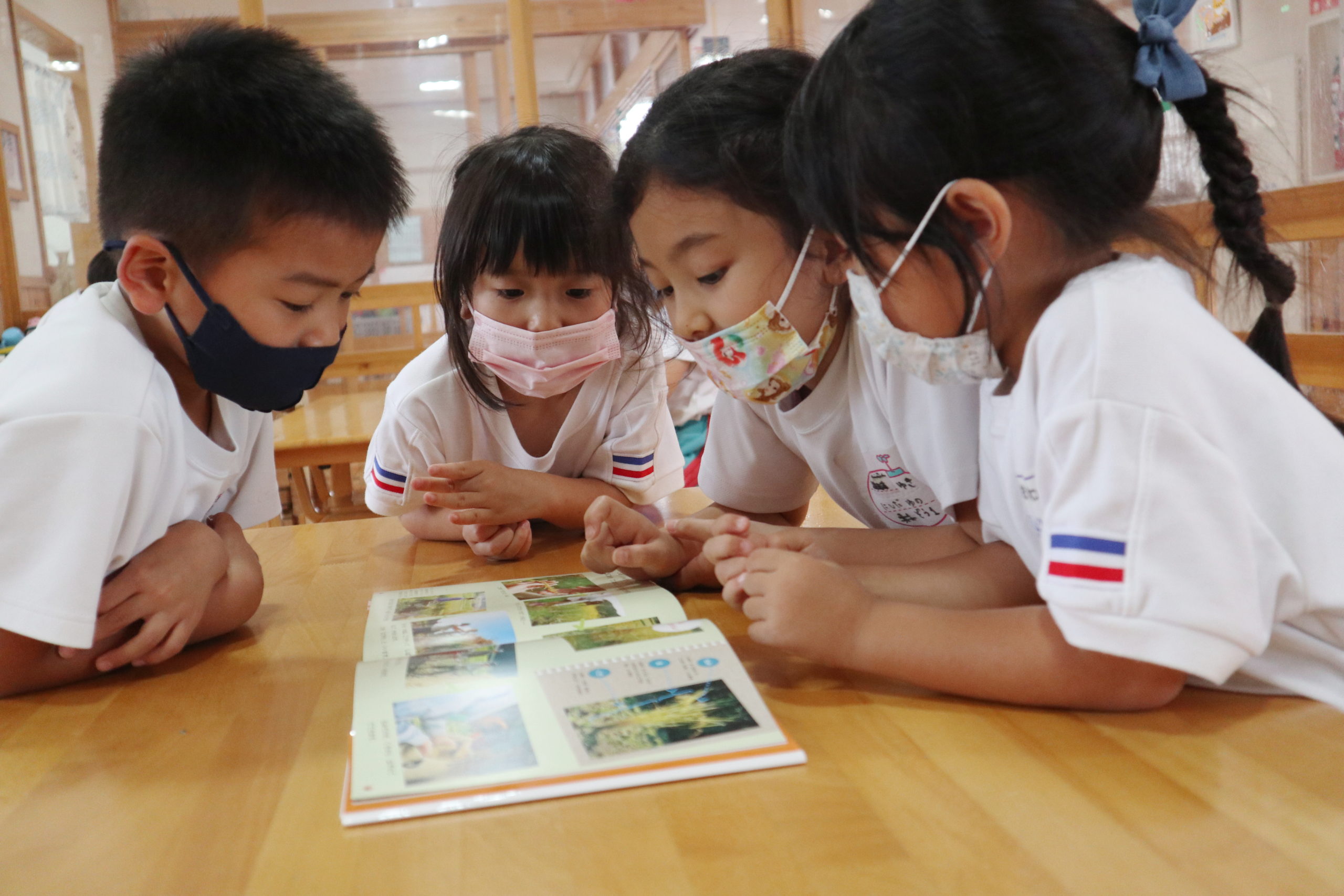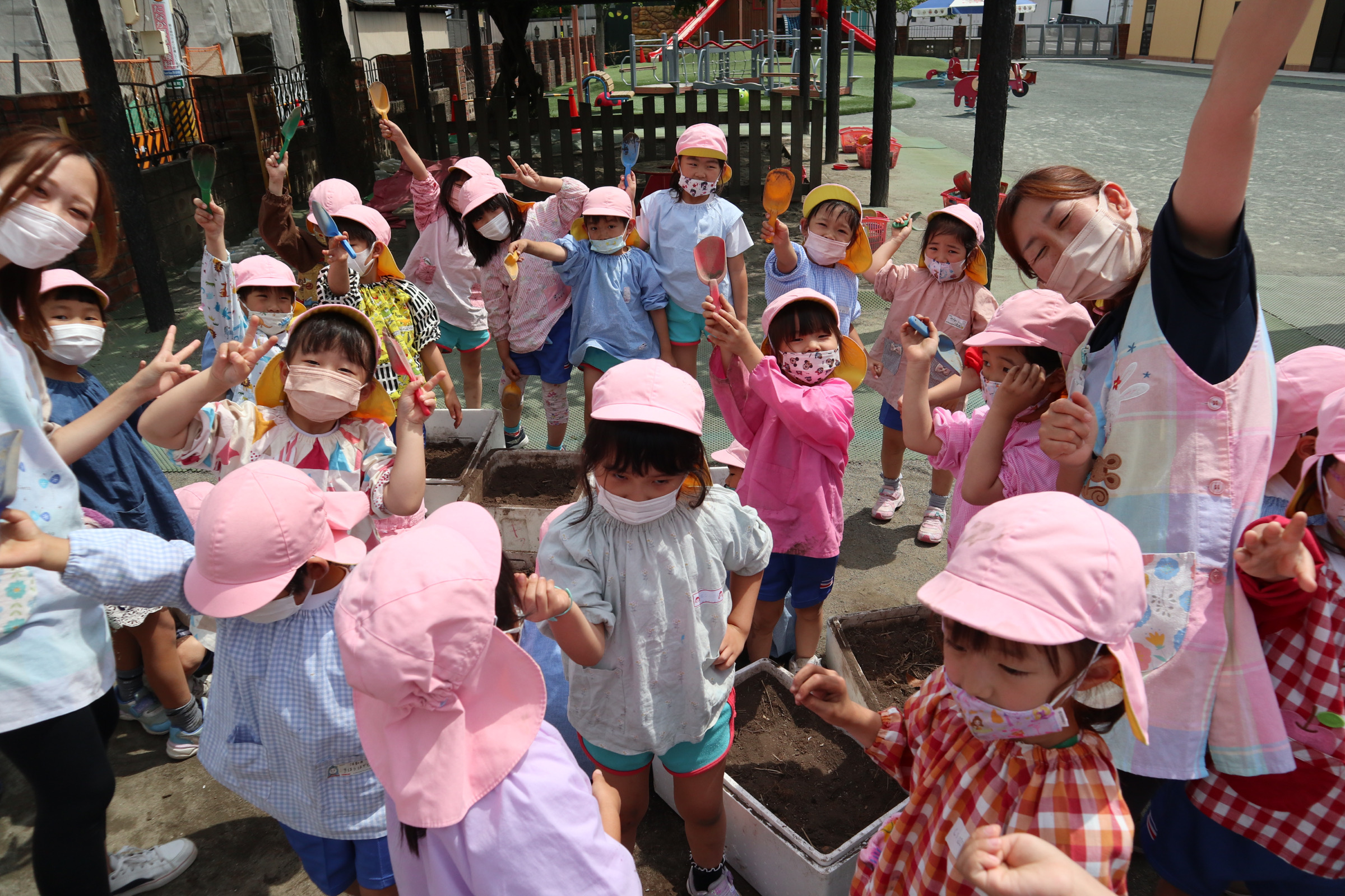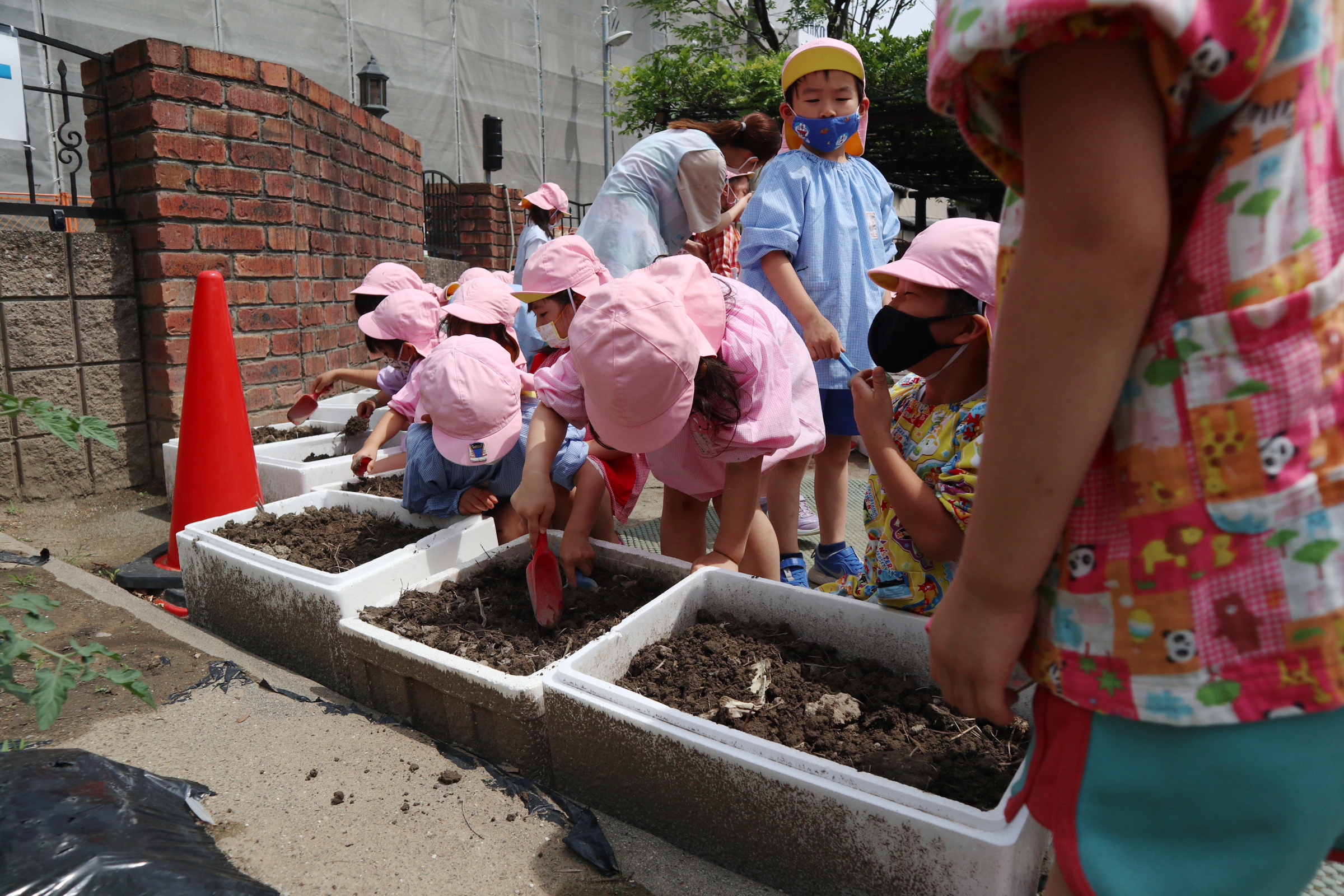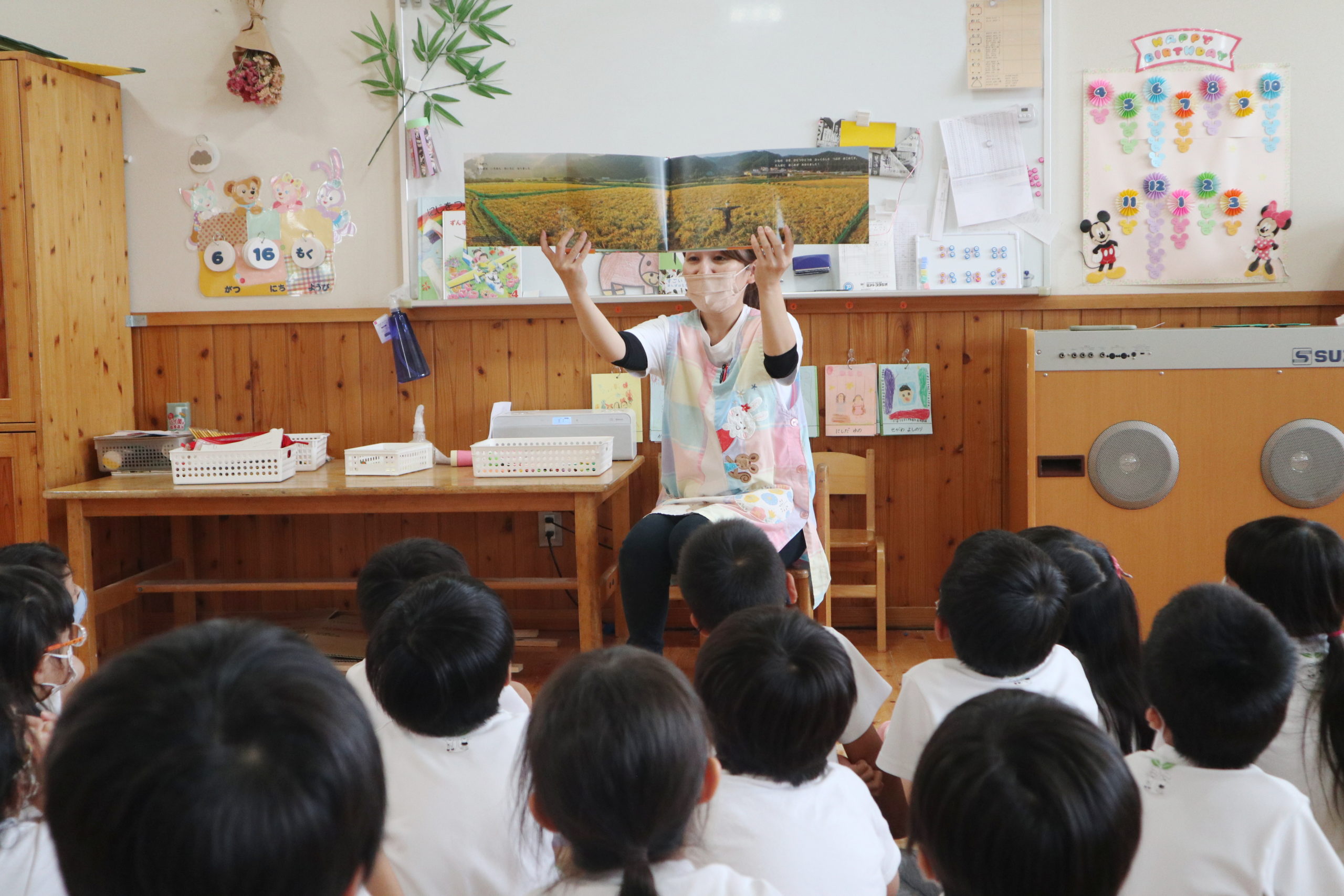 年長組のこどもたちがお米作りの絵本を読んだり、土づくりをして田植えに向けて準備しました。