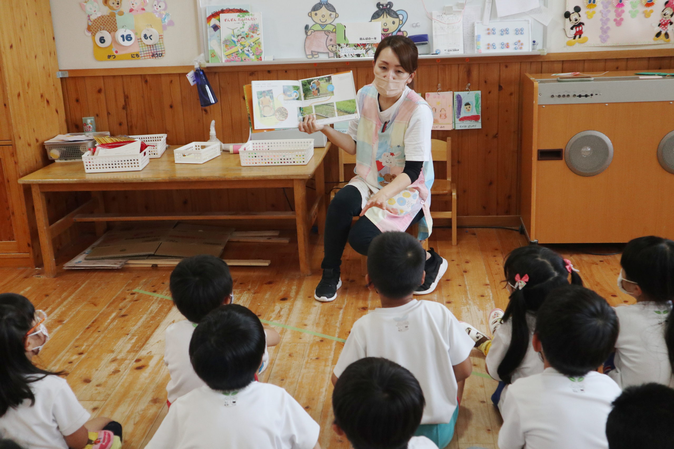 興味津々に話に耳を傾けるゆき組のこどもたち。