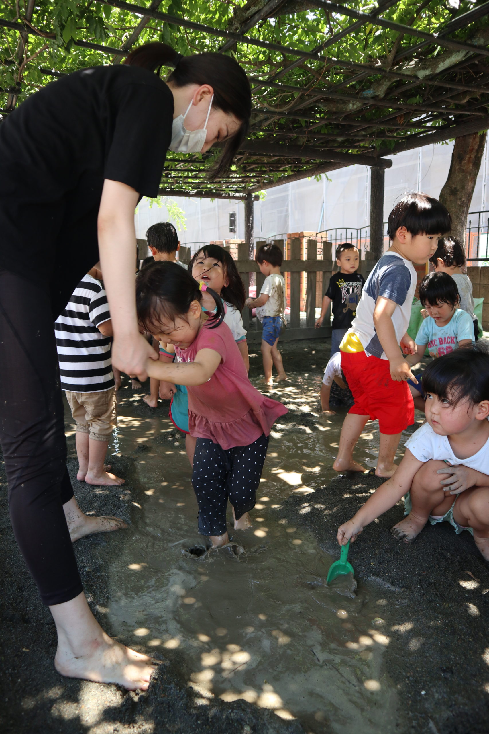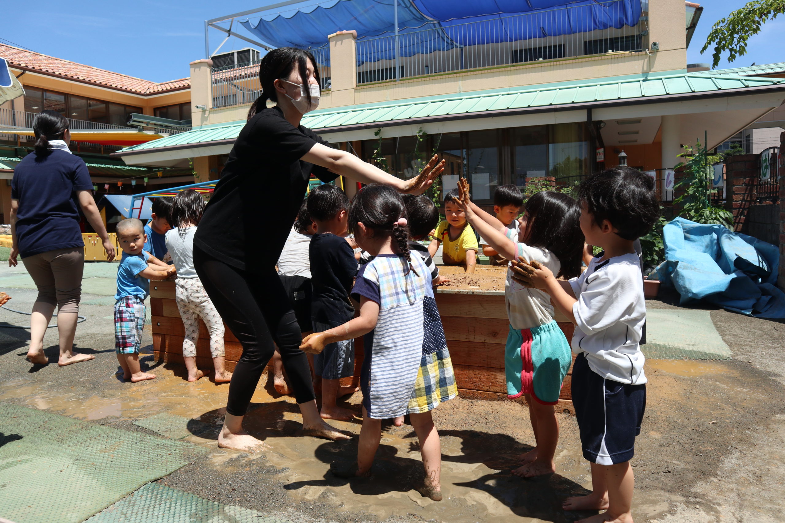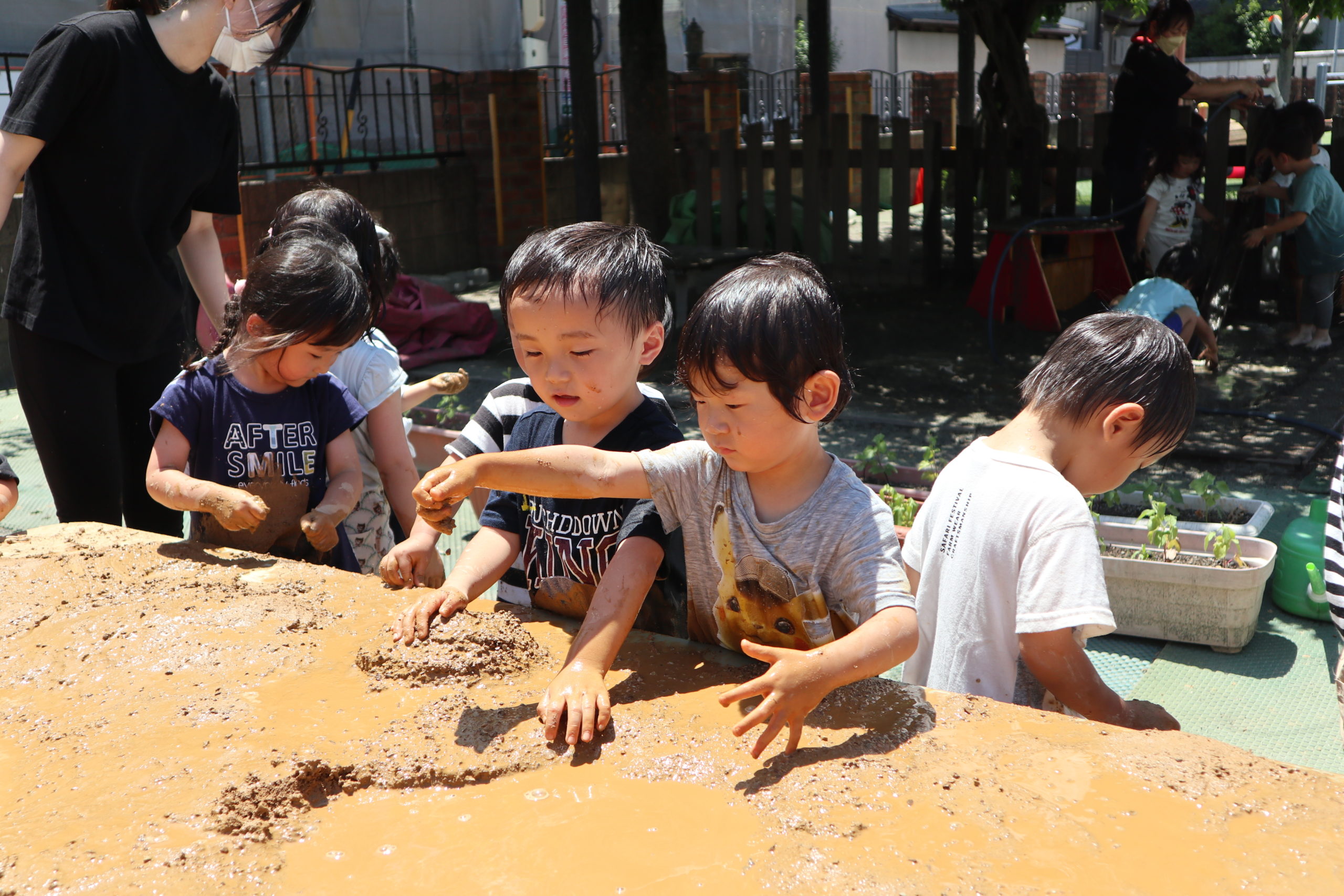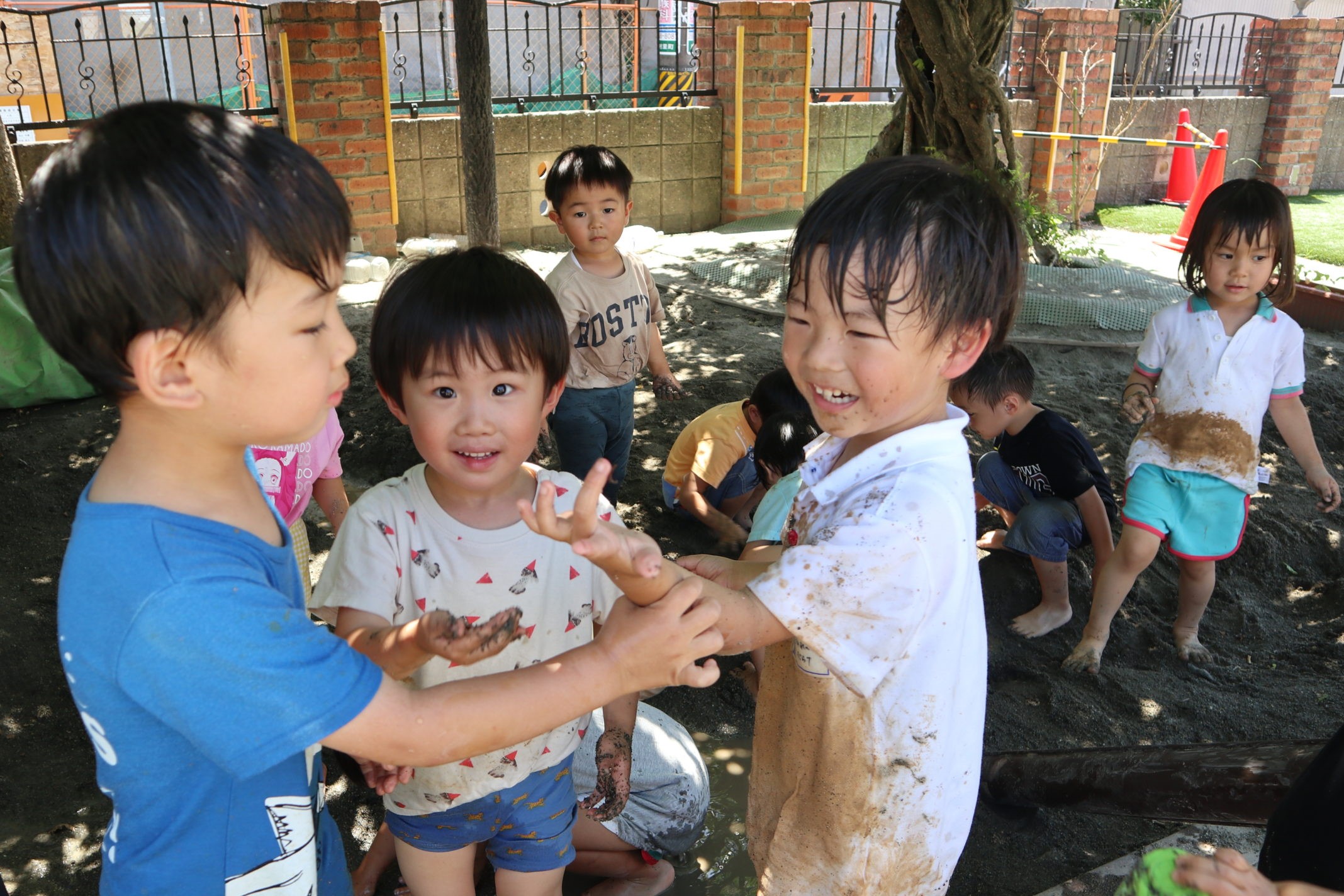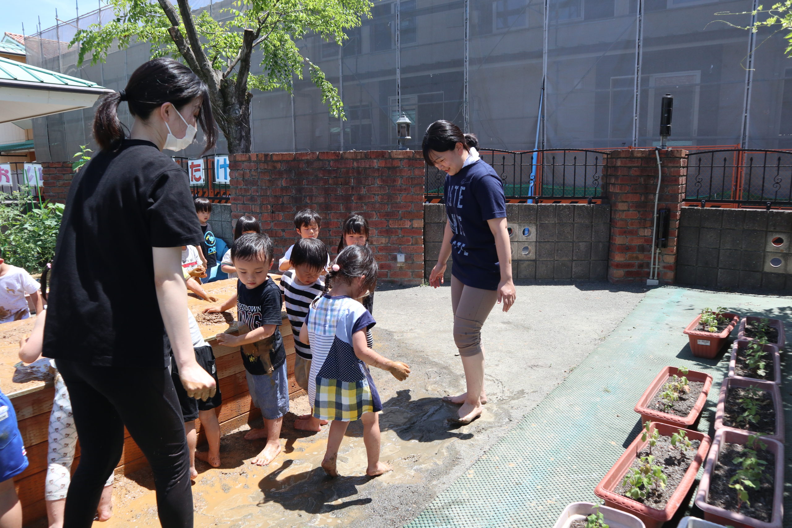 「せんせい、おてて見て!」「どろんこのおてて、せんせいと一緒だね!」