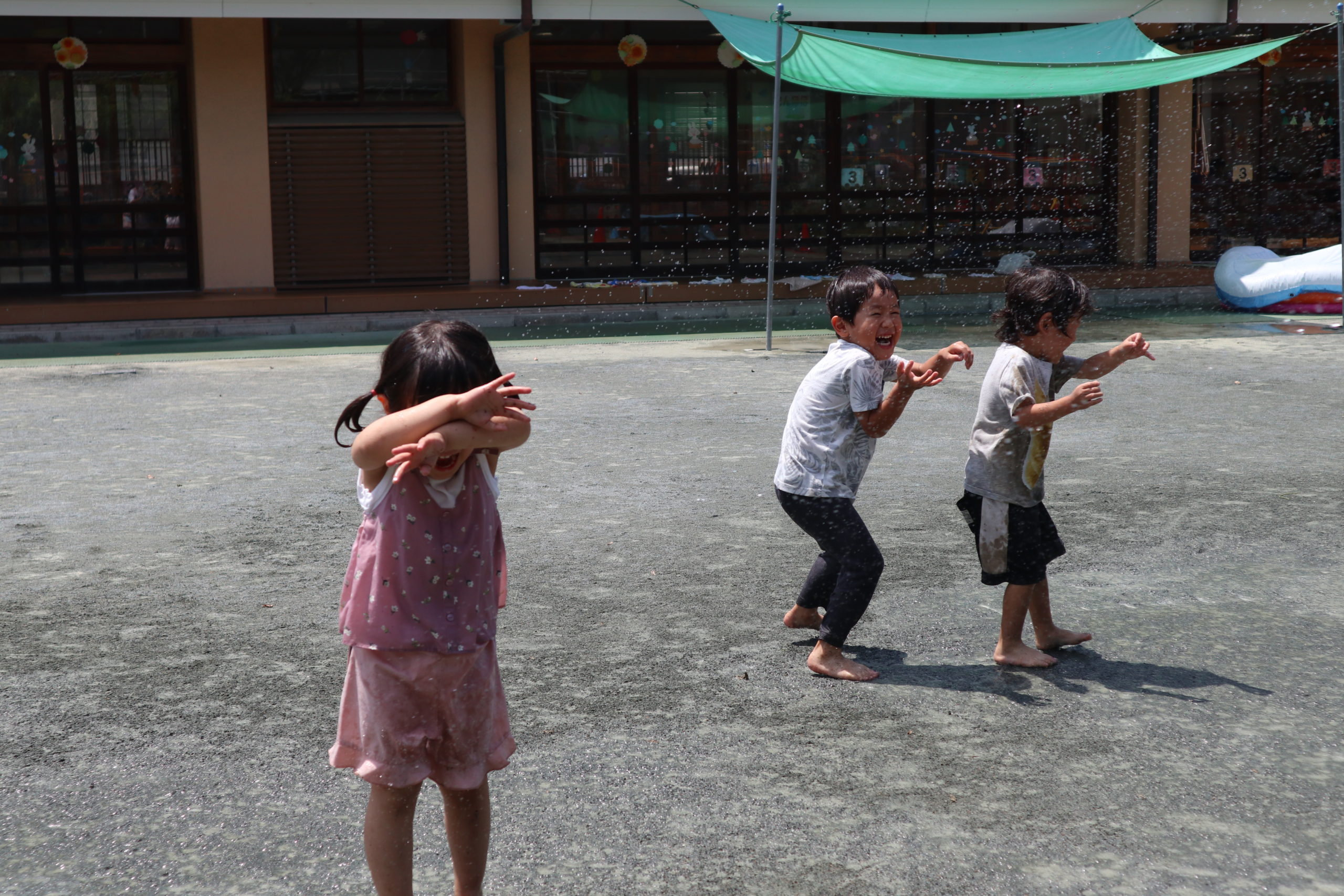 「ウォータースライダーみたい。」お水がどんどん流れていくよ。お家の人とプールに行った経験と繋げてお話してくれたね。