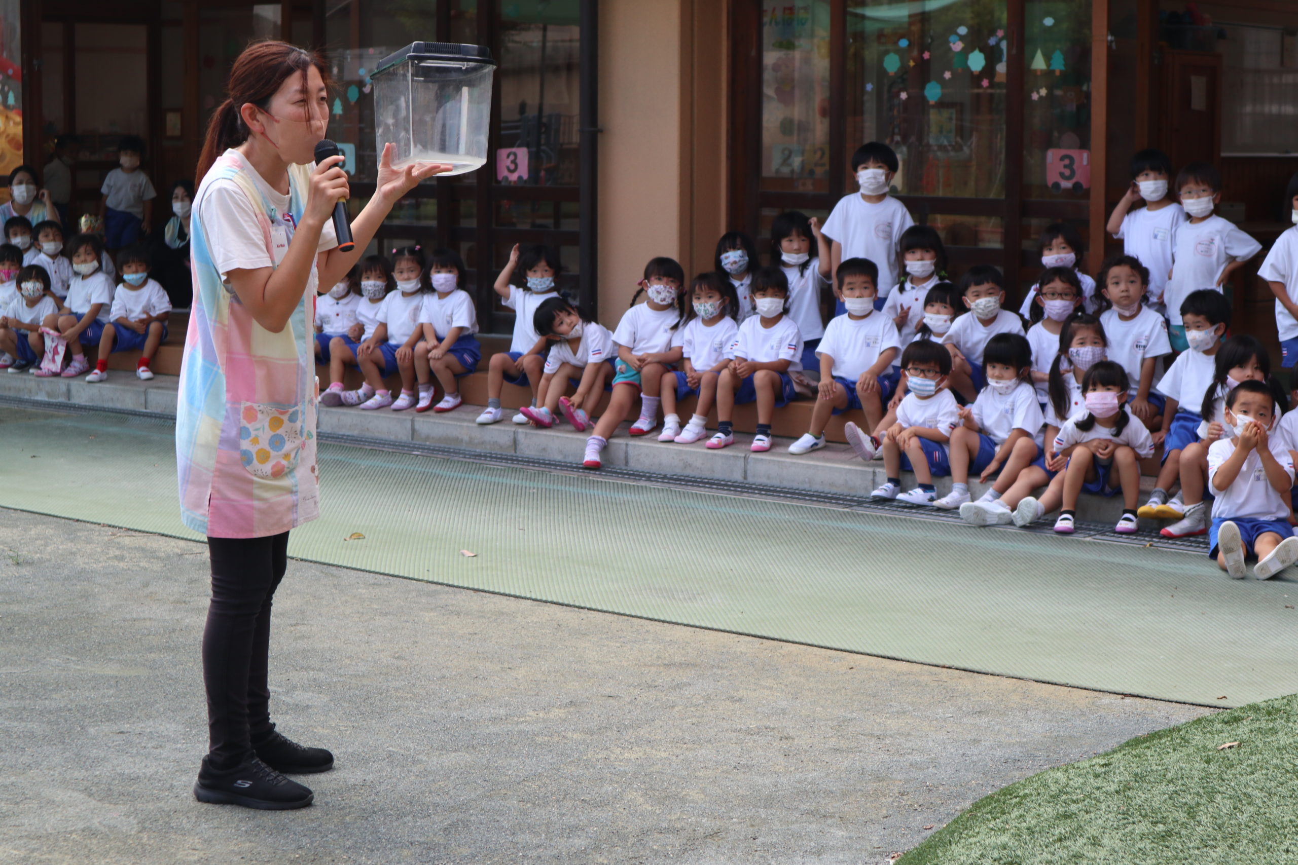 「これからオニヤンマをお空に逃がすので、みんな見に来てください。」と放送すると・・・
