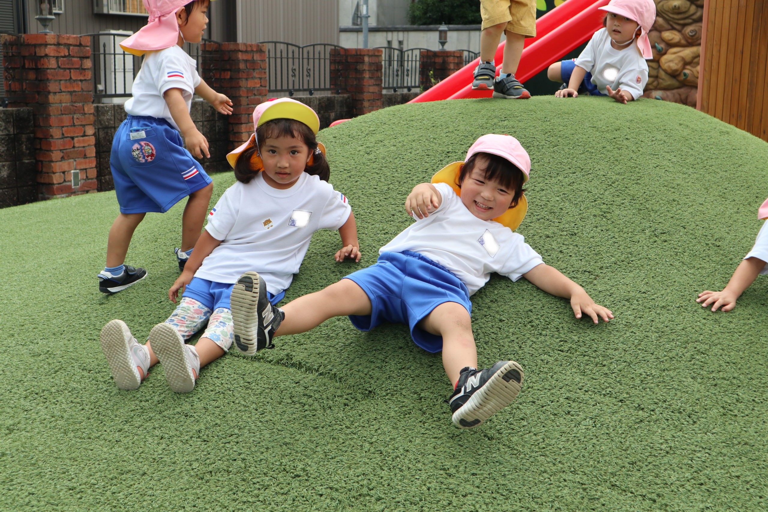 お山を登っては、おしりですべったり、ころころ転がってとっても楽しいね。