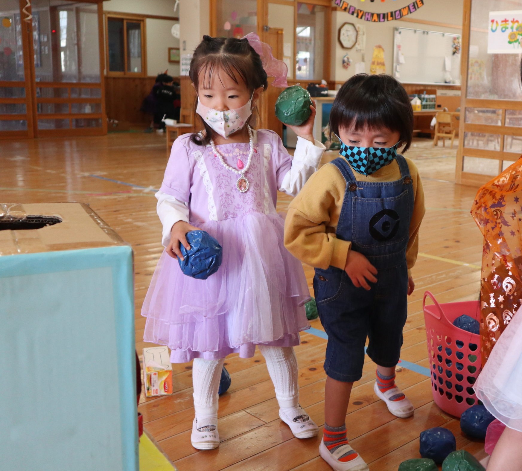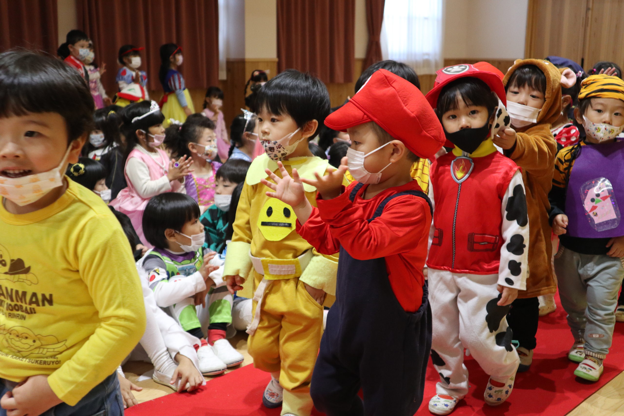 初めてハロウィンパーティーを経験するちゅうりっぷさんです。とってもかわいいですね。おにいちゃんおねえちゃんにかわいい姿を見てもらえてうれしかったね。