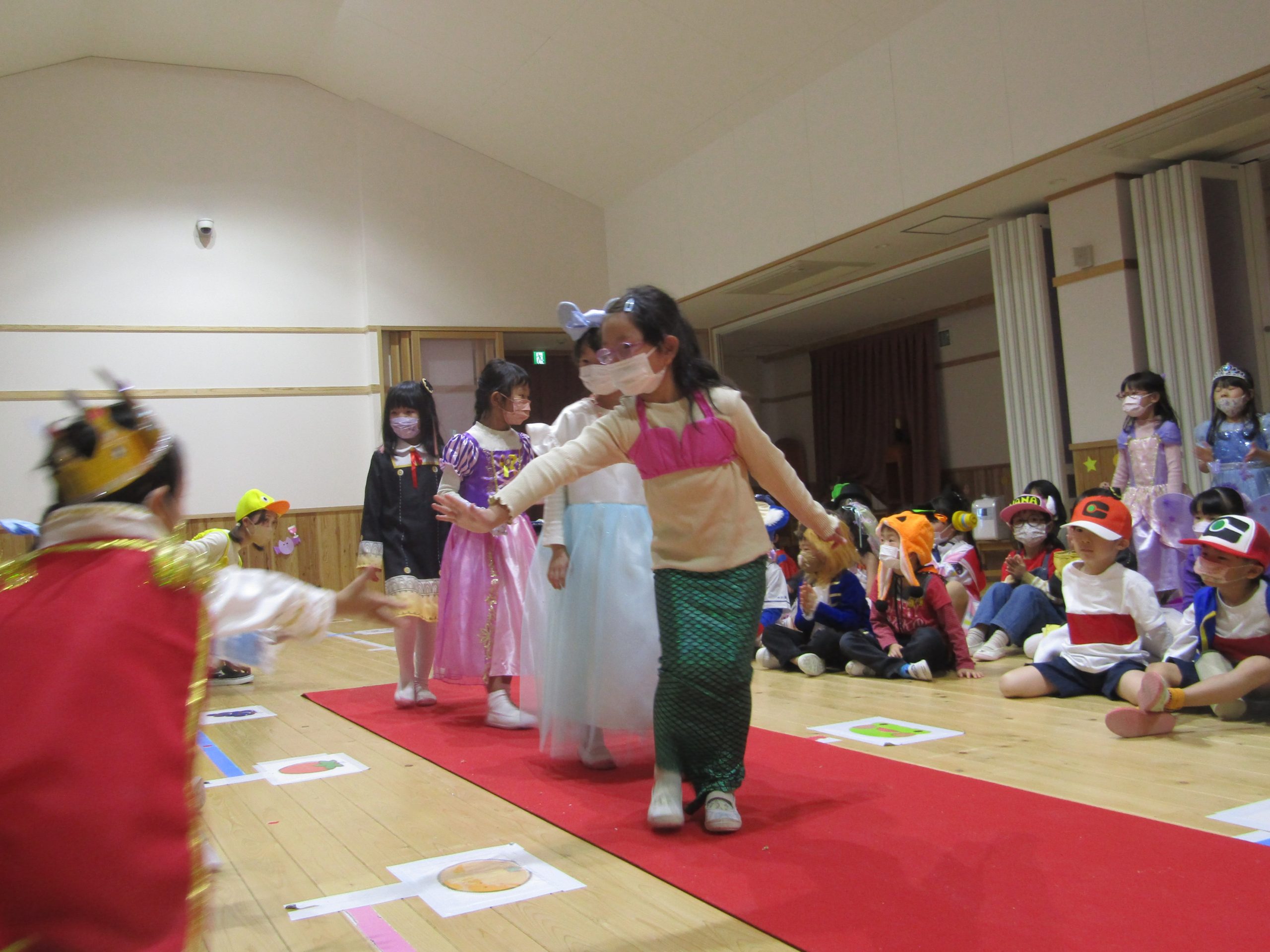 ホールではレッドカーペットのランウェイを歩いてファッションショーをしました。ちょっぴり恥ずかしそうな子もいれば・・・