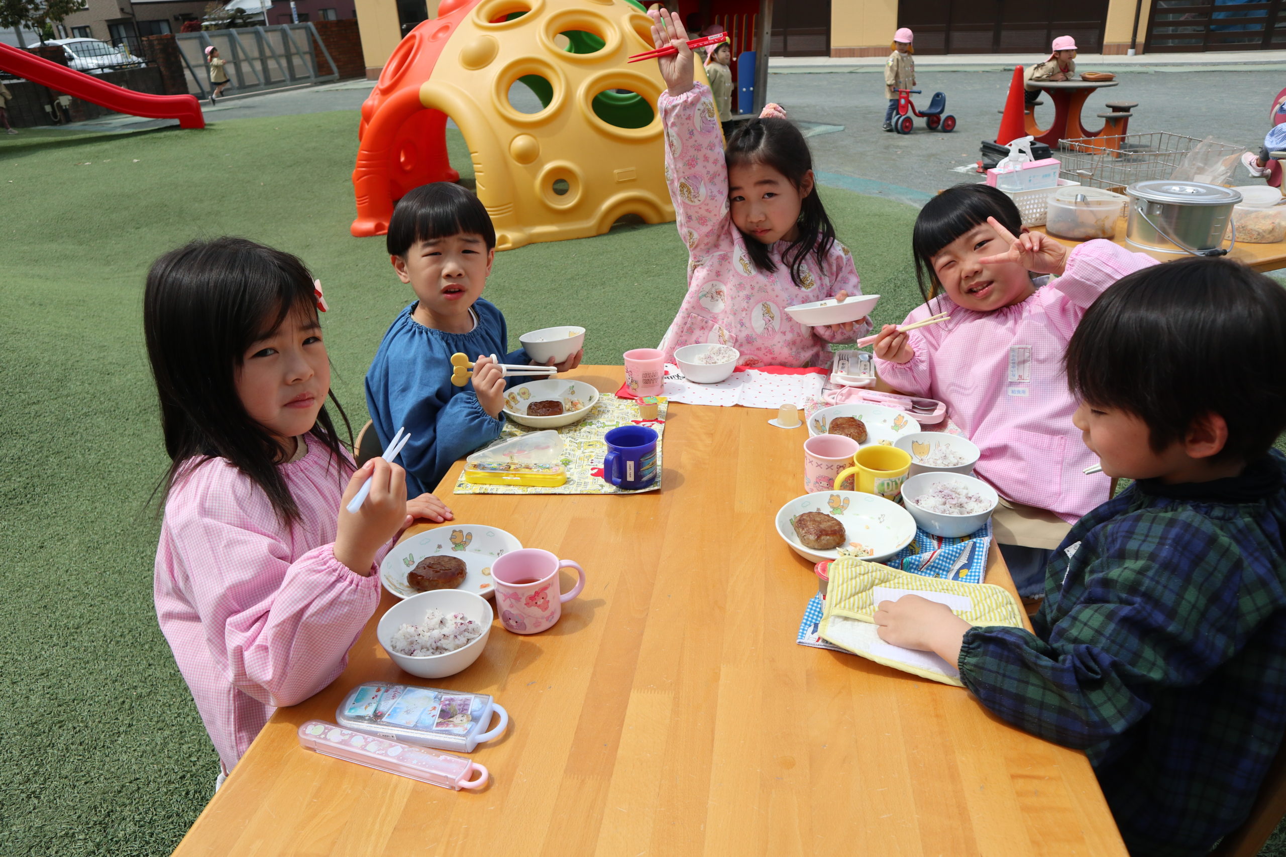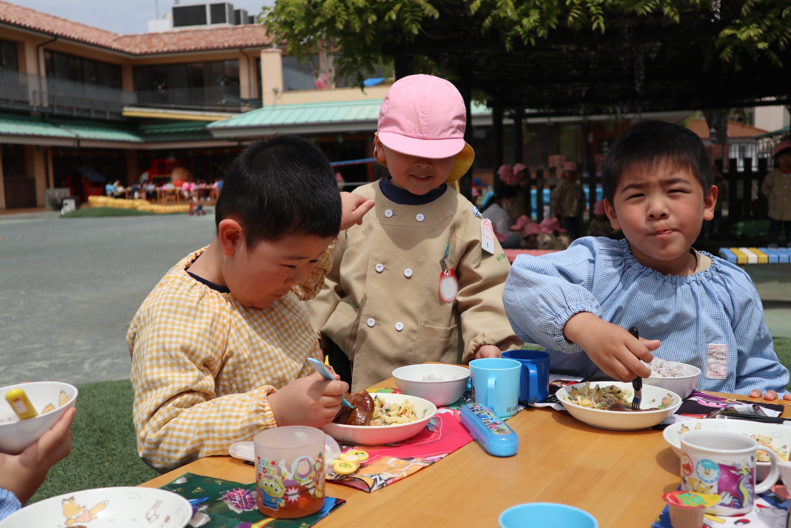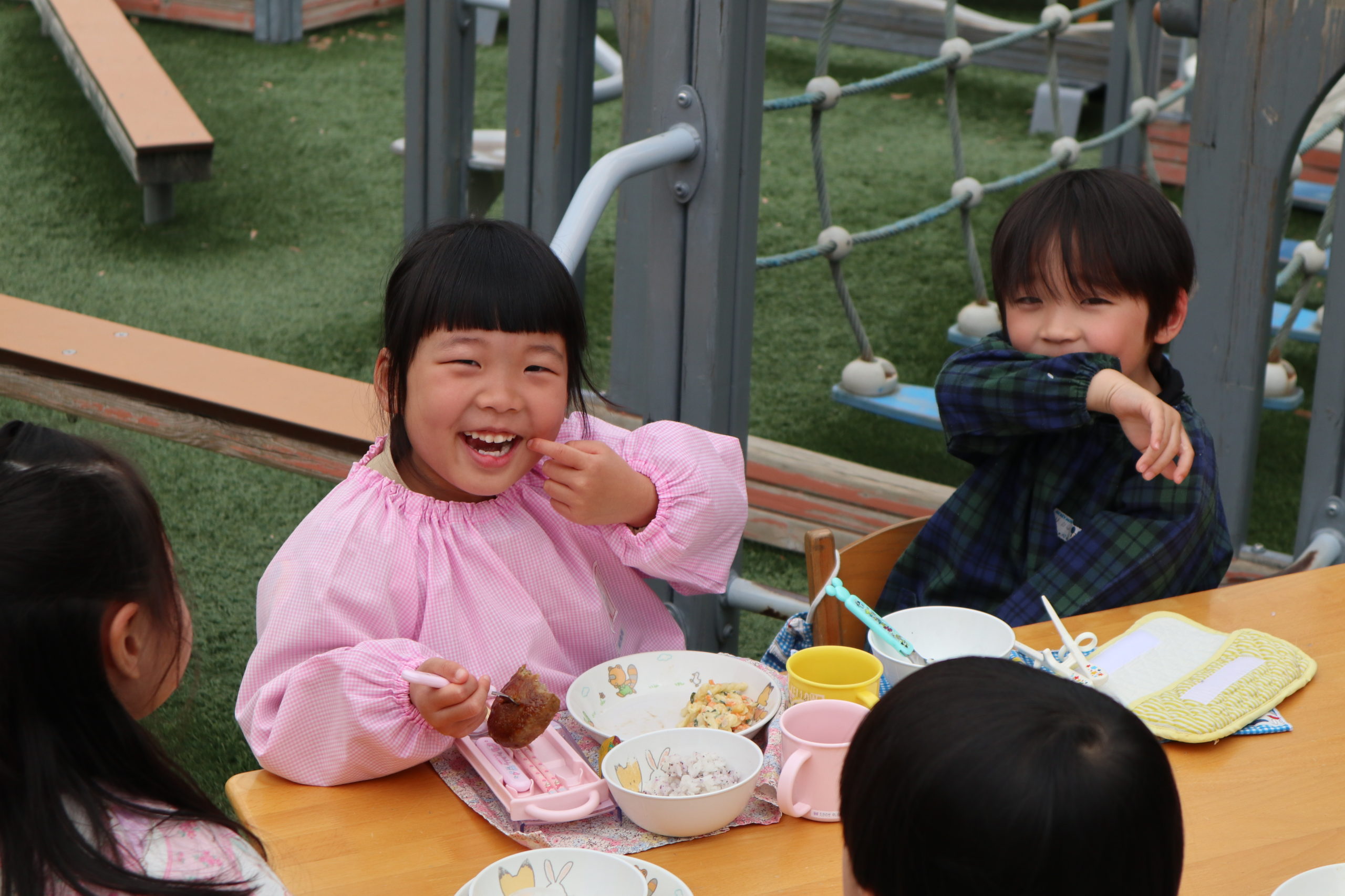 いただきます!みんなと外でランチ、うれしいね!