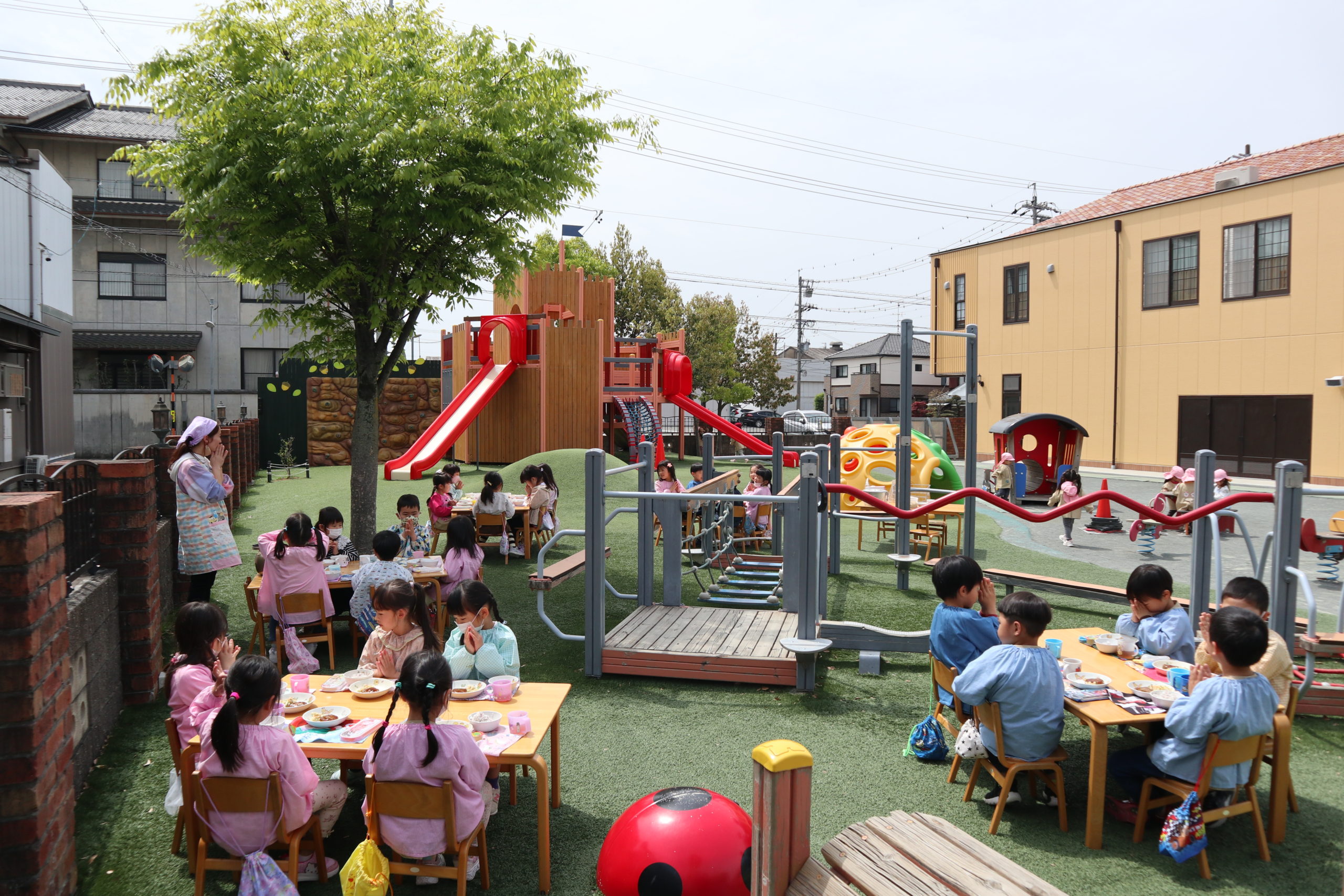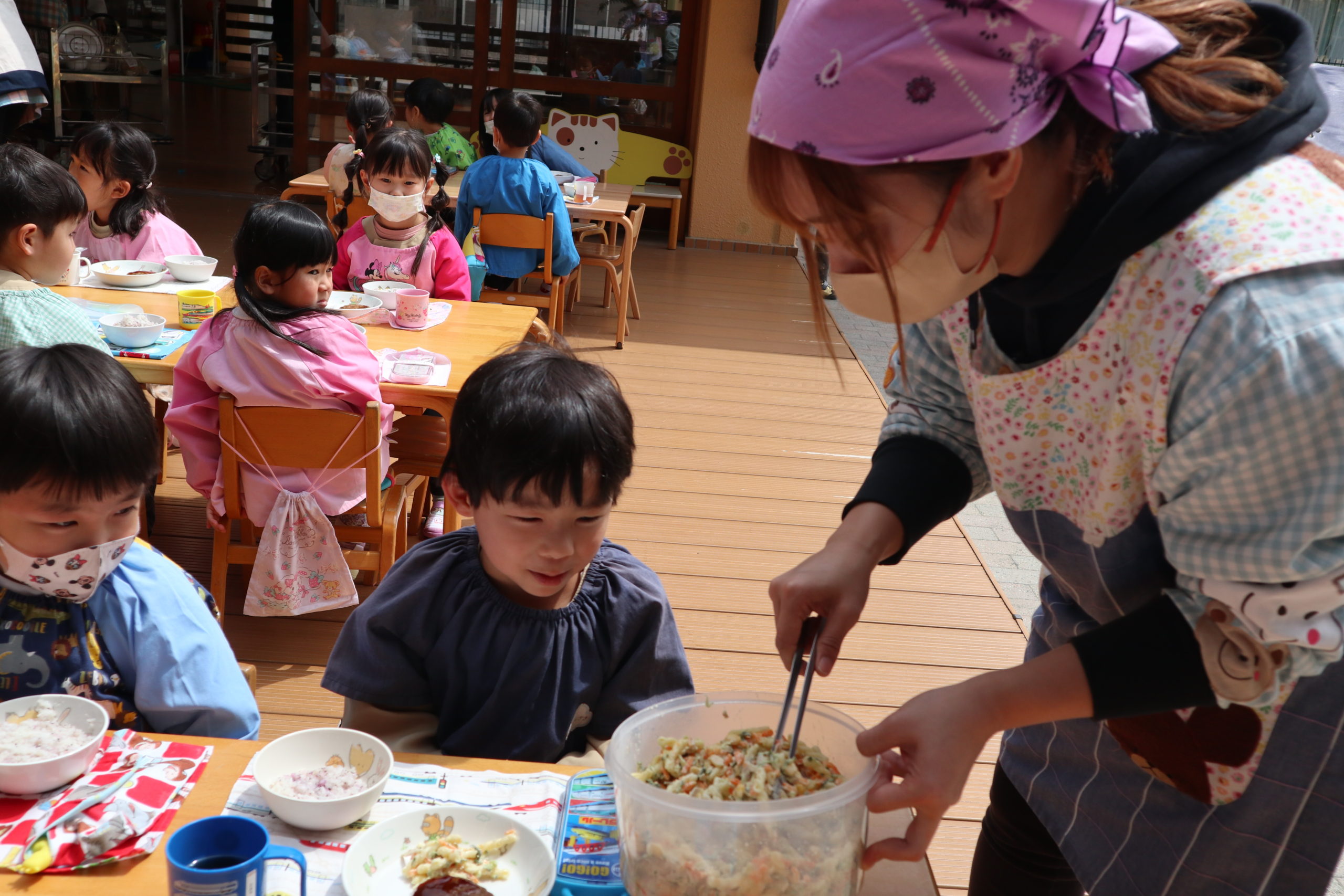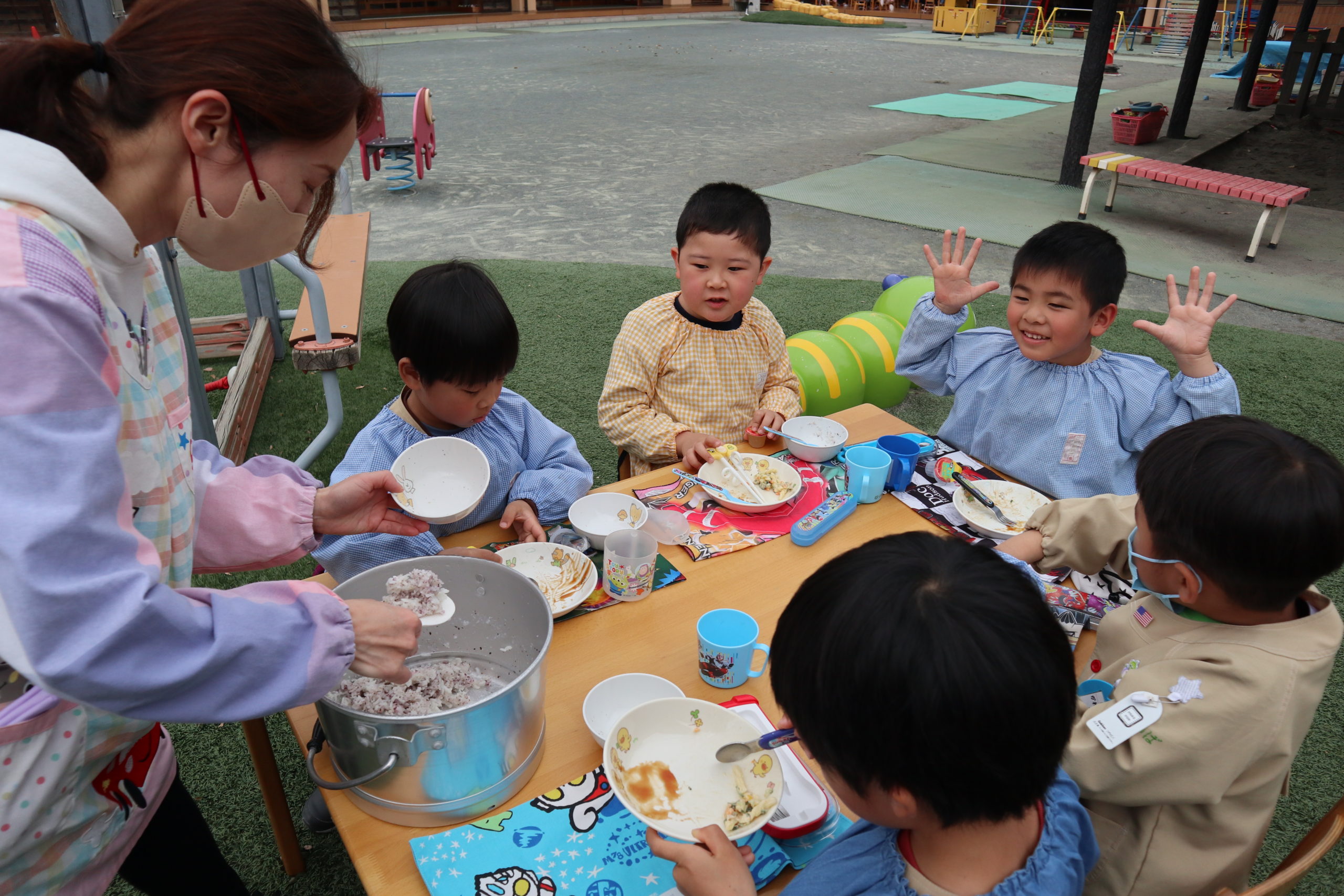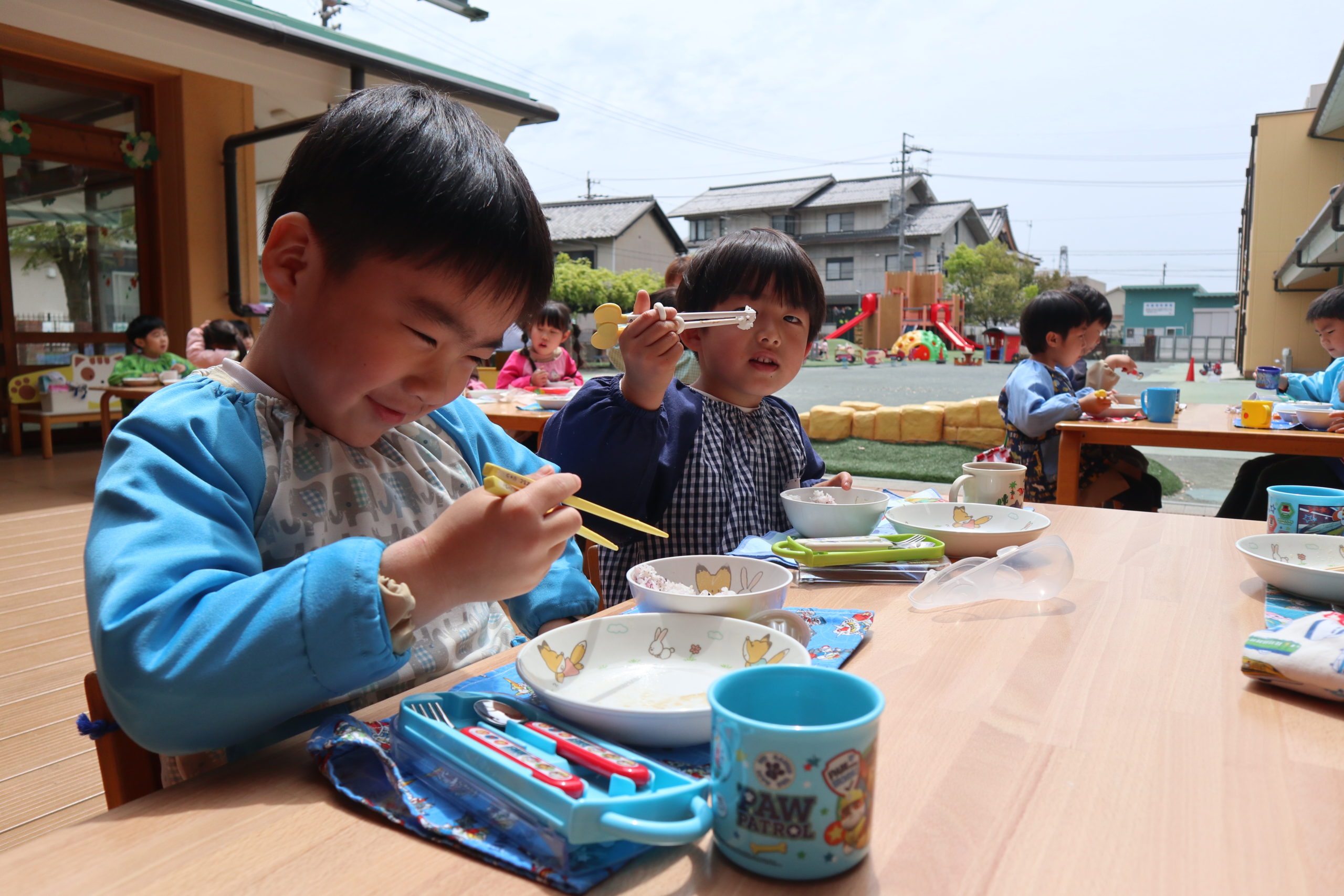 いただきます!みんなと外でランチ、うれしいね!