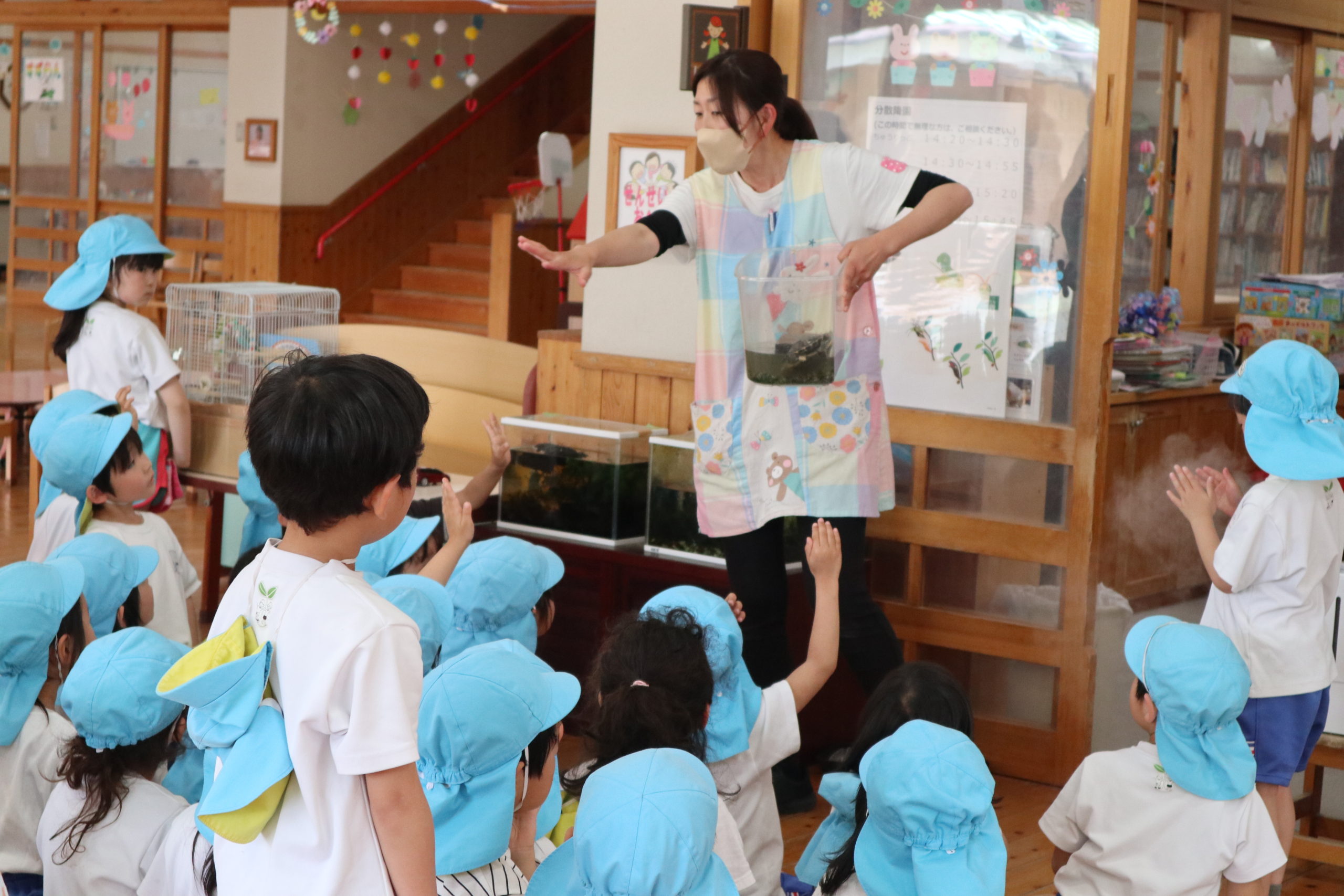 生き物と触れ合って、優しい心、いのちを大切にする心がはぐくまれています。