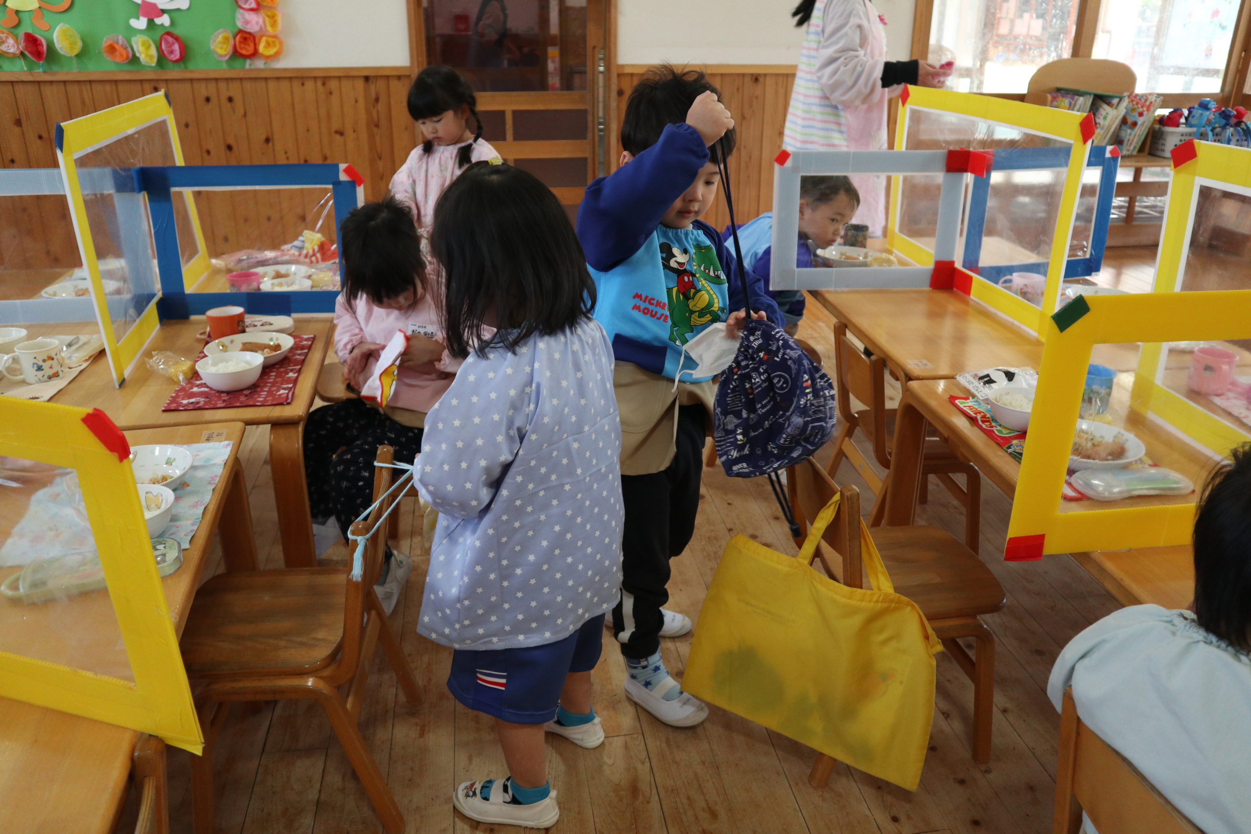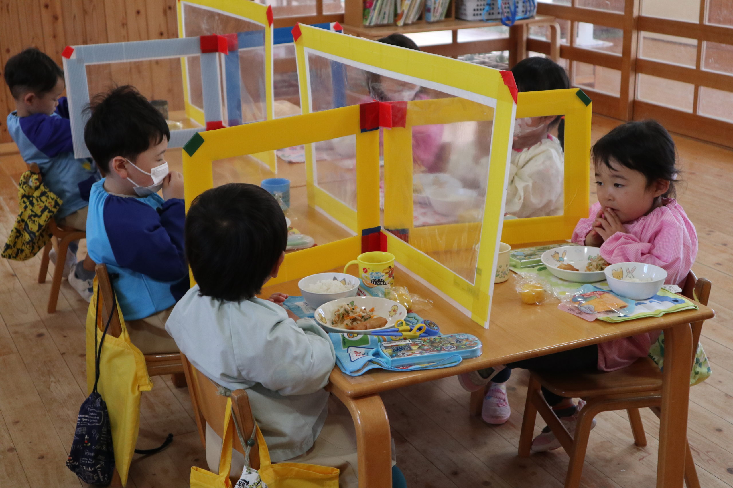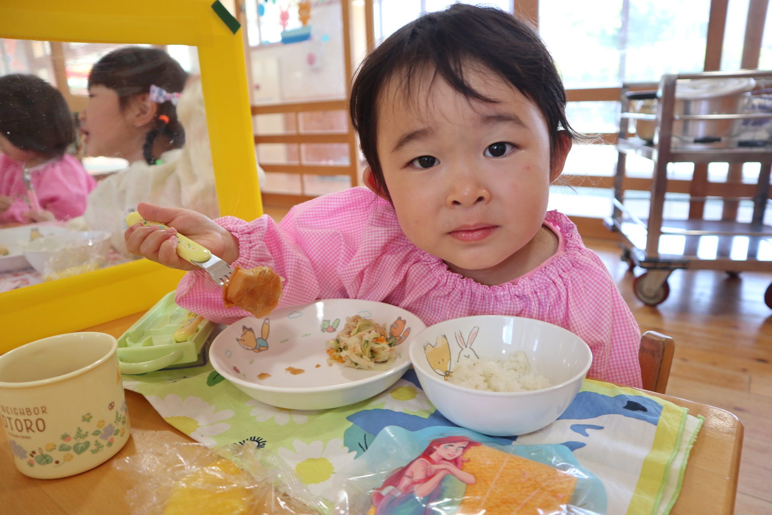 ゆり組さんからランチタイムの様子をお届けします。入園してから3週間経ちました。