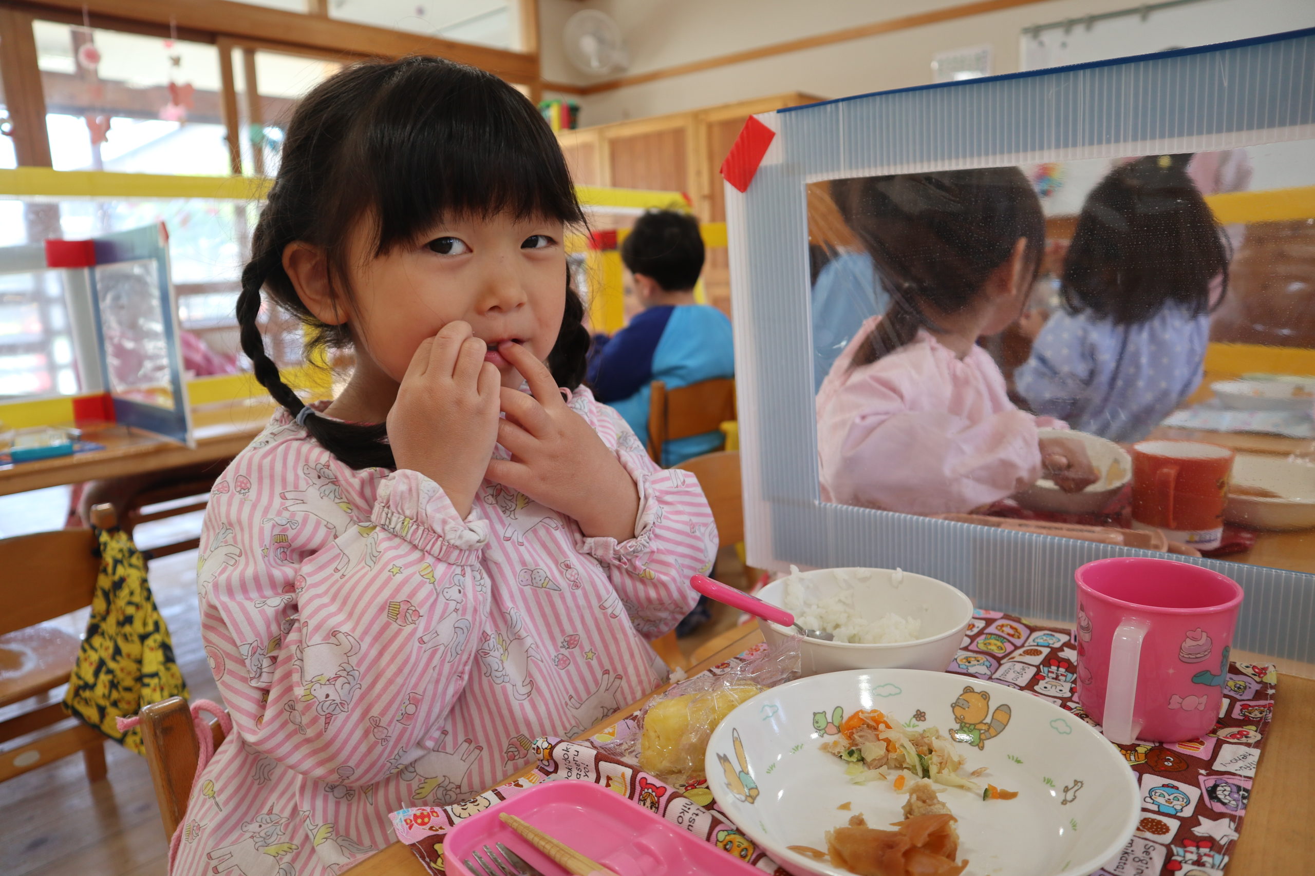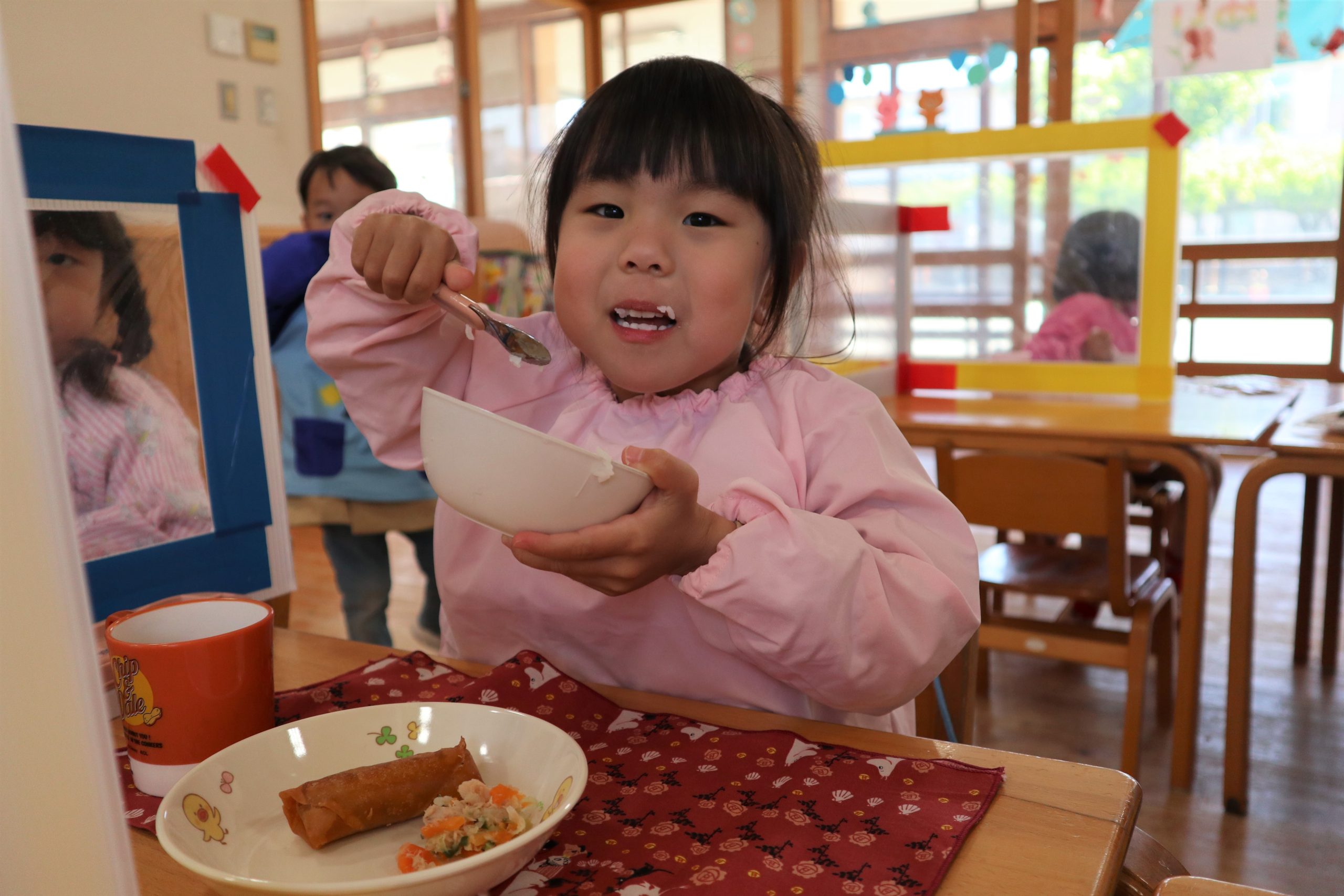 配膳が終わると「先生ありがとう!」と言ってくれるゆり組さん。