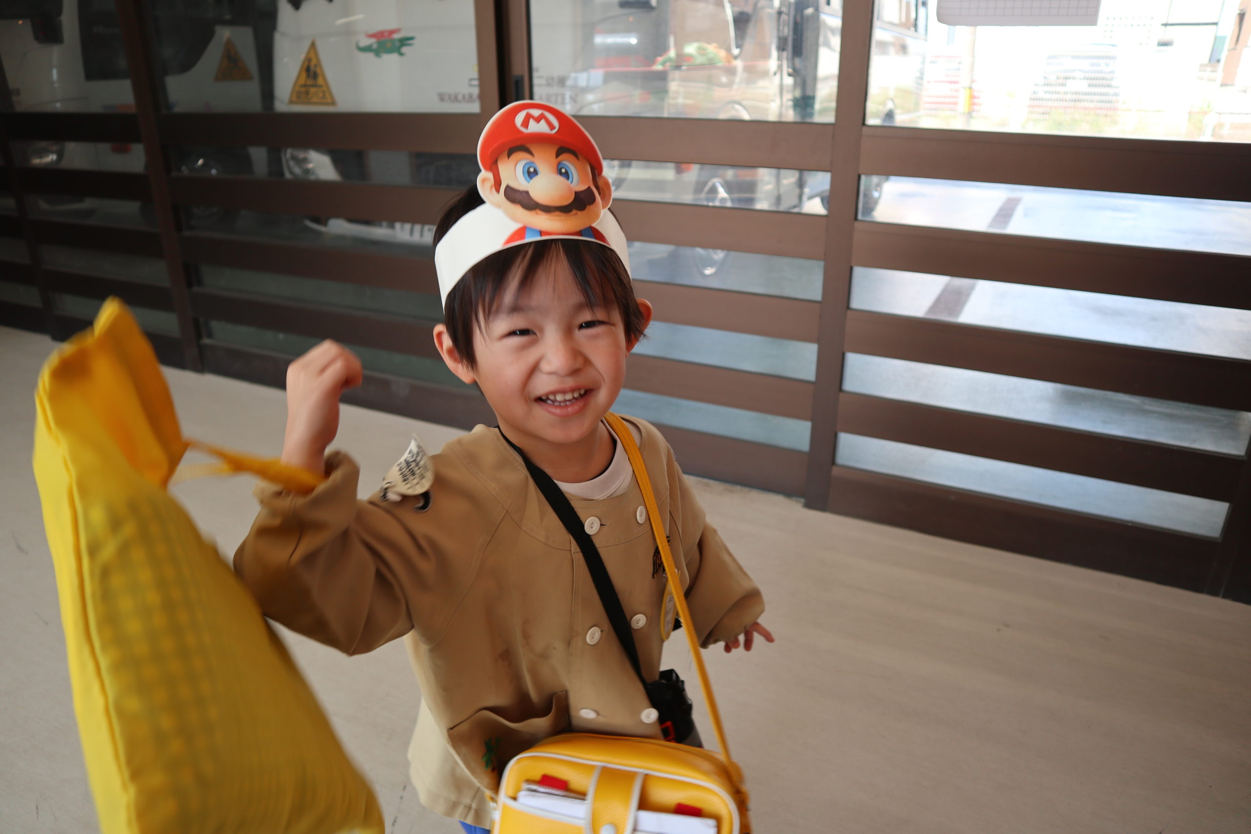 休み明けですが元気に登園してきました。頭にはぼくわたしがだいすきなキャラクターが光っています。
