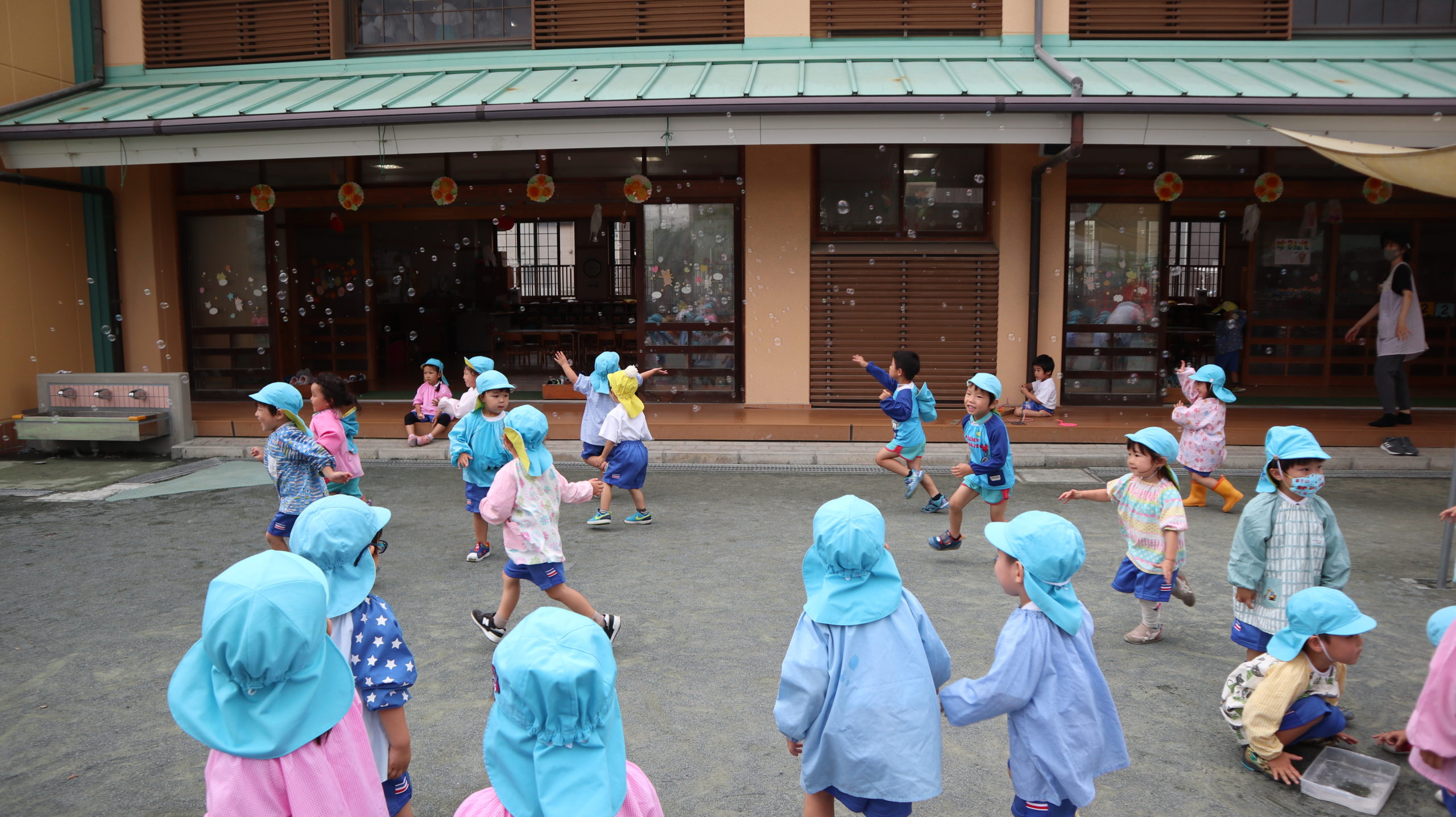 「しゃぼんだまのせかいになったよ!!」と ちい君がようこ先生にお話していたね。本当にそうだね。