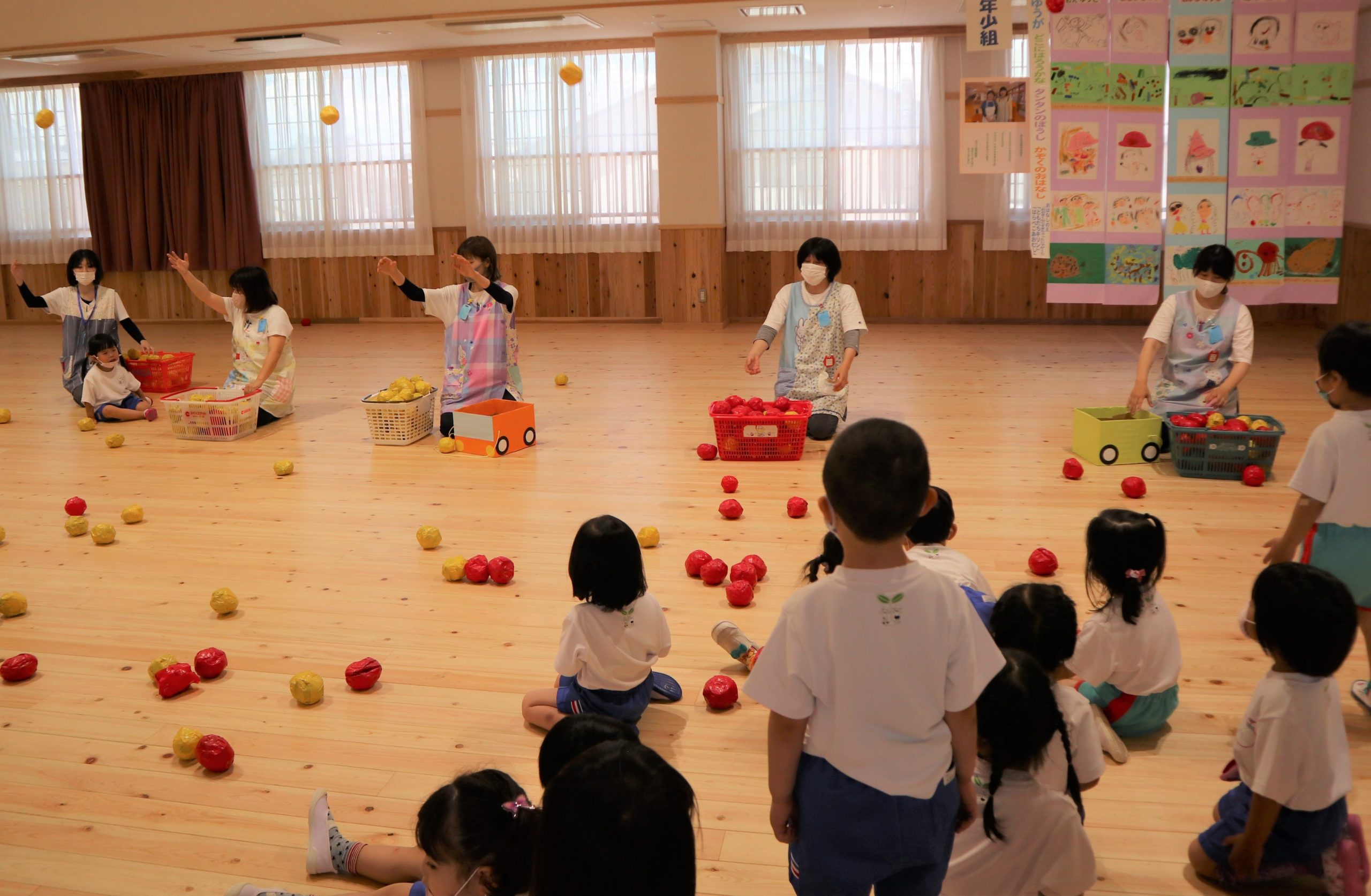 どれだけ入ったかみんなで一緒に数えてみようね。「1つ、2つ、3つ…」