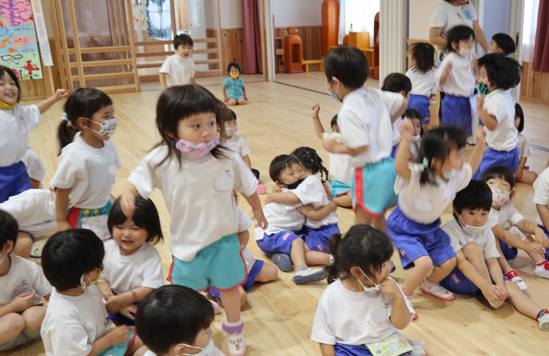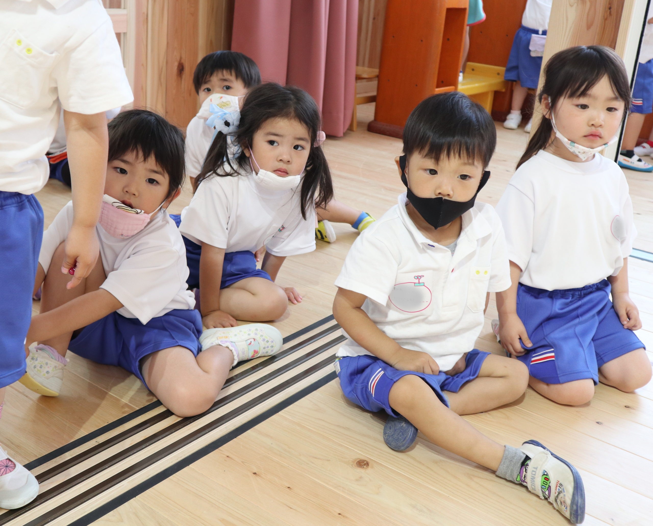では、早速始めましょう!「こすもす組さんがんばるよ!」「オー!」とてもはりきっていますね!