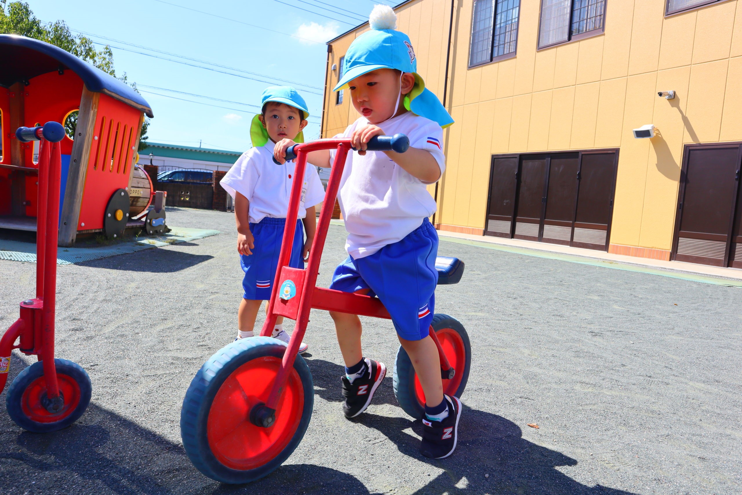 ちゅうりっぷさんの大人気の三輪車。「ついてきてね。」と二人で仲良くおでかけしたよ。