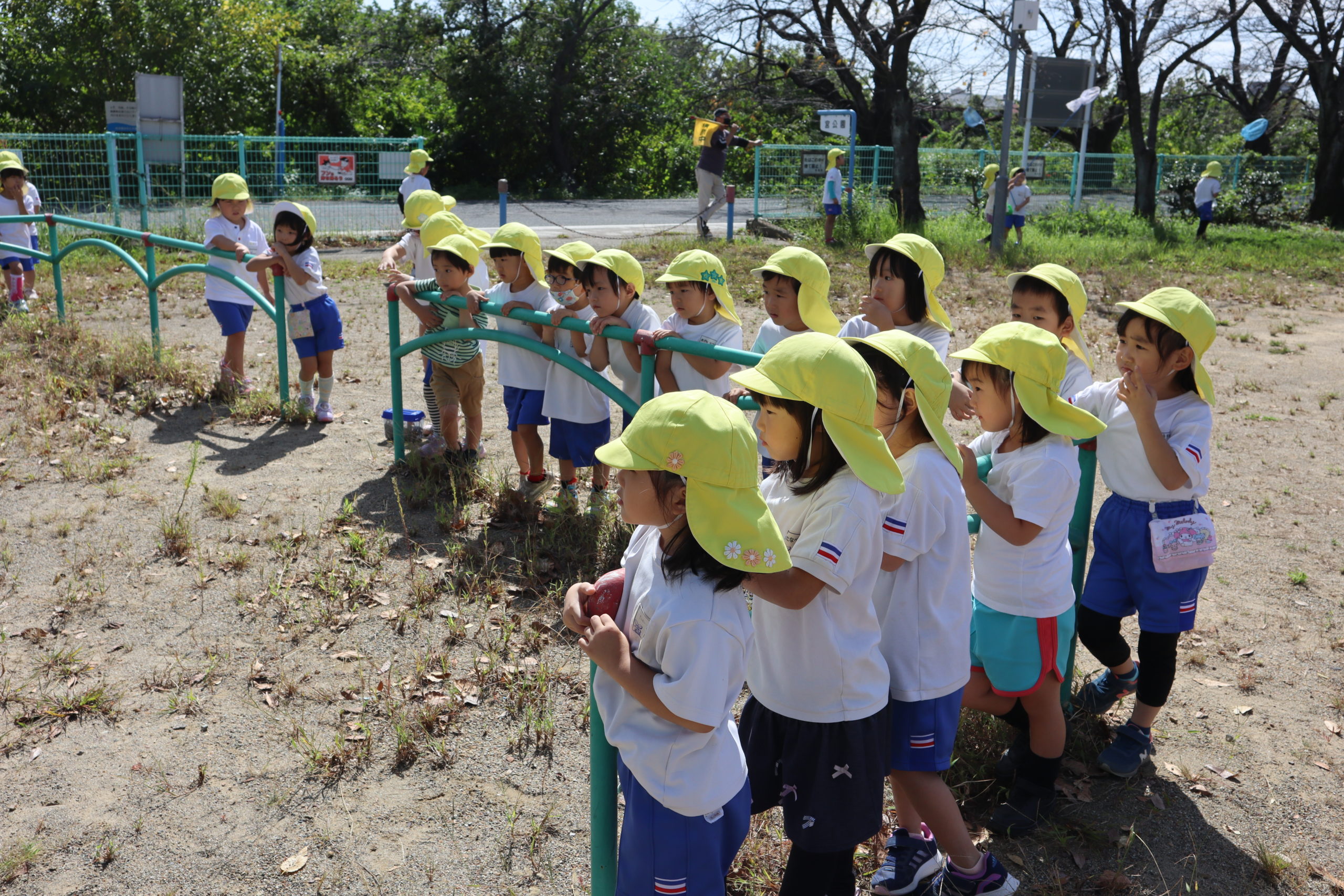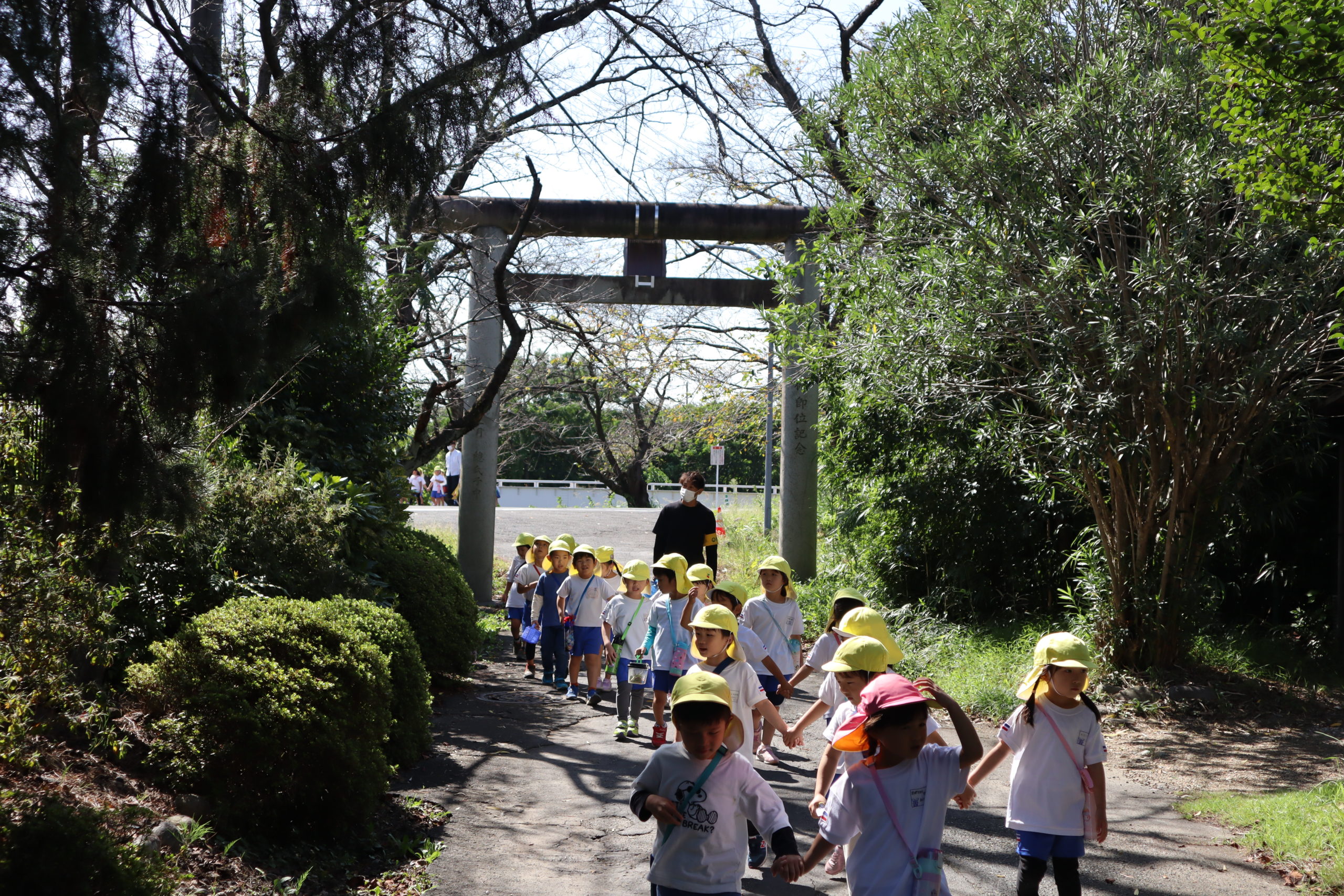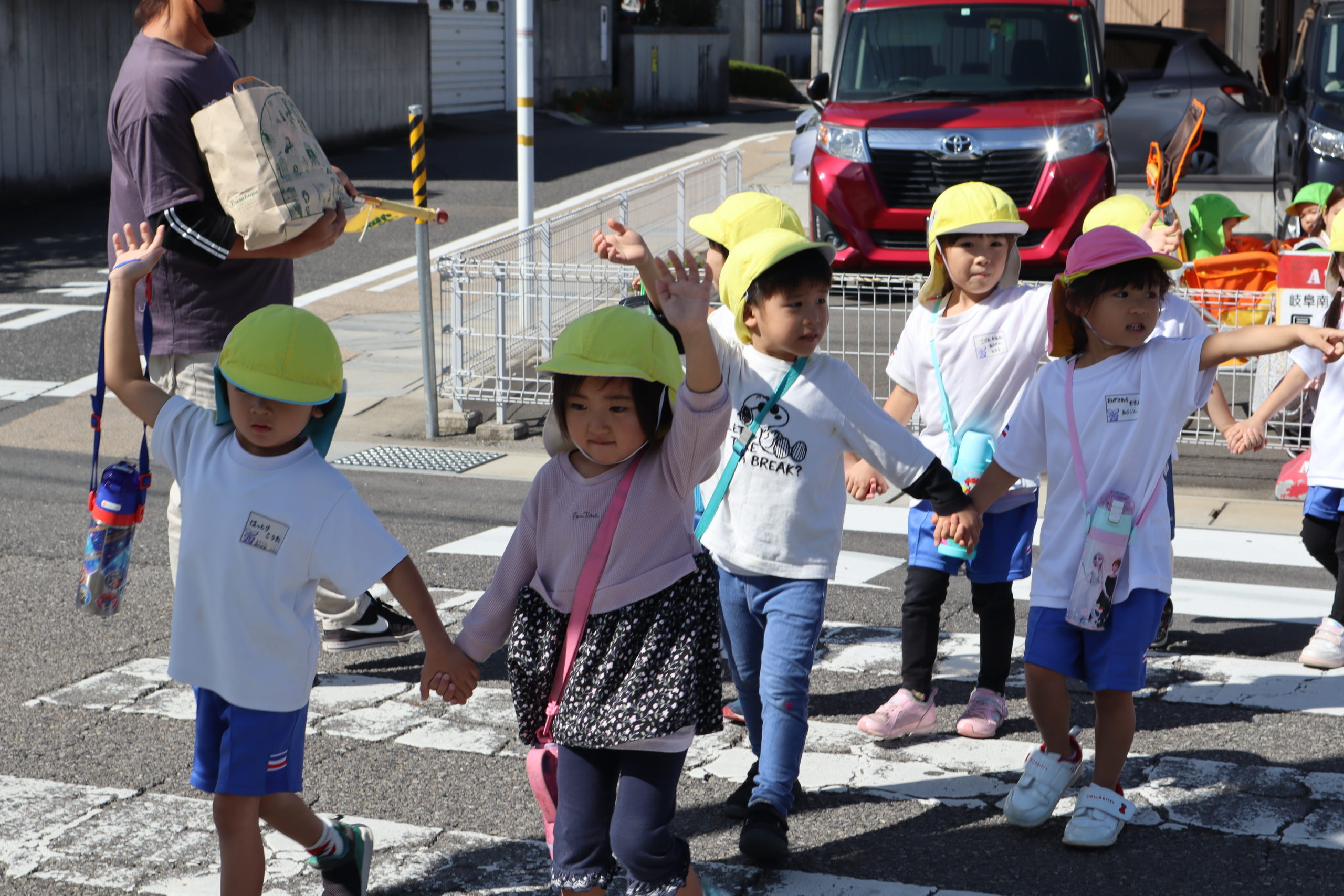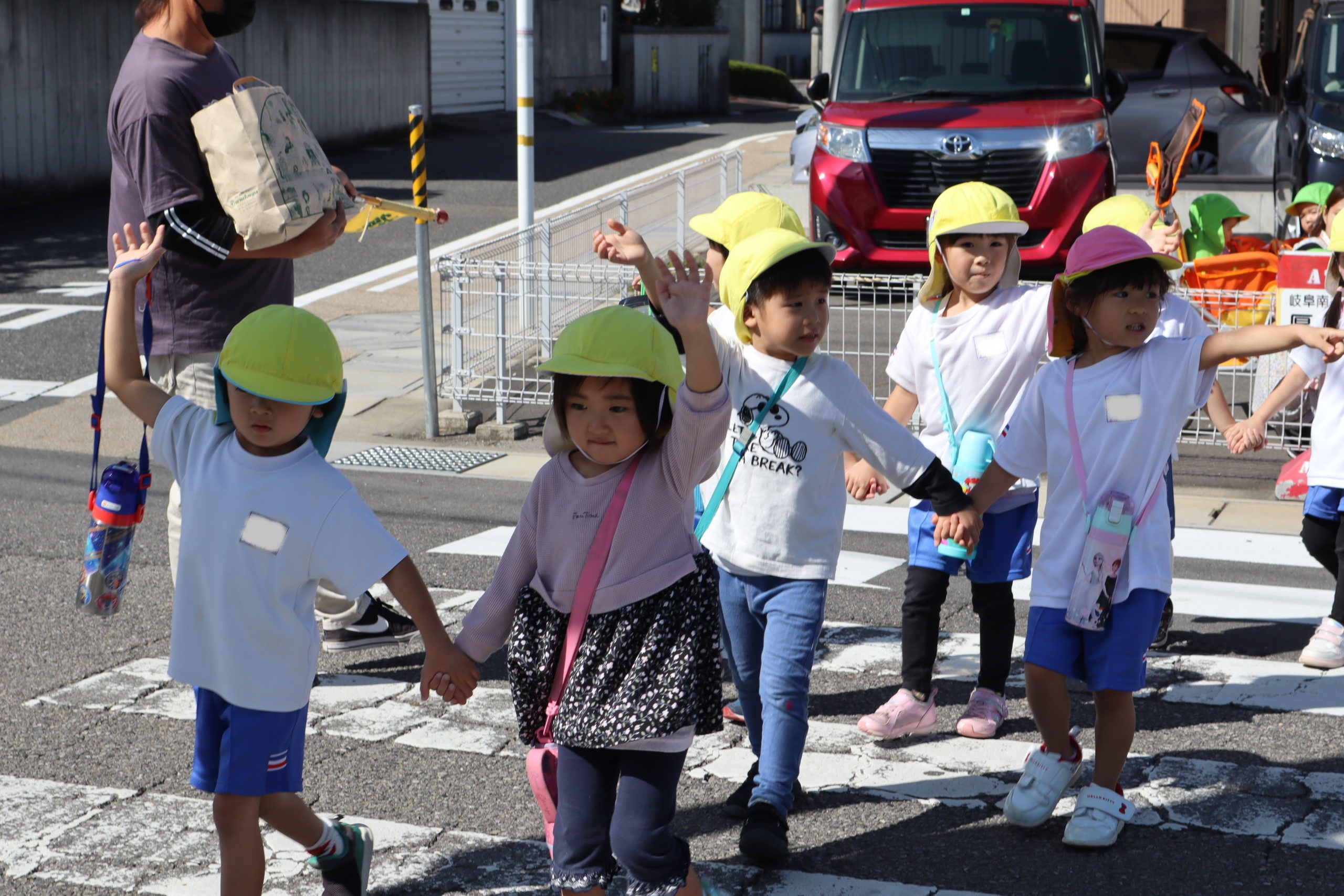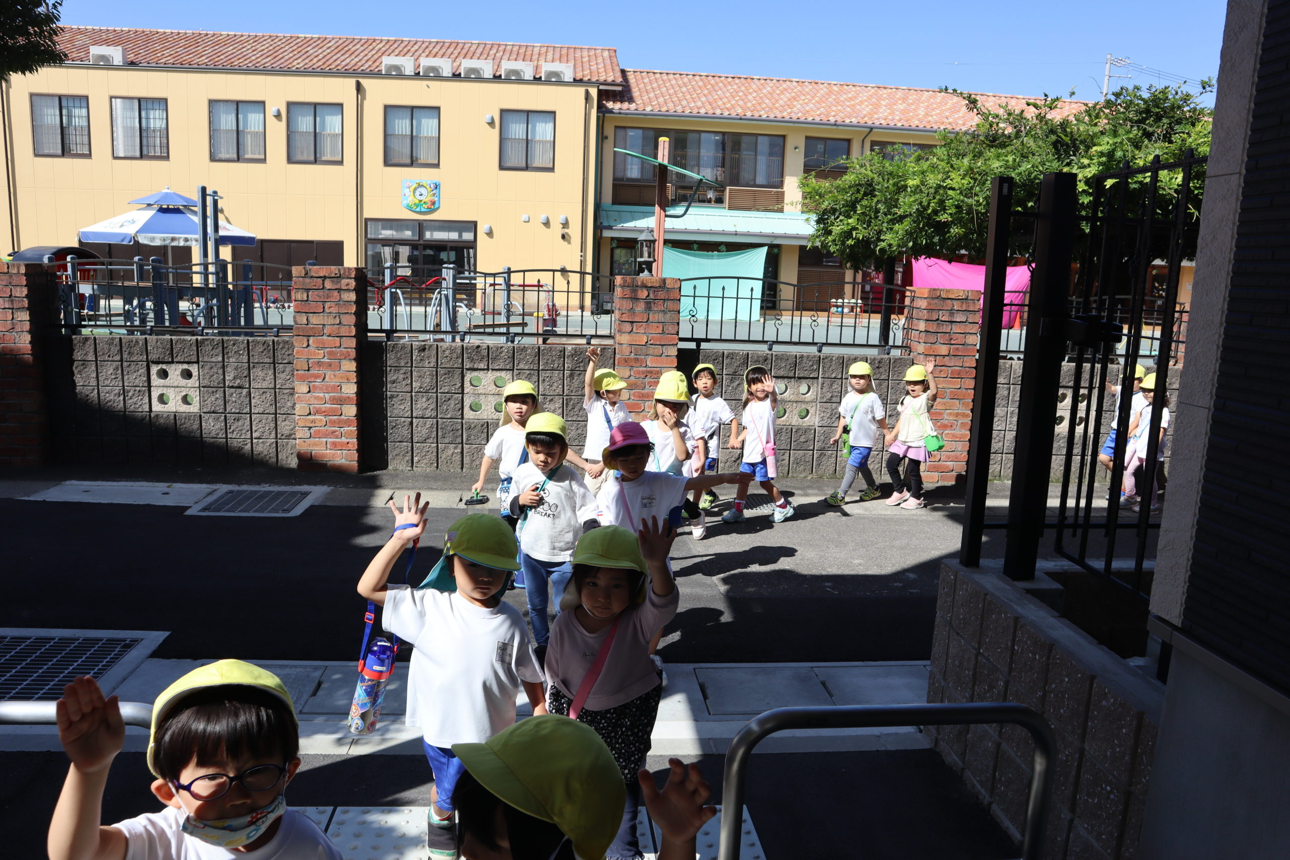 今日は待ちに待った年中さんのどこでもドアの日です。バスには乗らず幼稚園を出て歩いてどこにいくのかな?