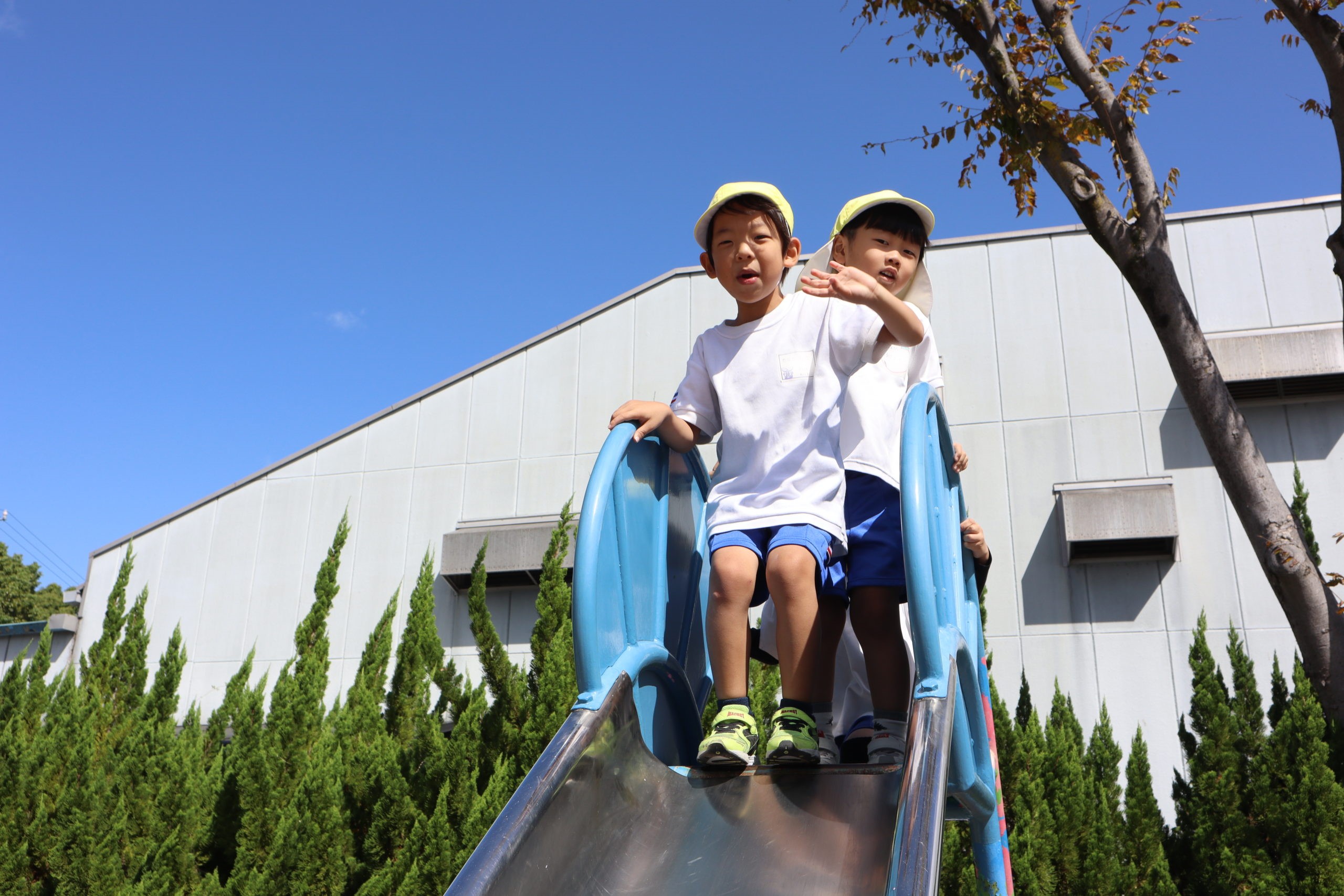 お出かけ日和でいい気持ちだね。「おーい!」「やっほ~!」