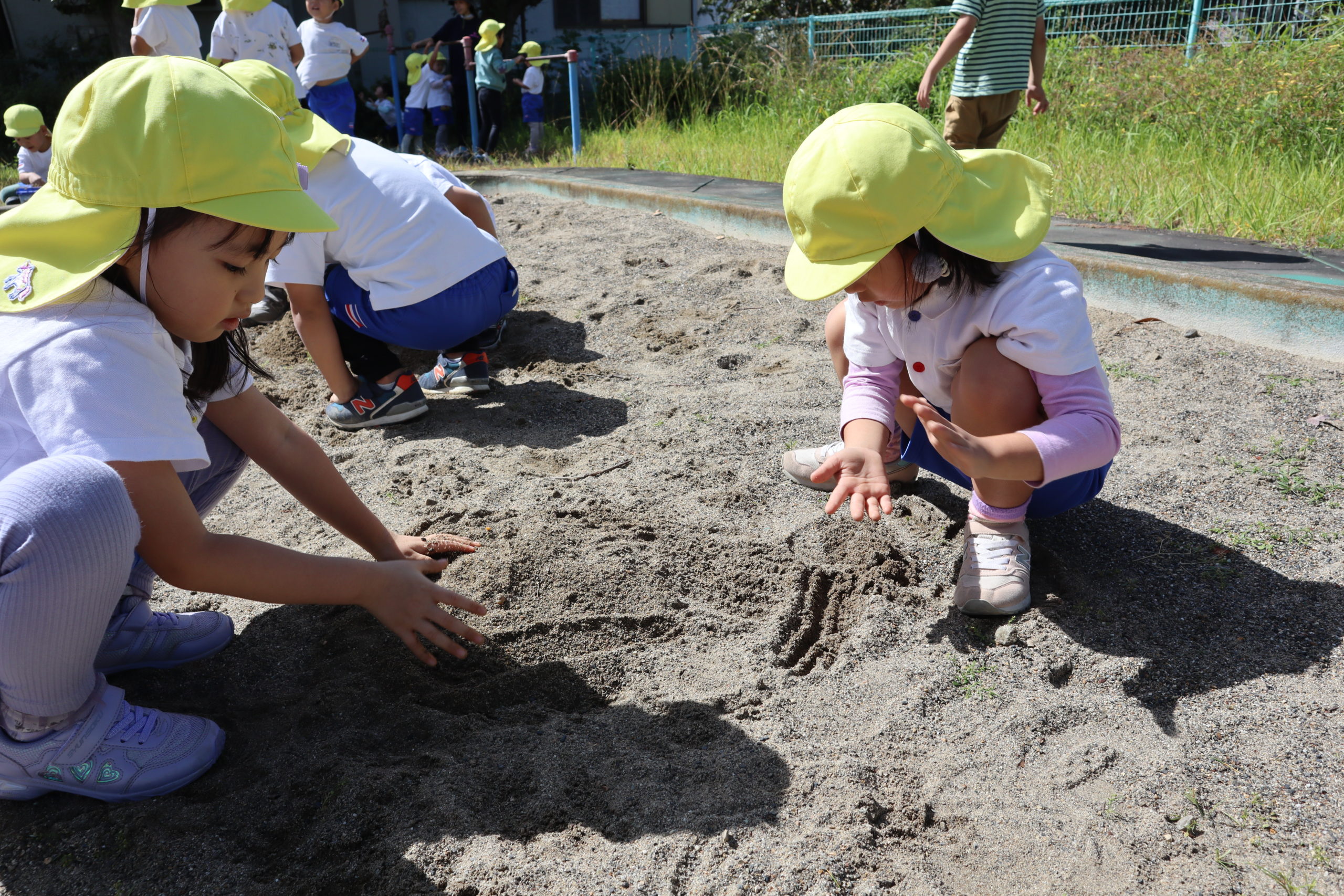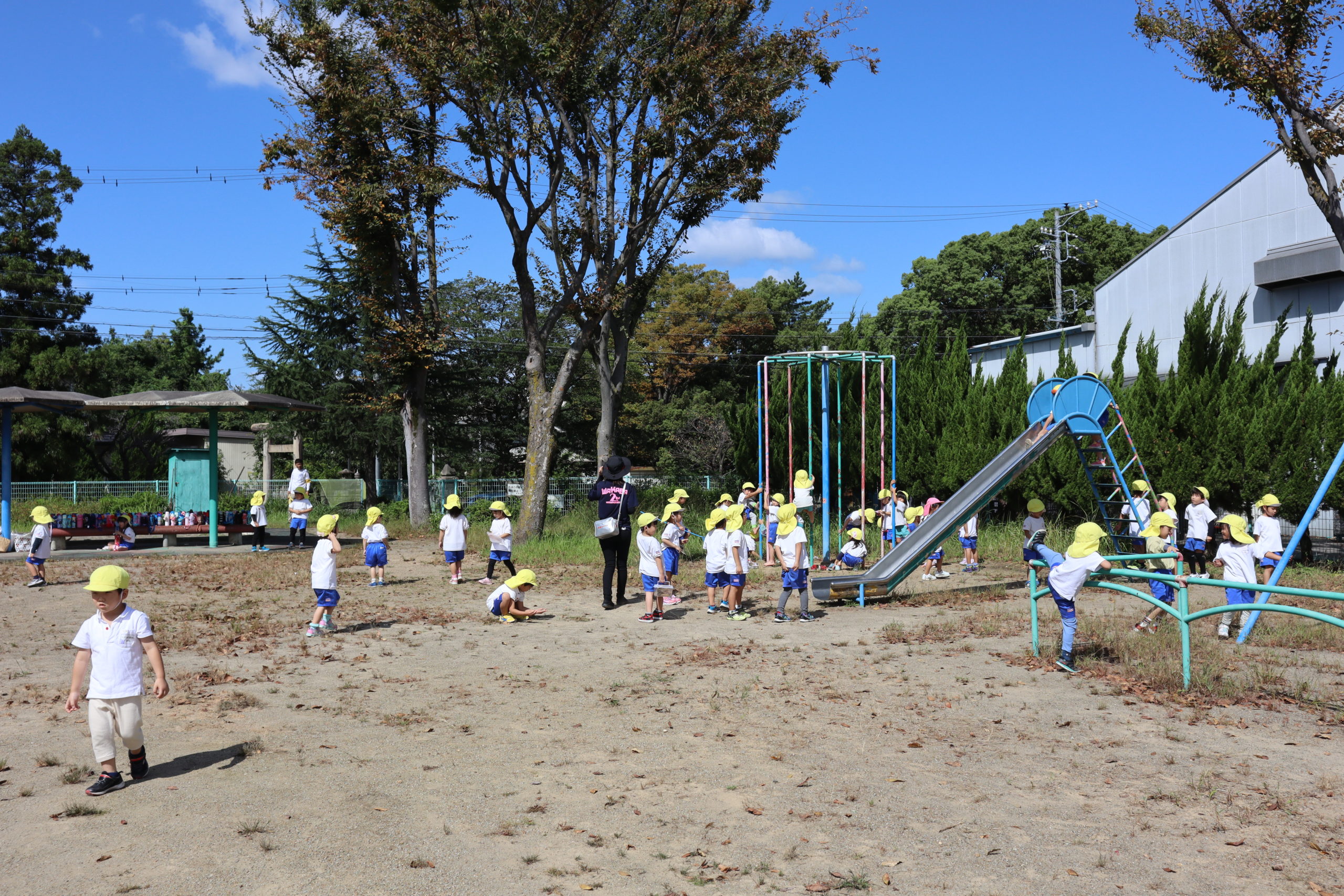 線路のトンネルくぐったり、川のせせらぎを聞きながら風を感じたり、歩いておでかけはドキドキわくわくがたくさんあったね。公園で虫みつけしたこと、秋見つけしたこと、登り棒やブランコなどたくさんあそべて楽しかったね。