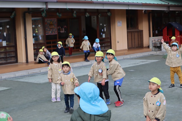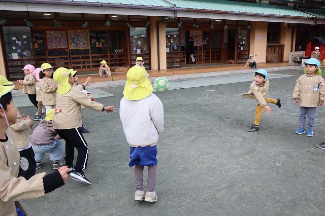 年長さんだけでなく、年中さんも混じってドッジボールをしていたよ。